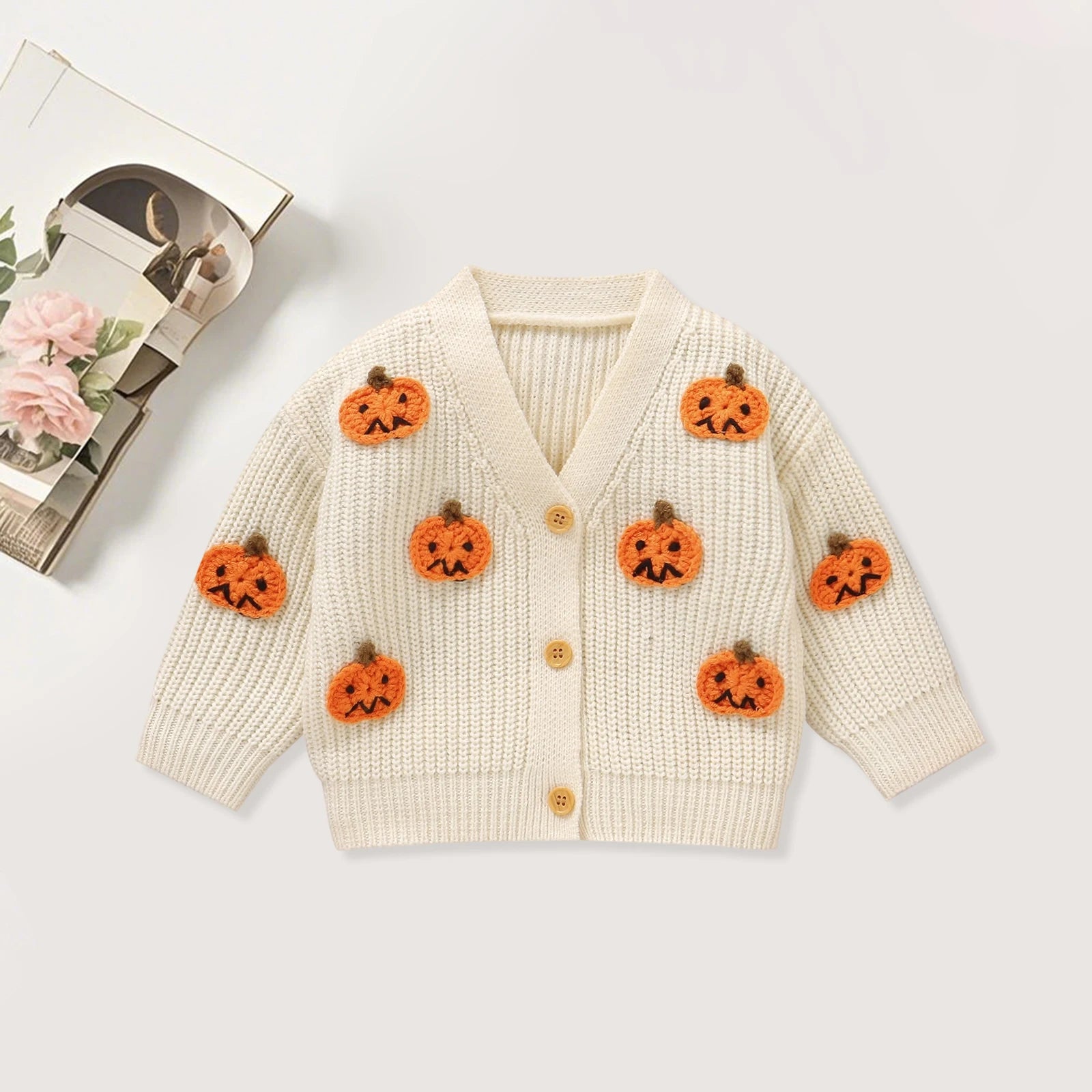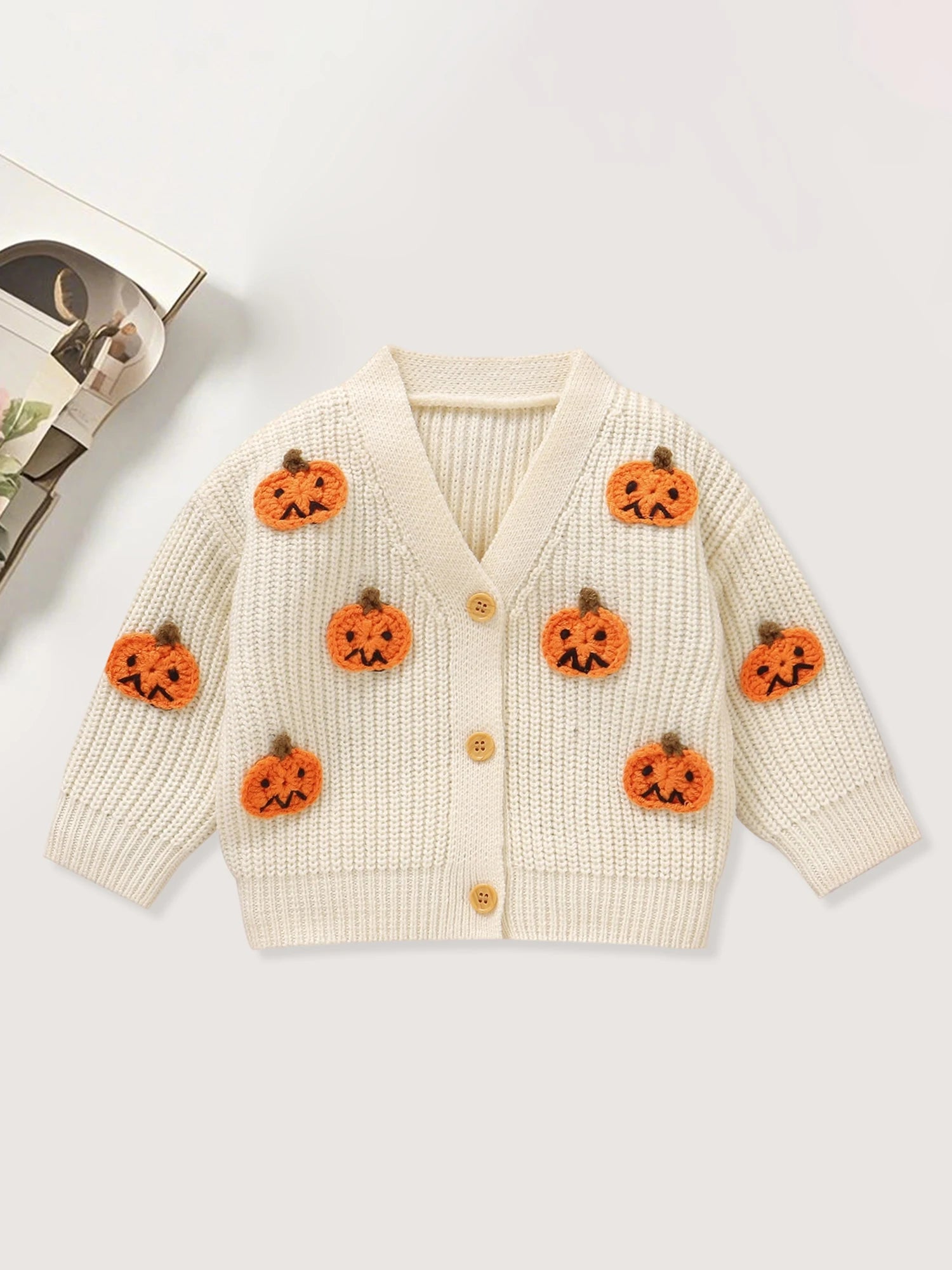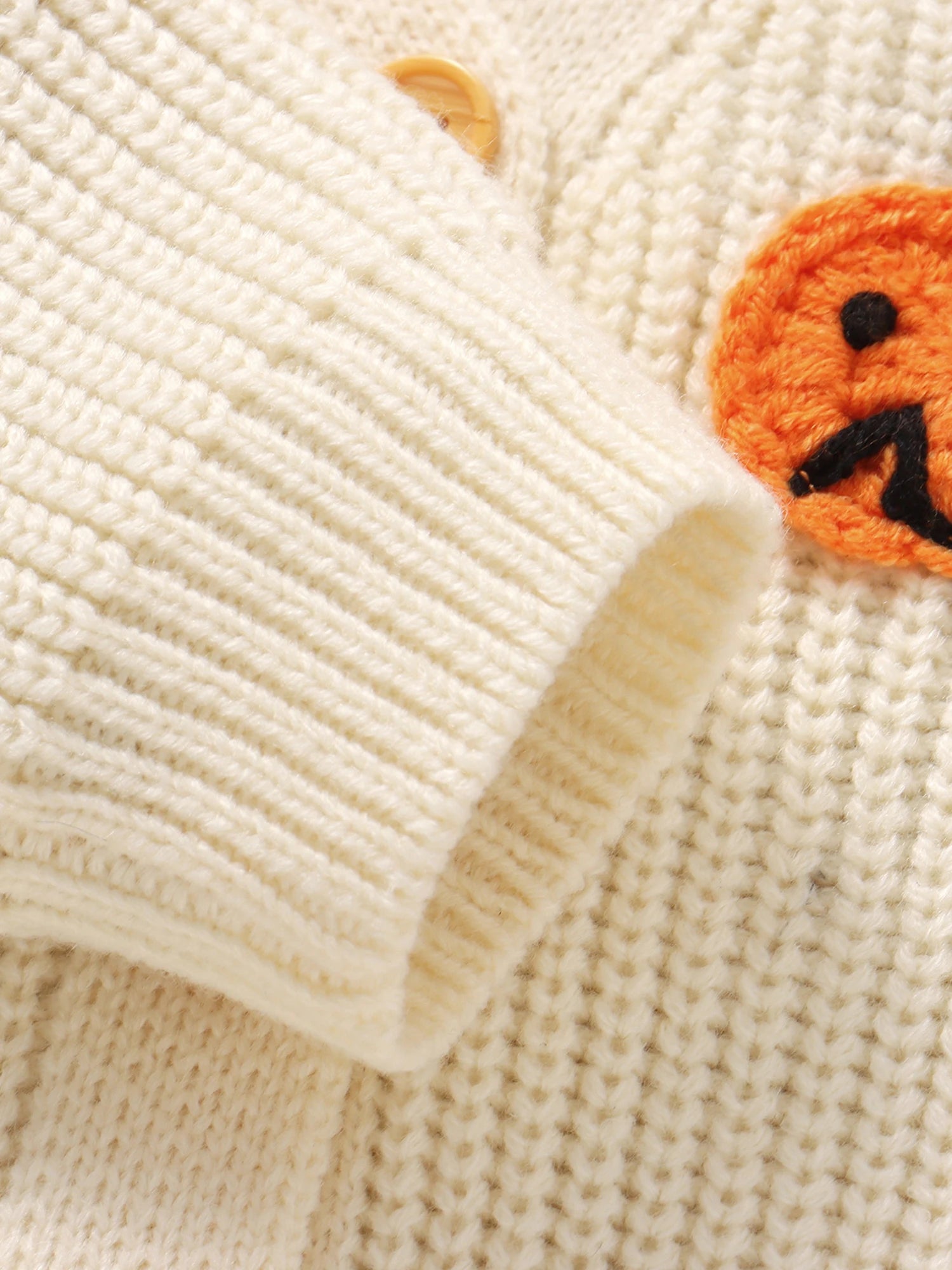 Baby Toddler Boys Girls Knit Cardigan Cute Halloween Pumpkin Embroidery Fall V Neck Long Sleeve Button Up Sweater Top