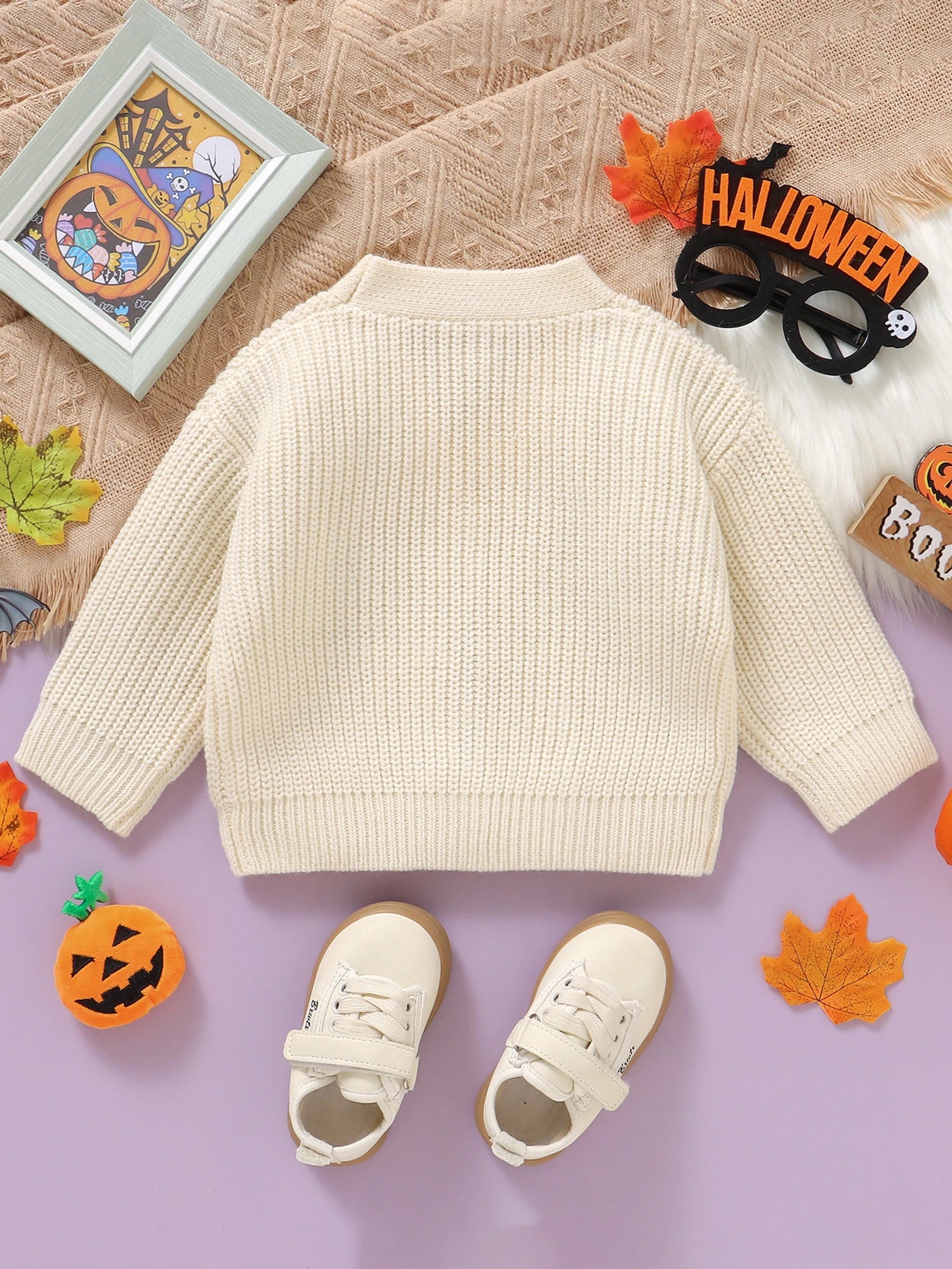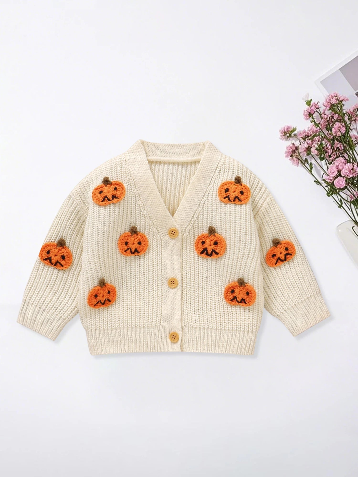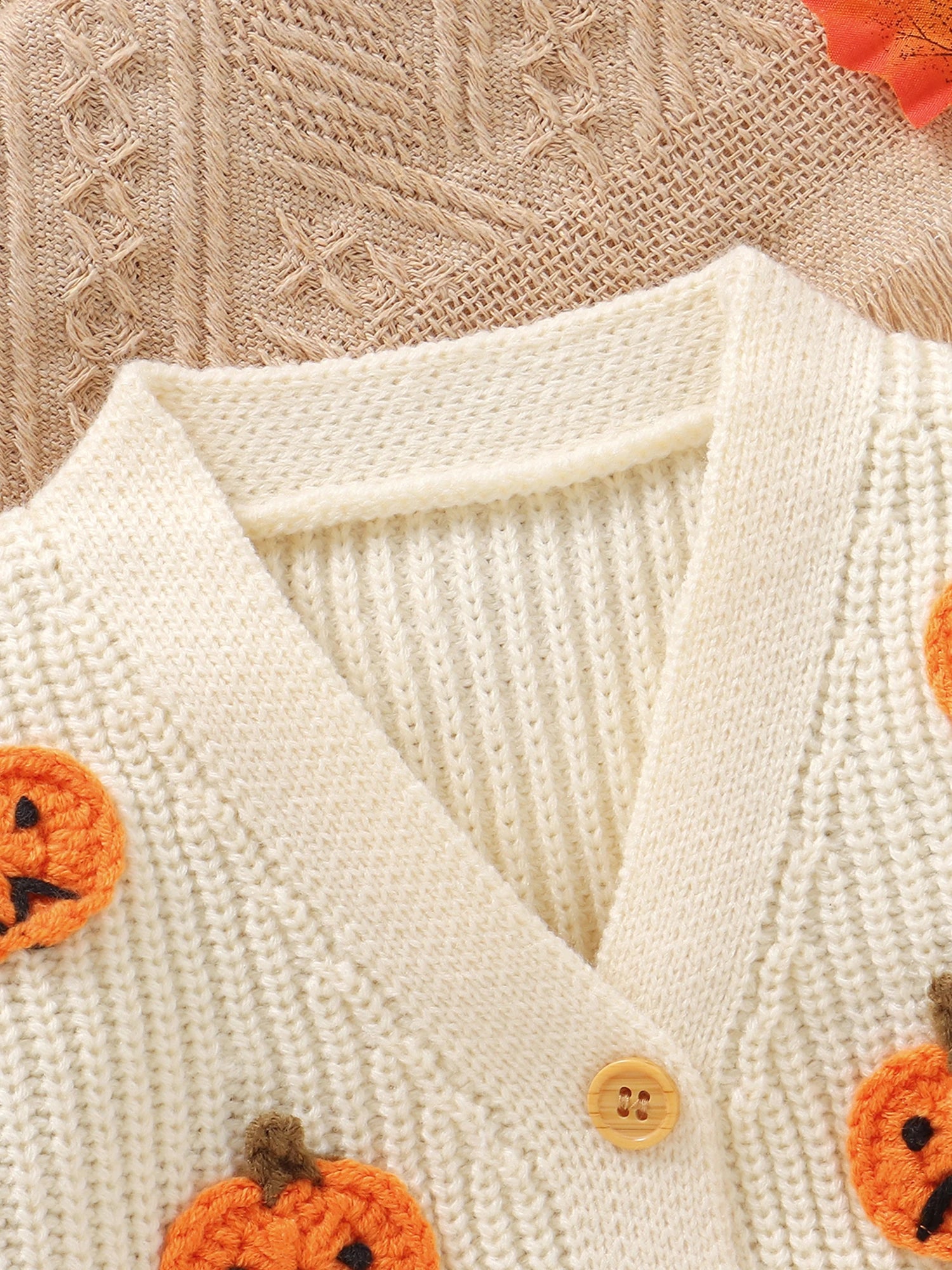 Baby Toddler Boys Girls Knit Cardigan Cute Halloween Pumpkin Embroidery Fall V Neck Long Sleeve Button Up Sweater Top