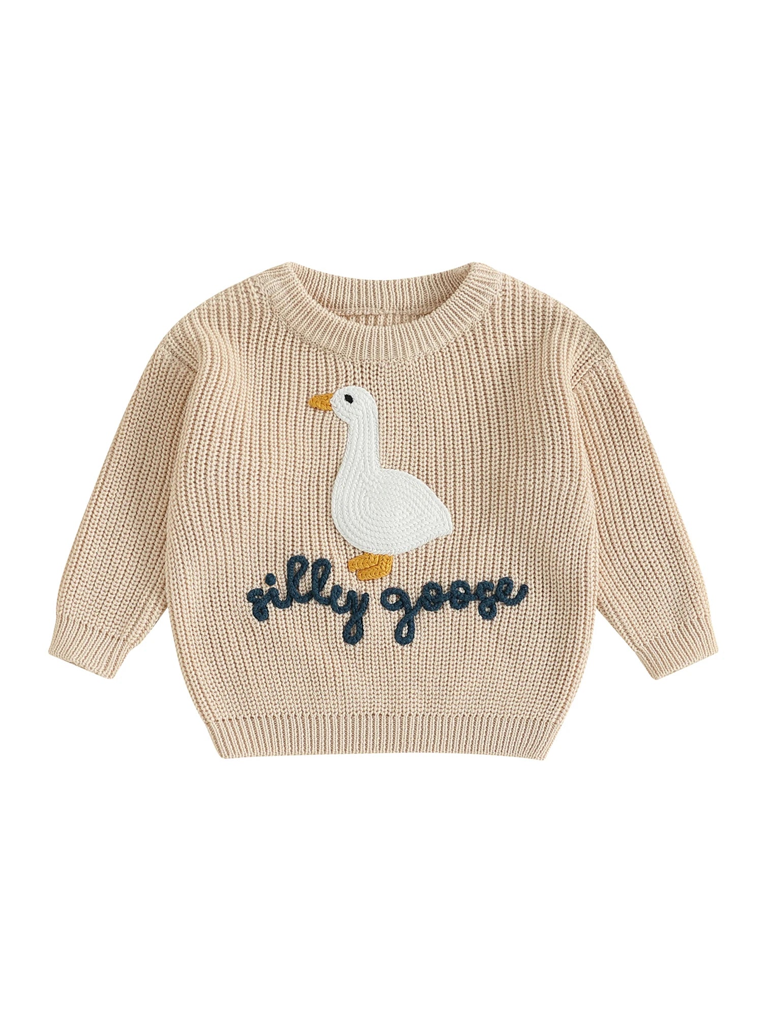 Baby Toddler Boys Girls Silly Goose Sweater Animal Letter Embroidered Crewneck Long Sleeve Pullover Knit Top
