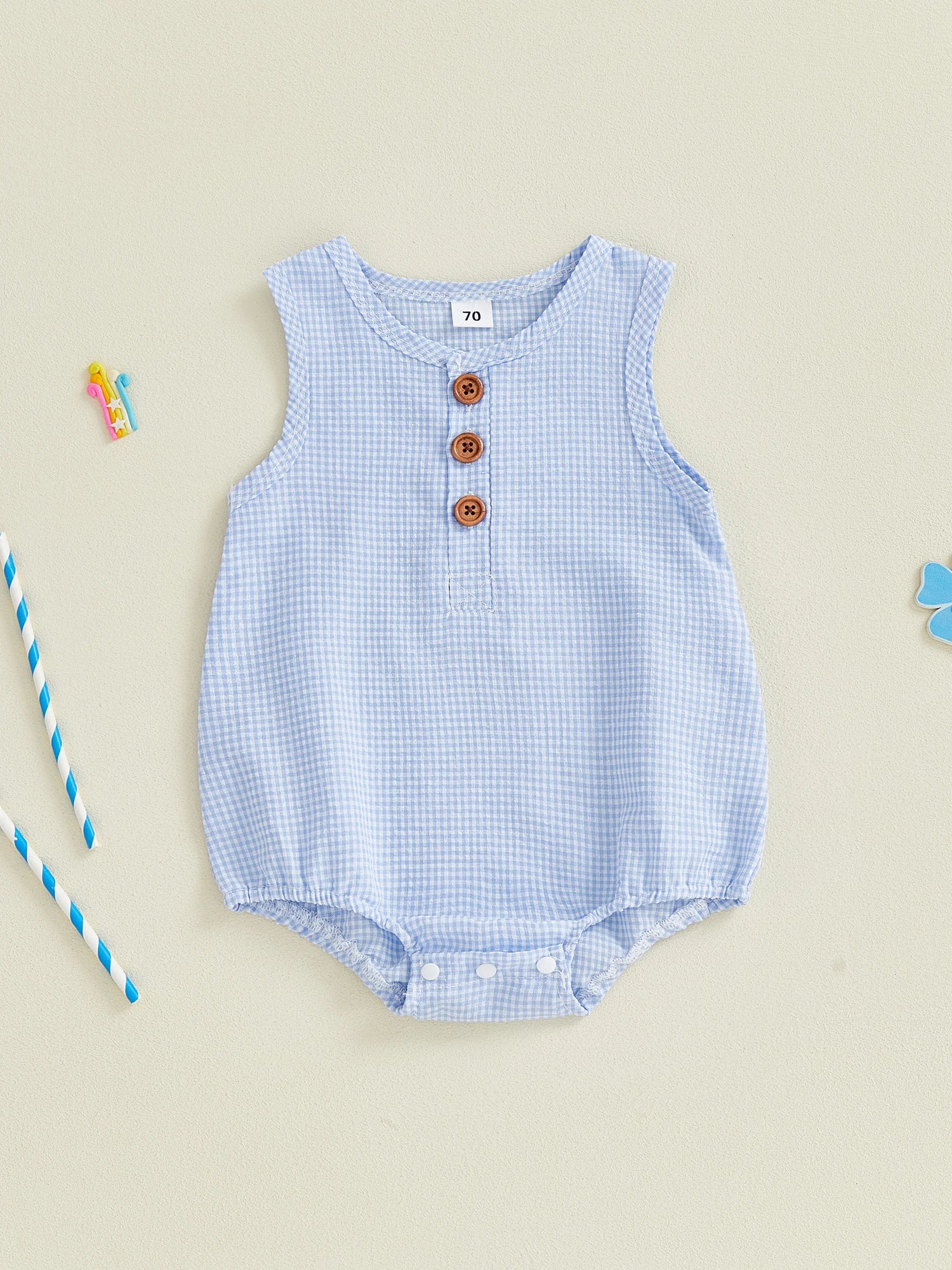 Baby Toddler Boys Girls Summer Romper Fashionable Tank Crew Neck Sleeveless Buttons Down Jumpsuit