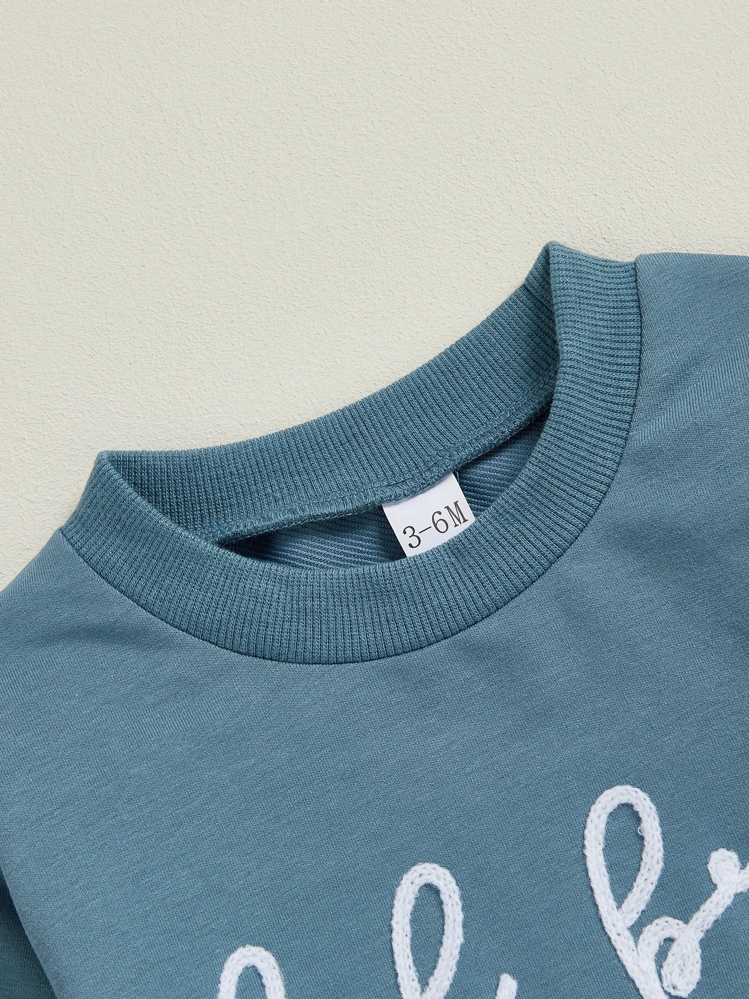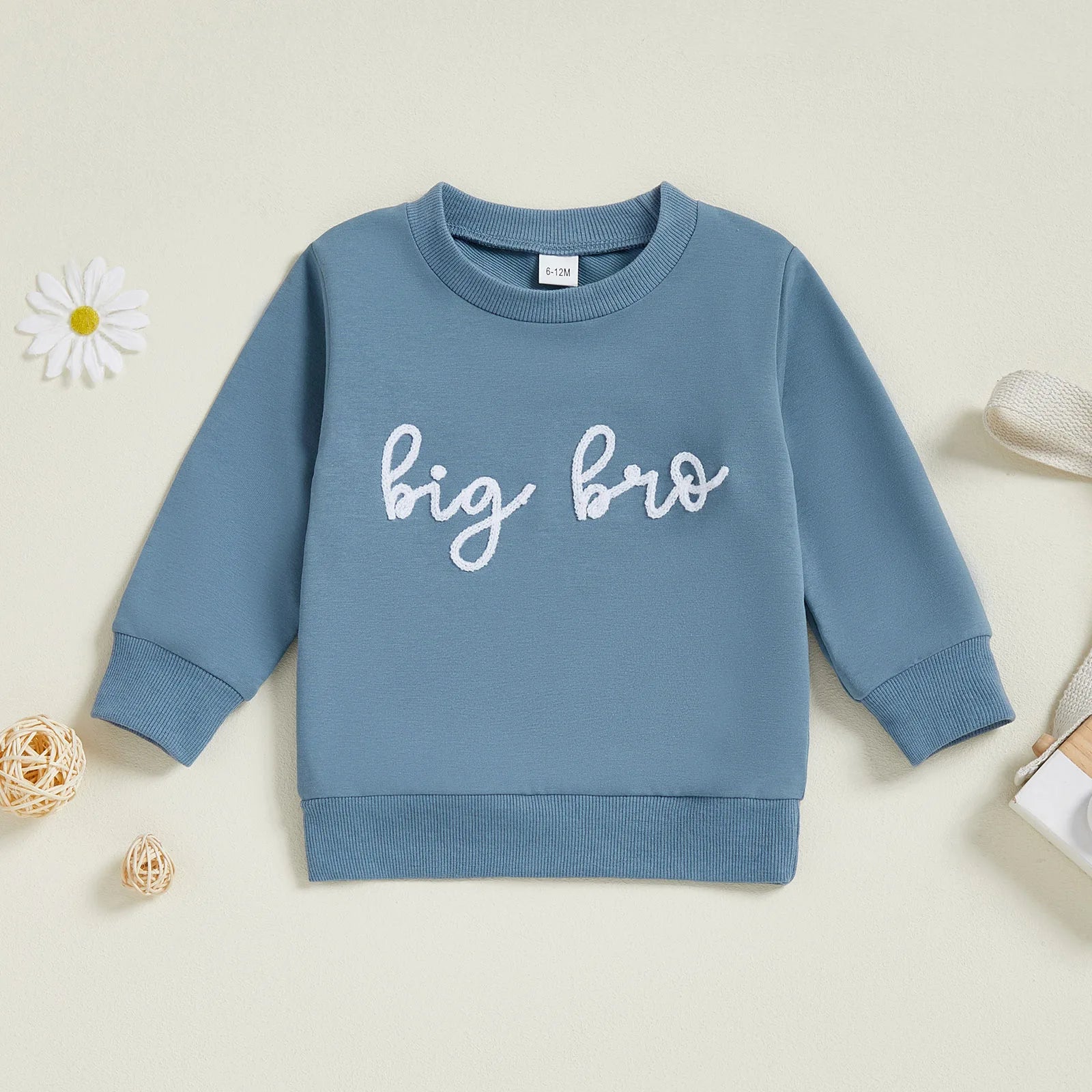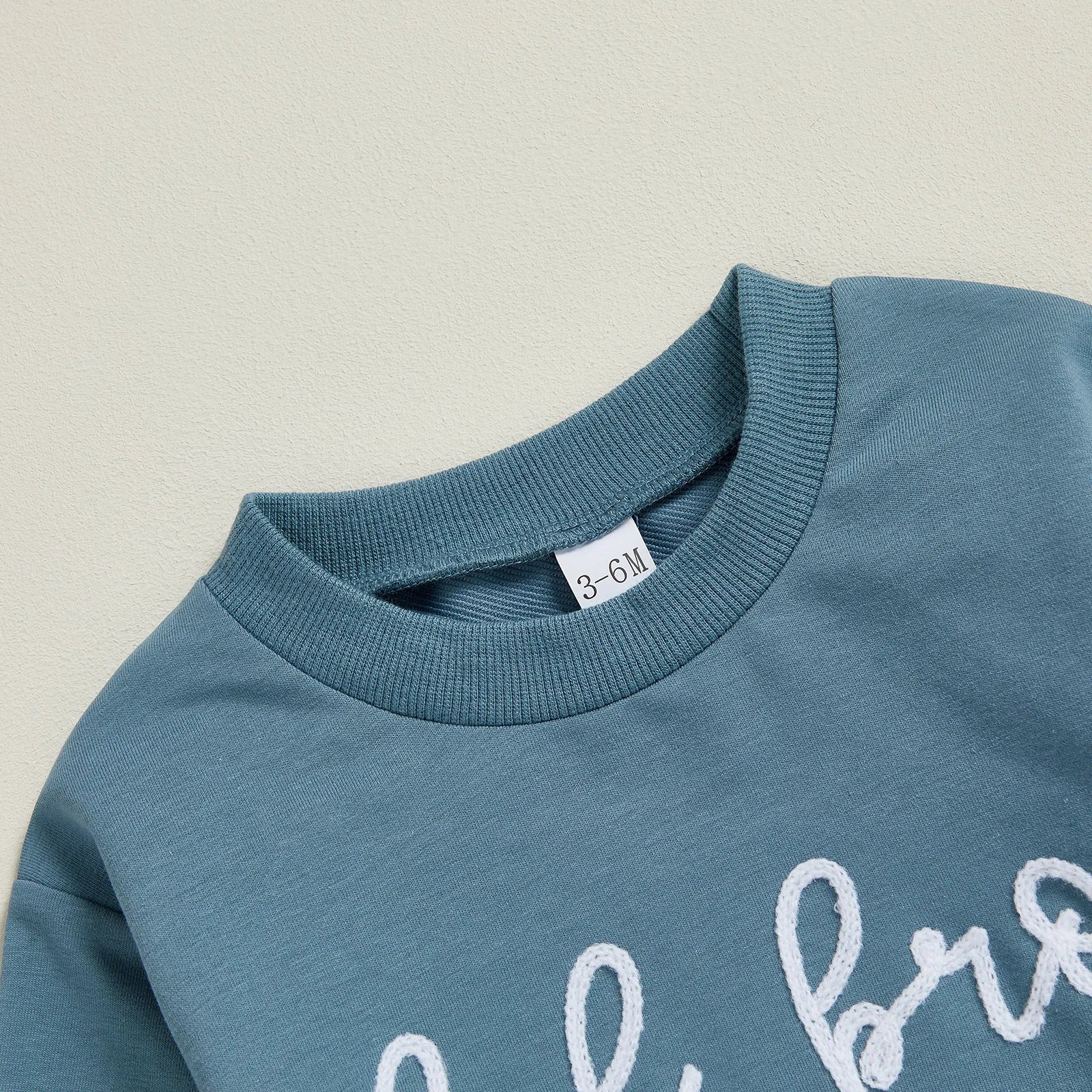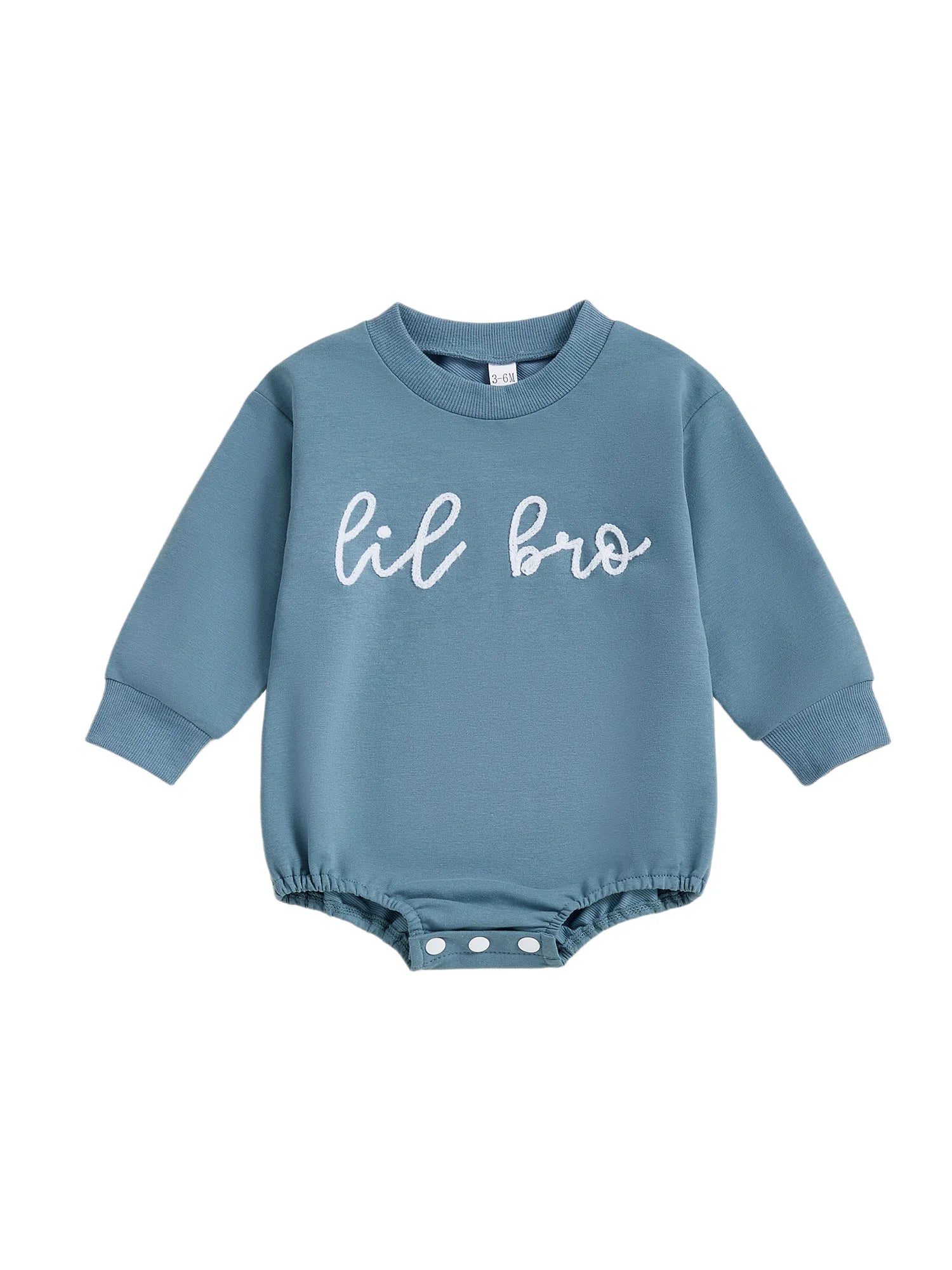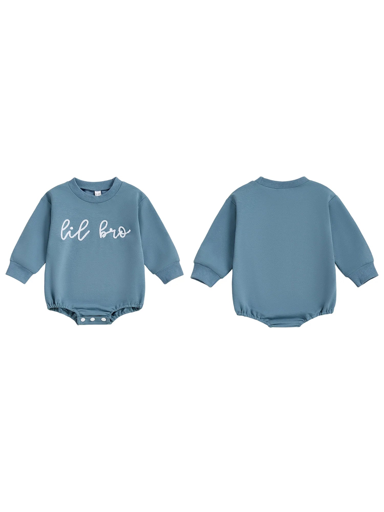 Baby Toddler Boys Lil/Bib Bro Autumn Jumpsuit Long Sleeve Round Neck Letter Embroidery Romper or Top Brothers Matching Outfits