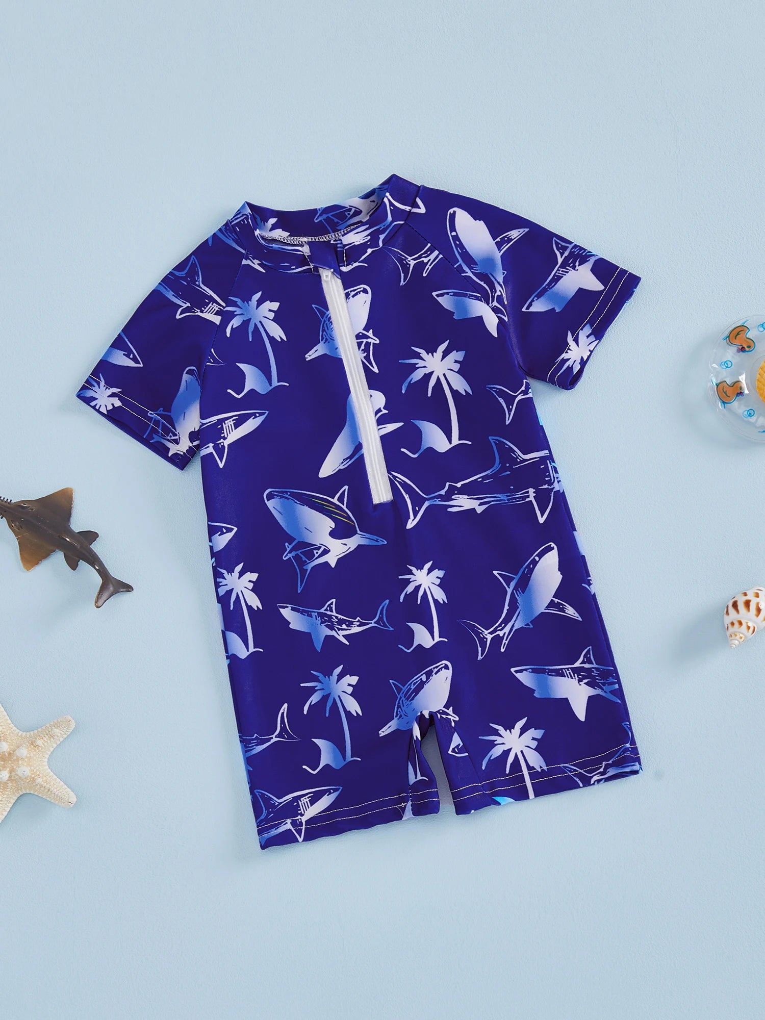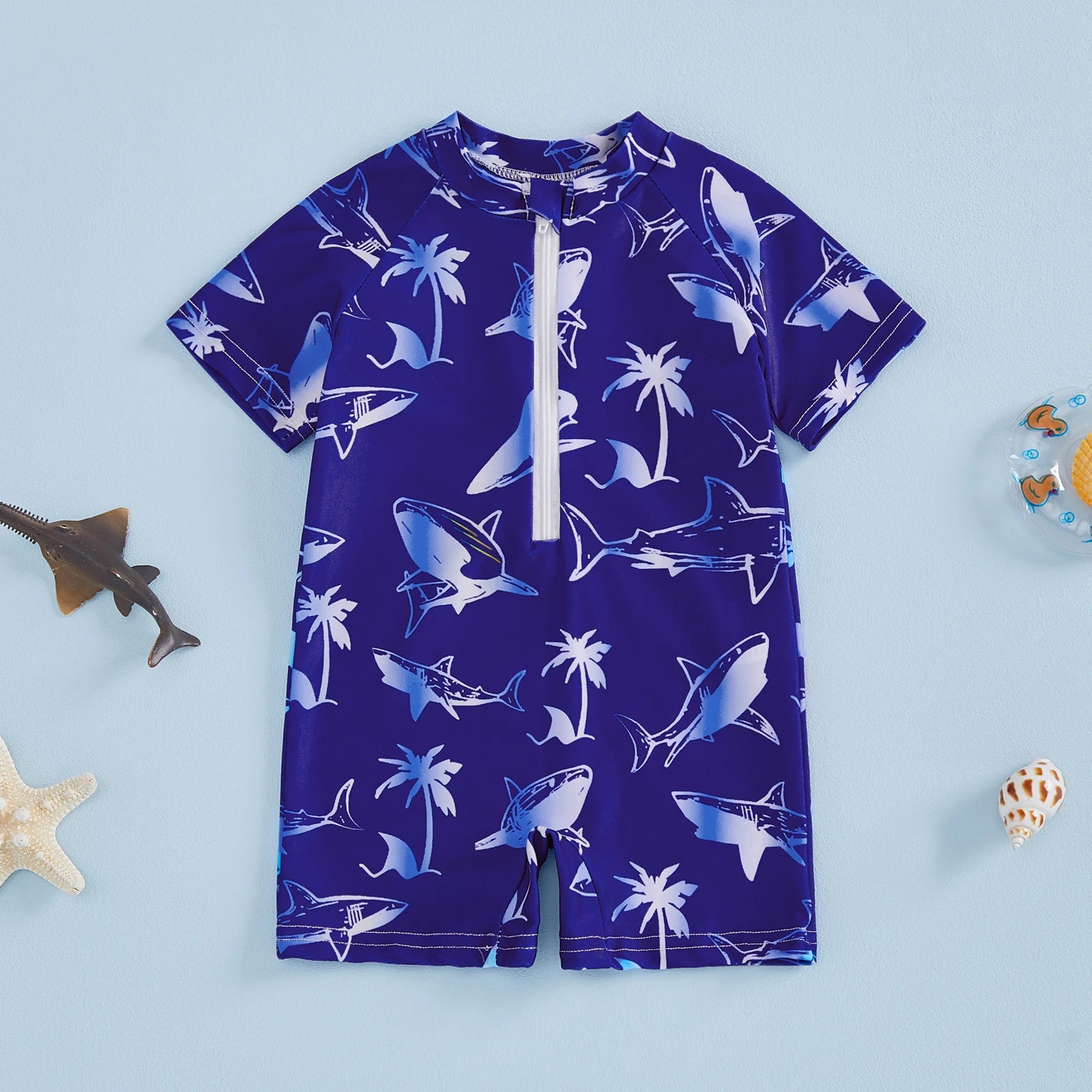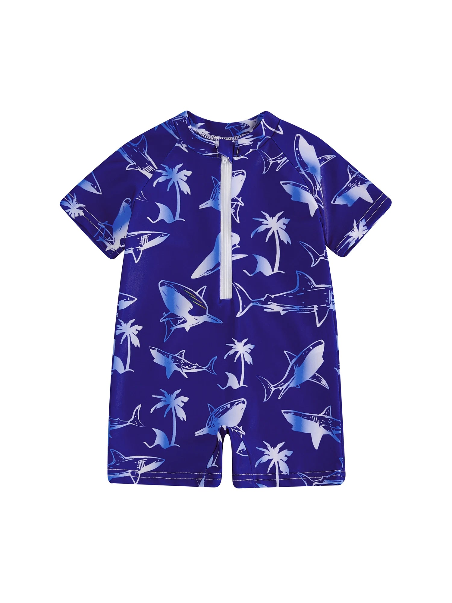 Baby Toddler Boys Rash Guard Swimsuits Cute Shark Animal Printed Short Sleeve Swimwear Romper
