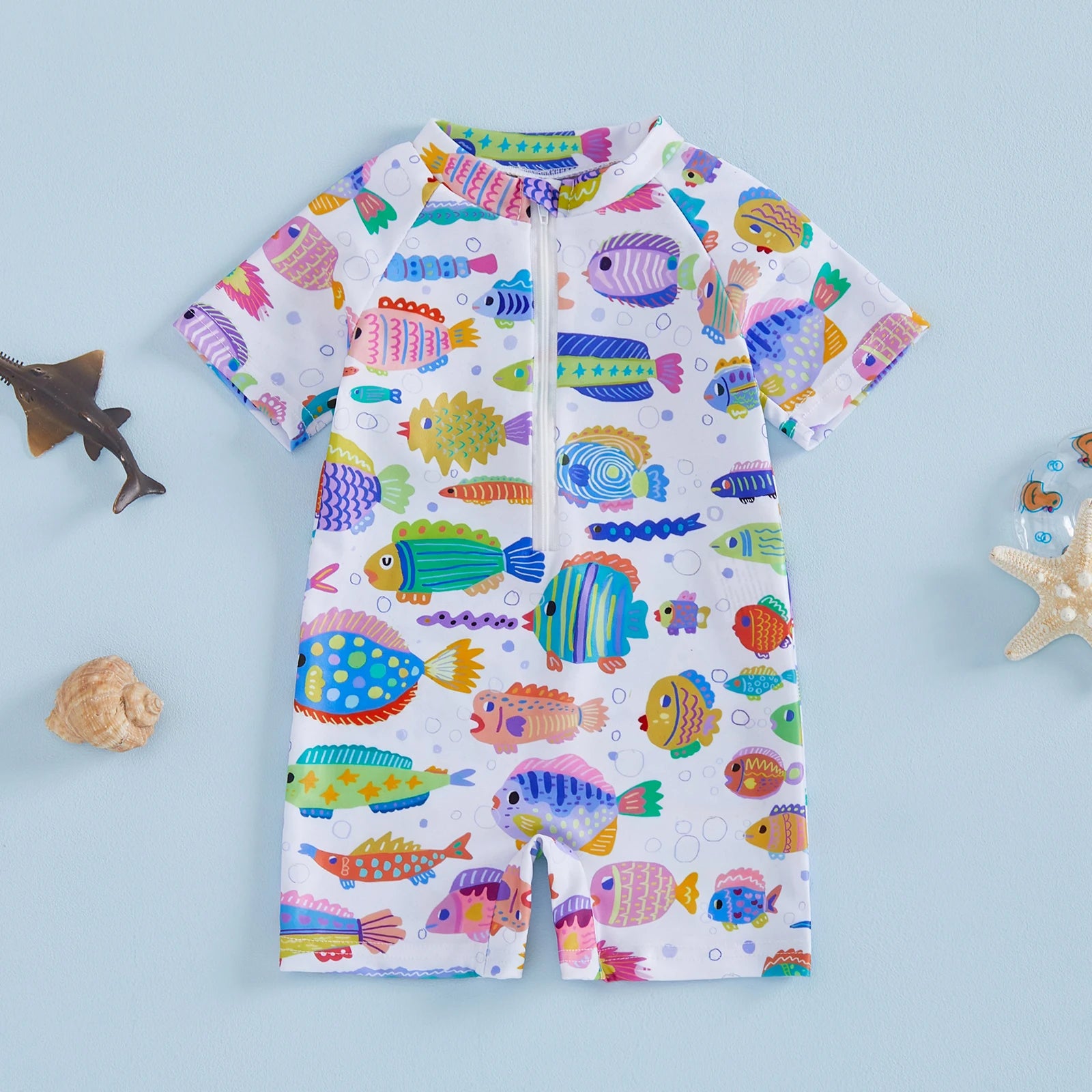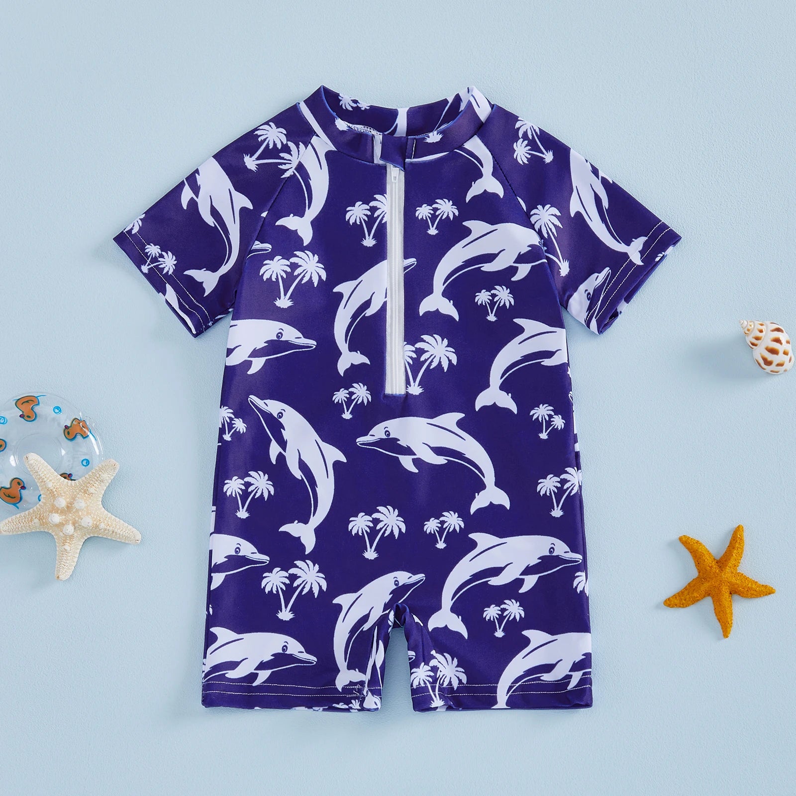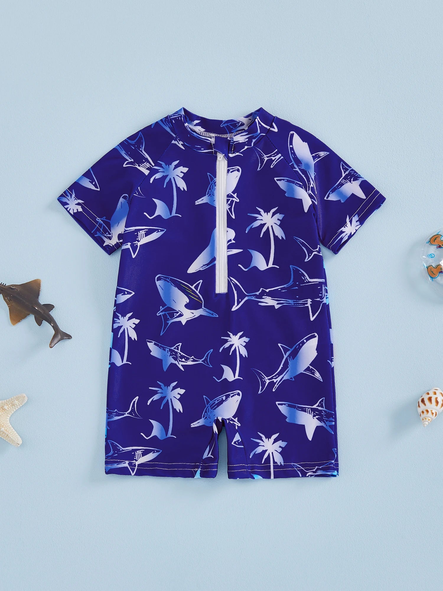 Baby Toddler Boys Rash Guard Swimsuits Cute Shark Animal Printed Short Sleeve Swimwear Romper