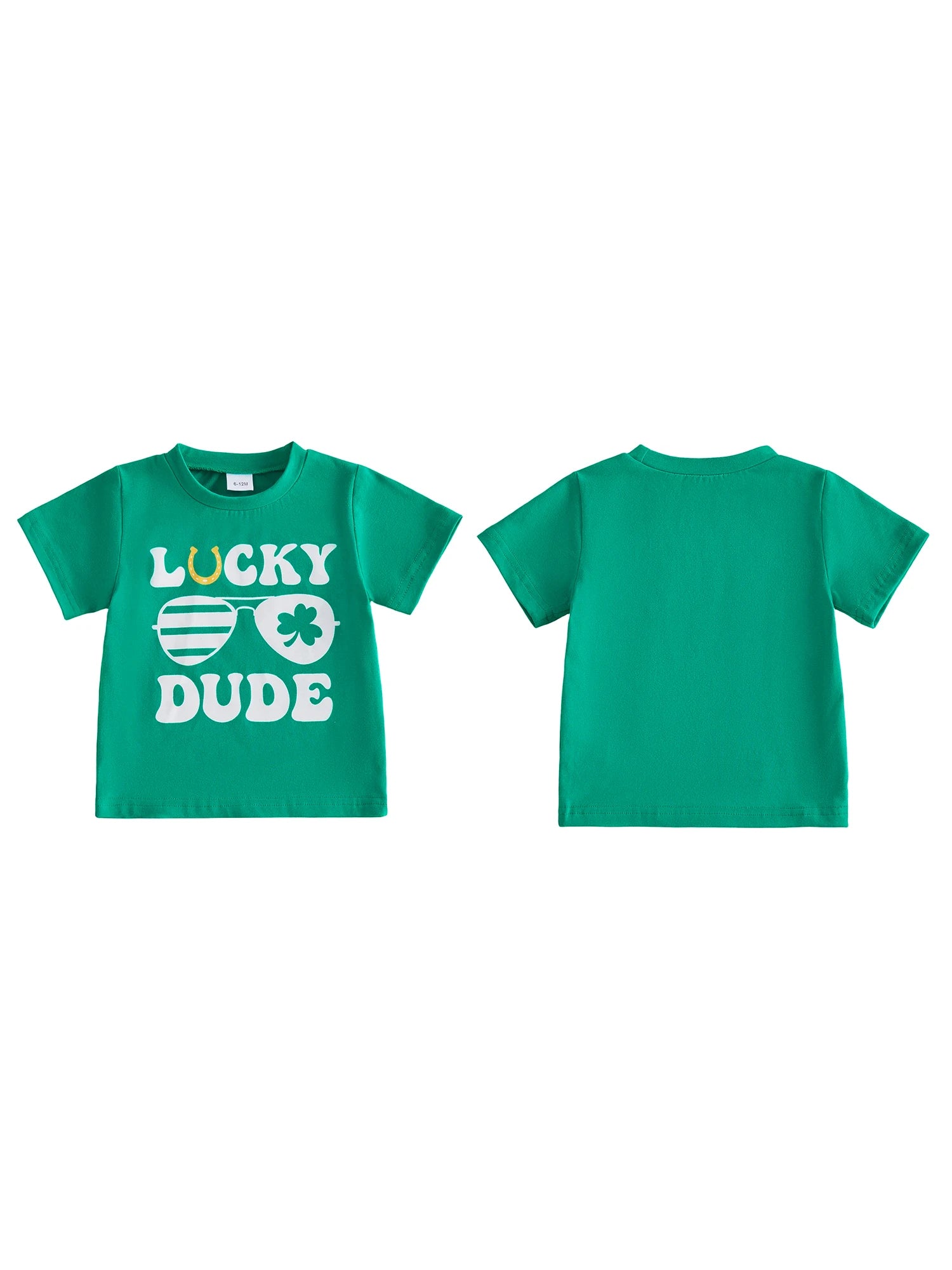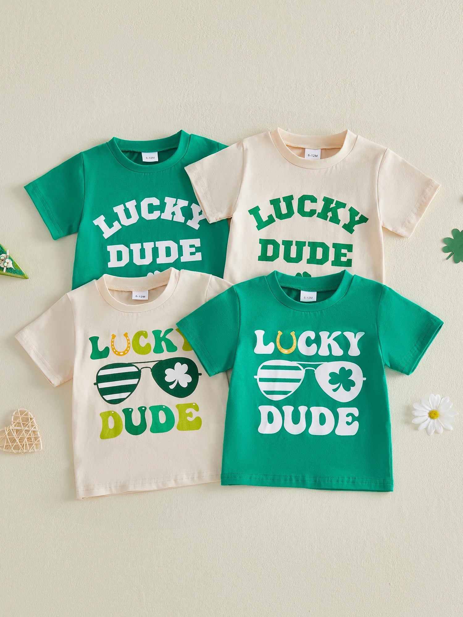 Baby Toddler Boys Summer T-Shirt Letter Shamrock Print Lucky Dude Short Sleeve Round Neck St. Patrick's Day Top