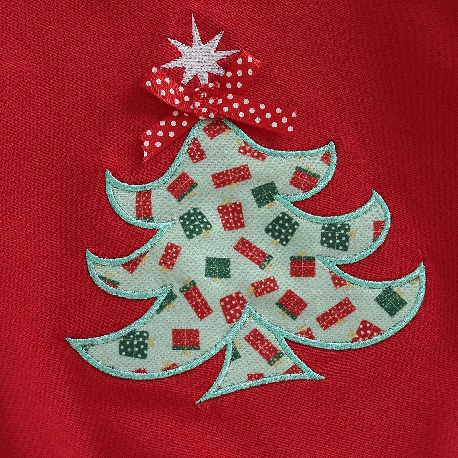 Baby Toddler Girl 2Pcs Christmas Outfit Tree Embroidery Long Sleeve Round Neck Pullover Top Stripe Flare Pants Set