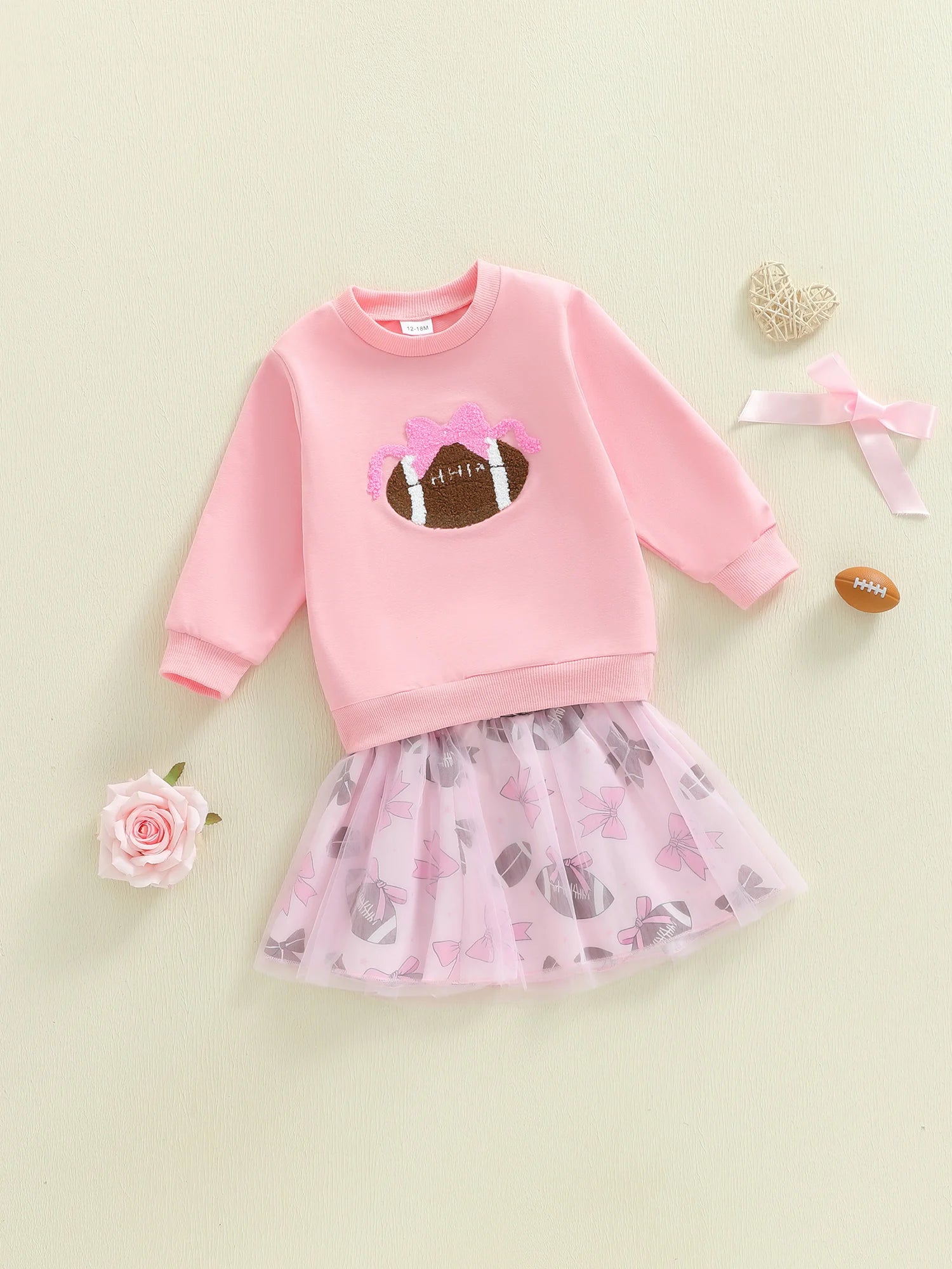 Baby Toddler Girl 2Pcs Fall Outfits Football Embroidery Long Sleeve Round Neck Top and Tutu Skirt 2Piece Set