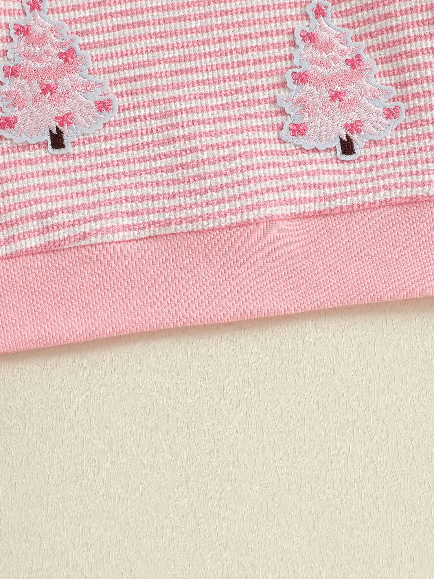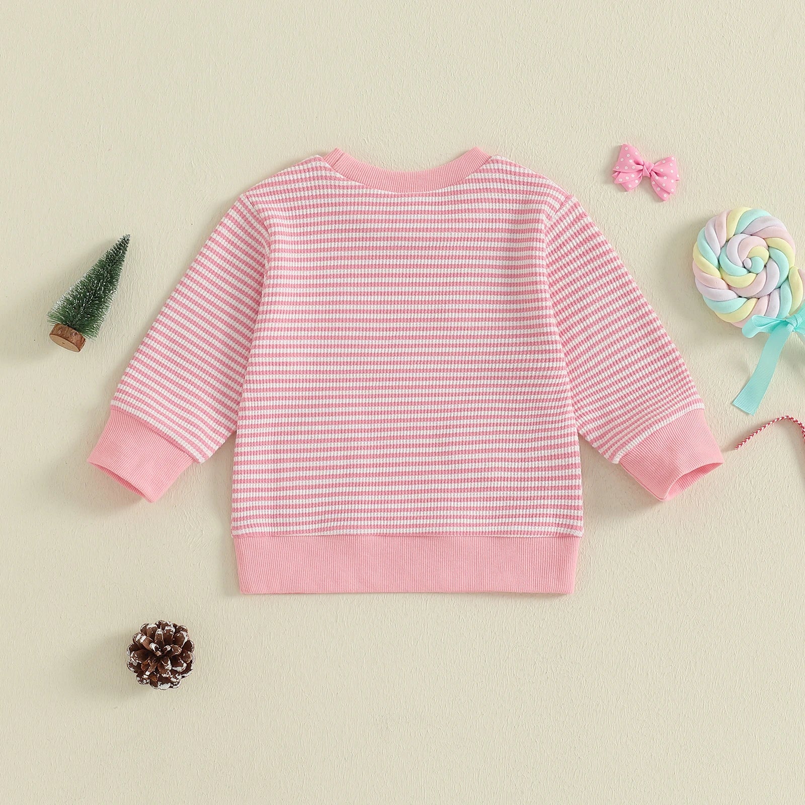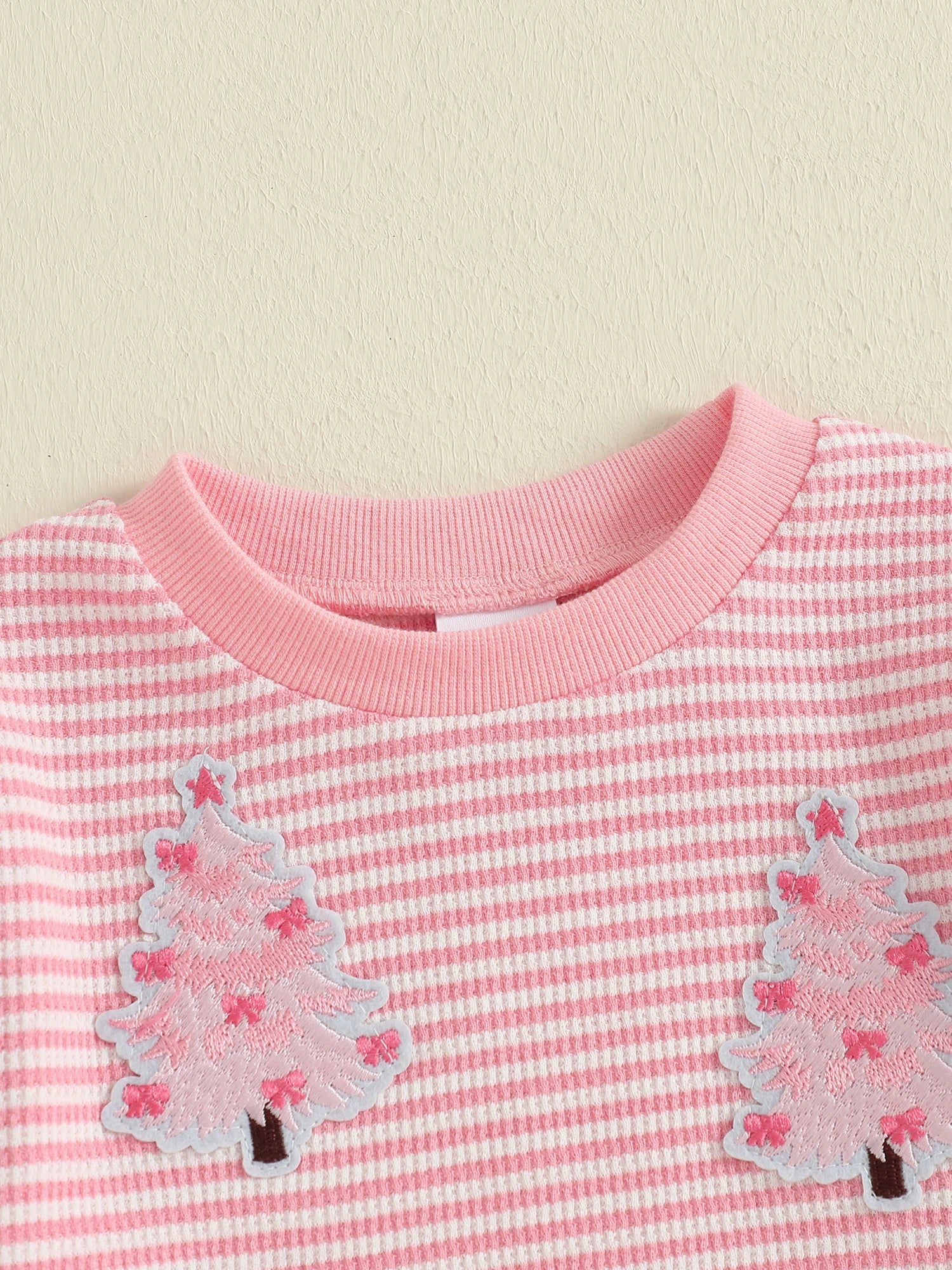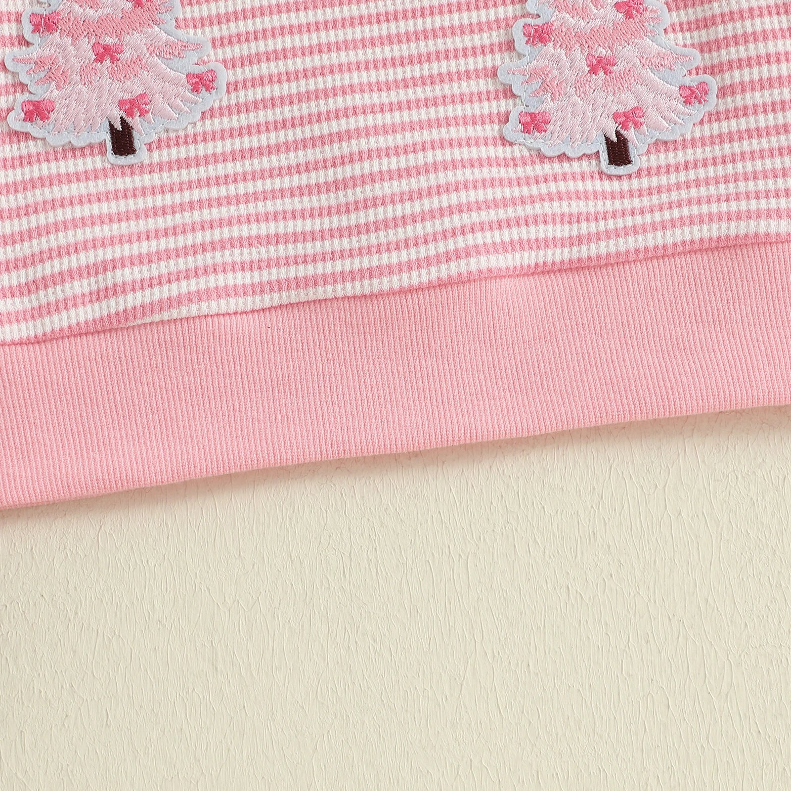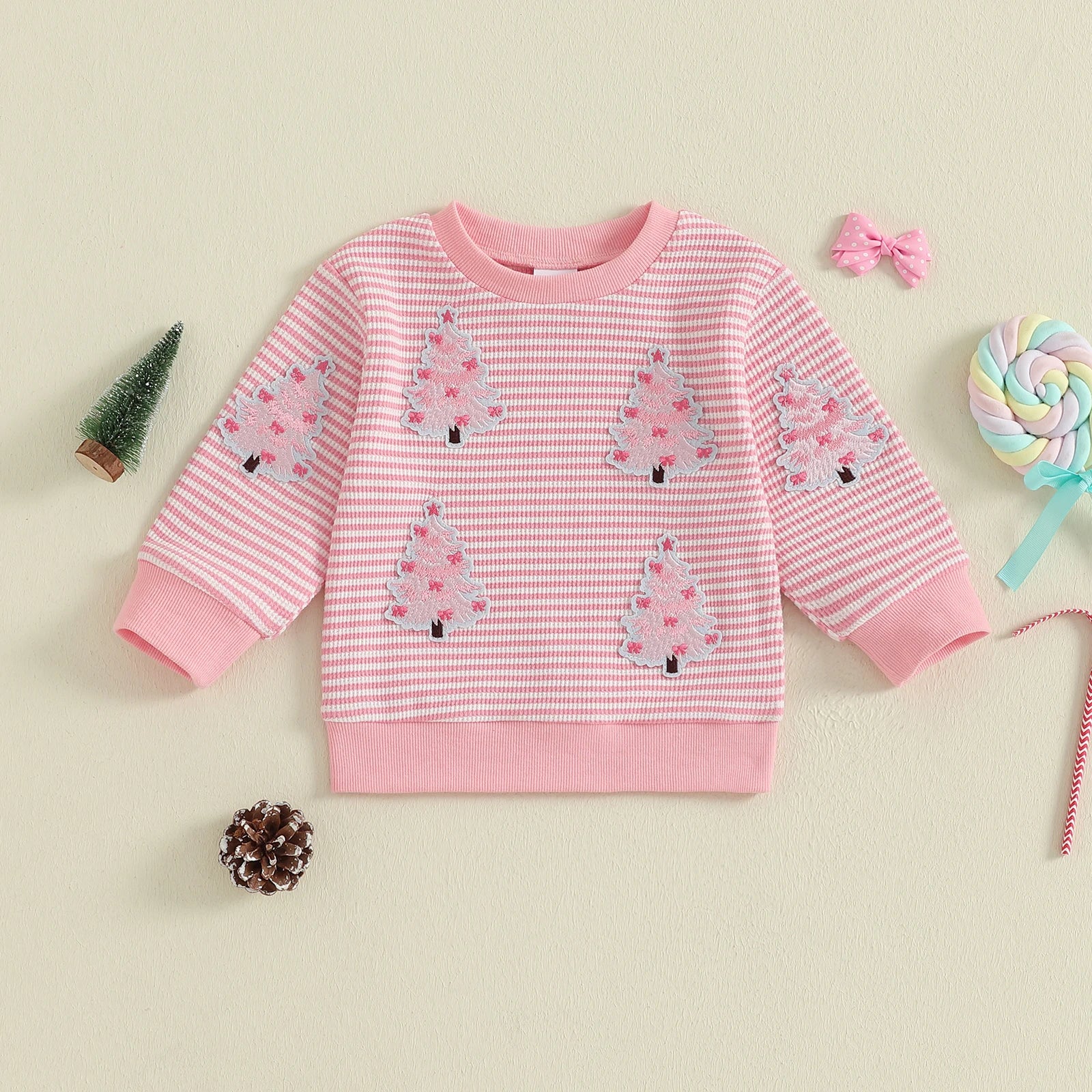 Baby Toddler Girl Christmas Top Christmas Tree Embroidered Striped Crew Neck Long Sleeve Pullover