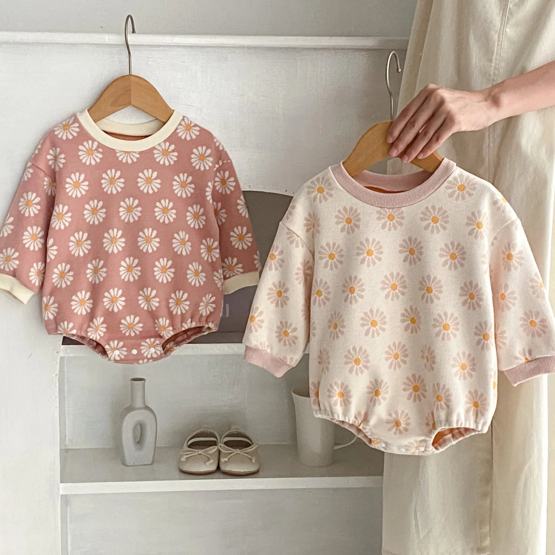 Baby Toddler Girl Clothes Flower Bubble Romper Long Sleeve Thick Warm Jumpsuit