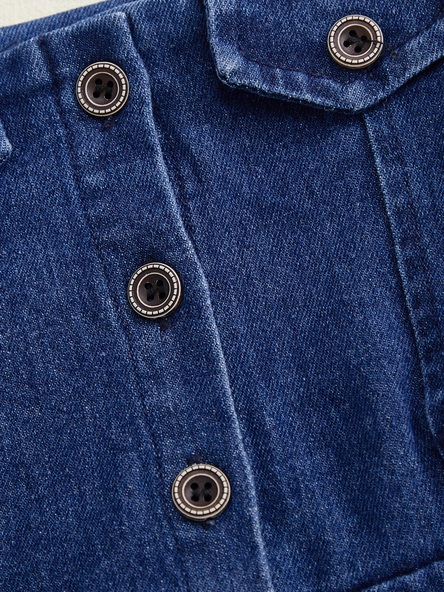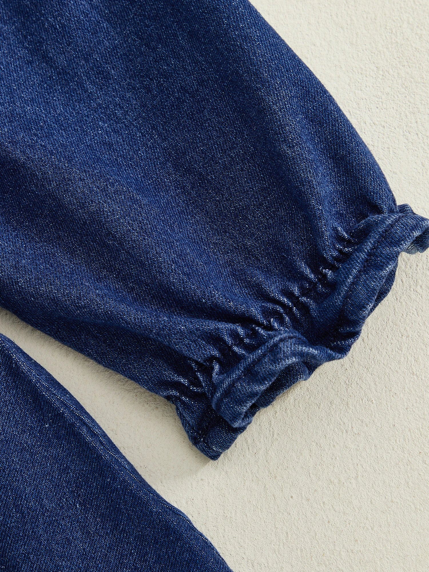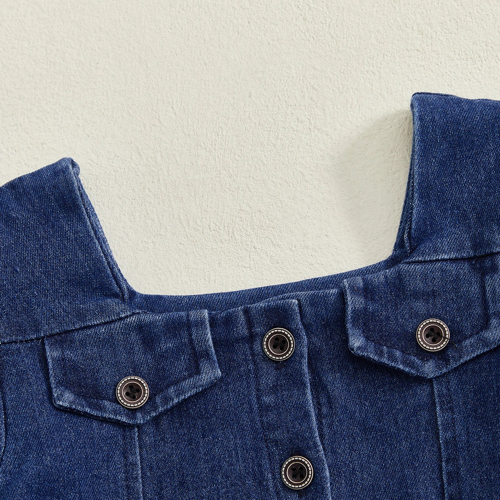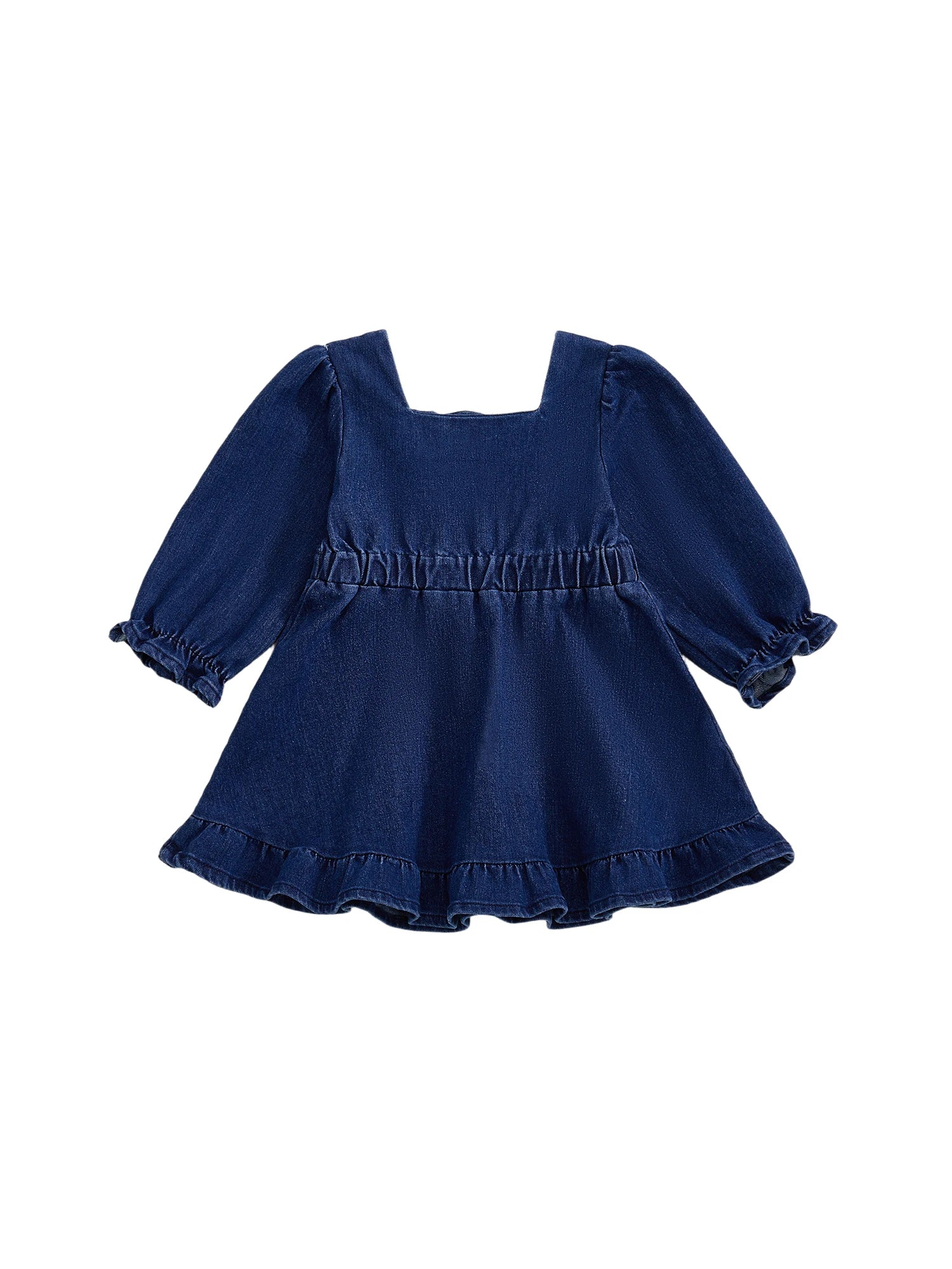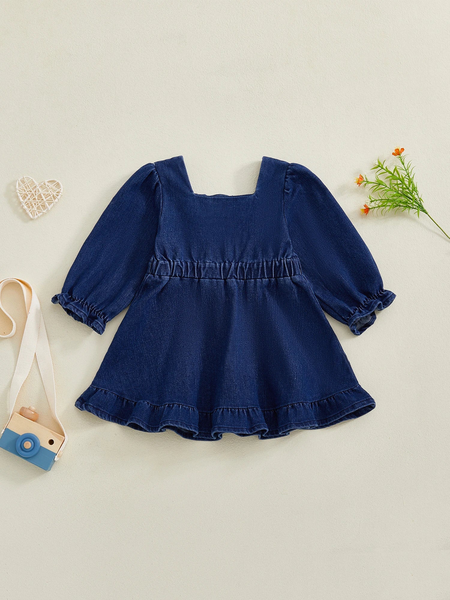 Baby Toddler Girl Denim Dress Long Puff Sleeve Button Down A-Line Dress Ruffle Dress