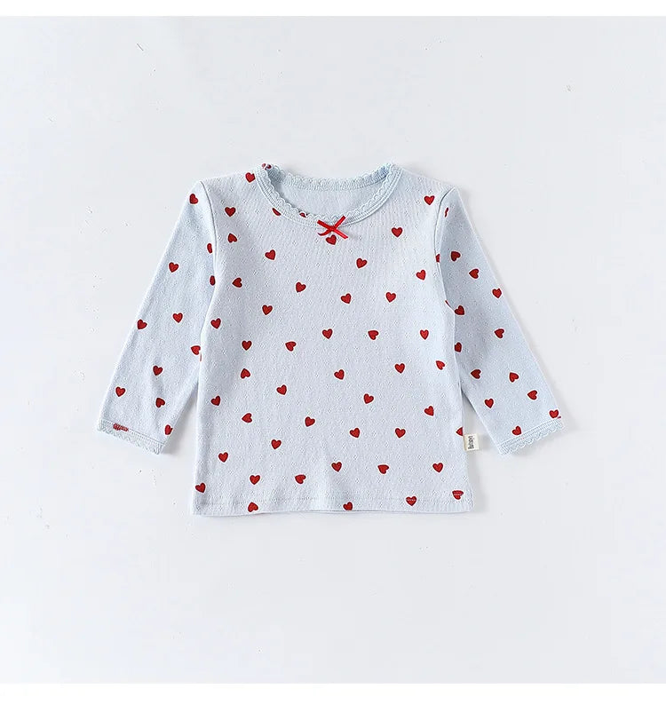 Baby Toddler Girls 2Pcs 100% Cotton Clothes Set Long Sleeve Top Pants Suit Bow/Heart Print Pajamas Set Homewear Outfit