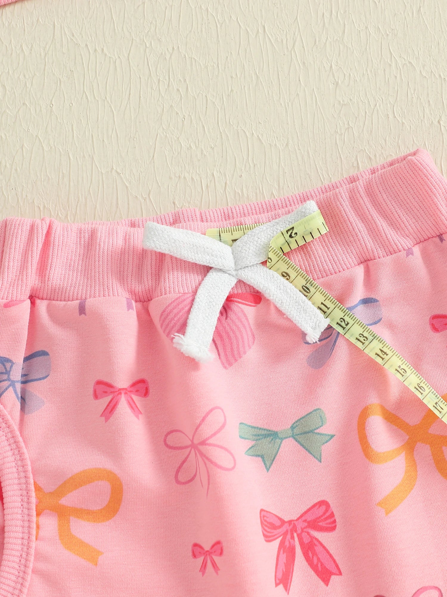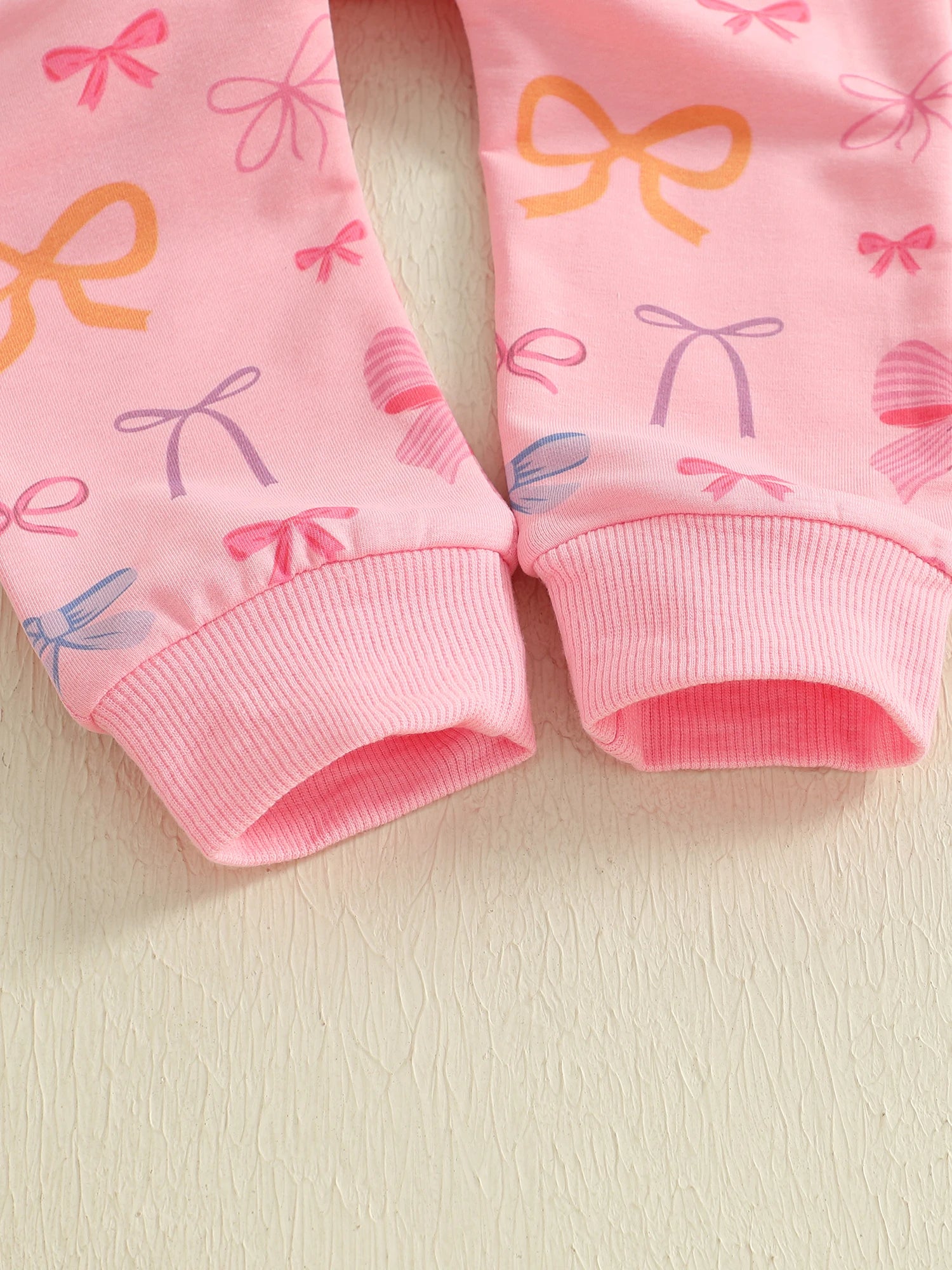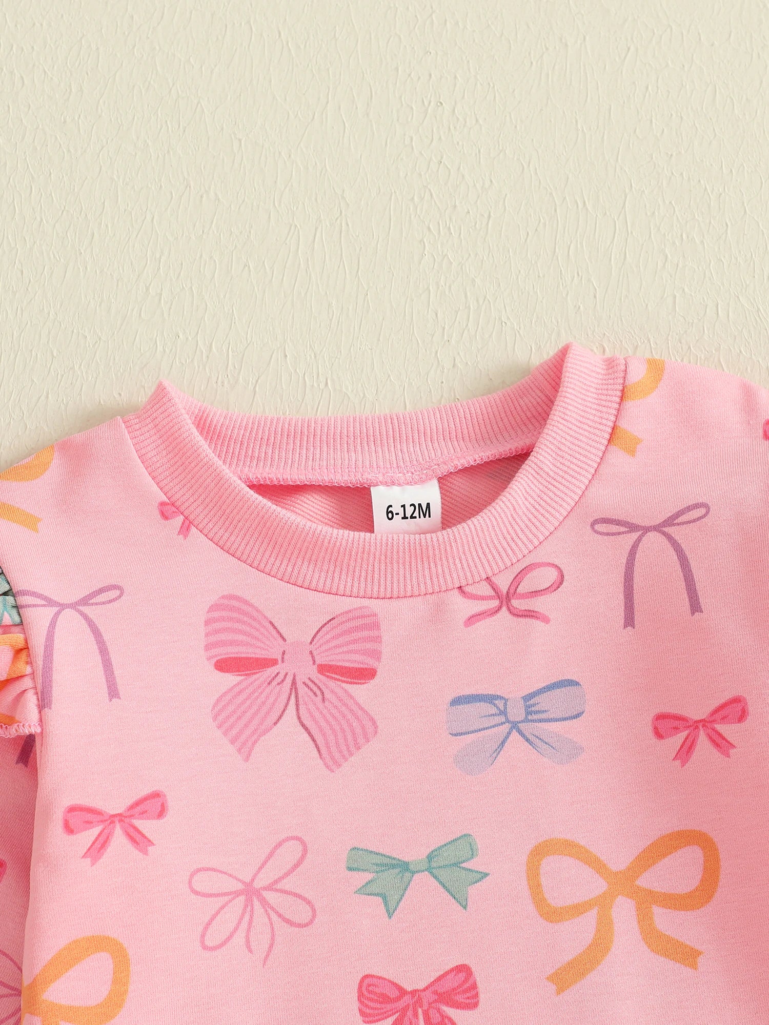 Baby Toddler Girls 2Pcs Fall Outfits Bow Print Ruffled Long Sleeve Top and Elastic Pants Jogger Set