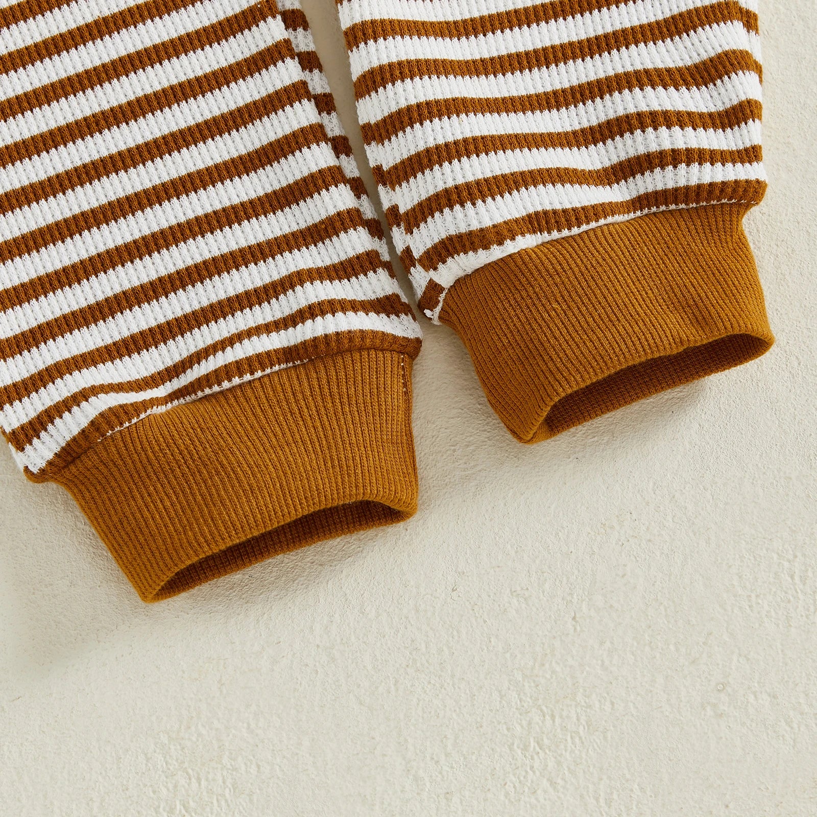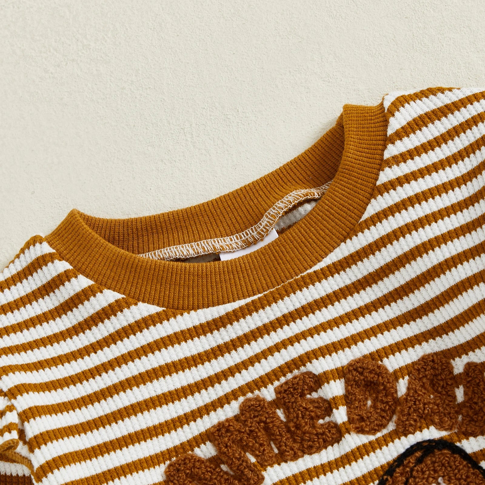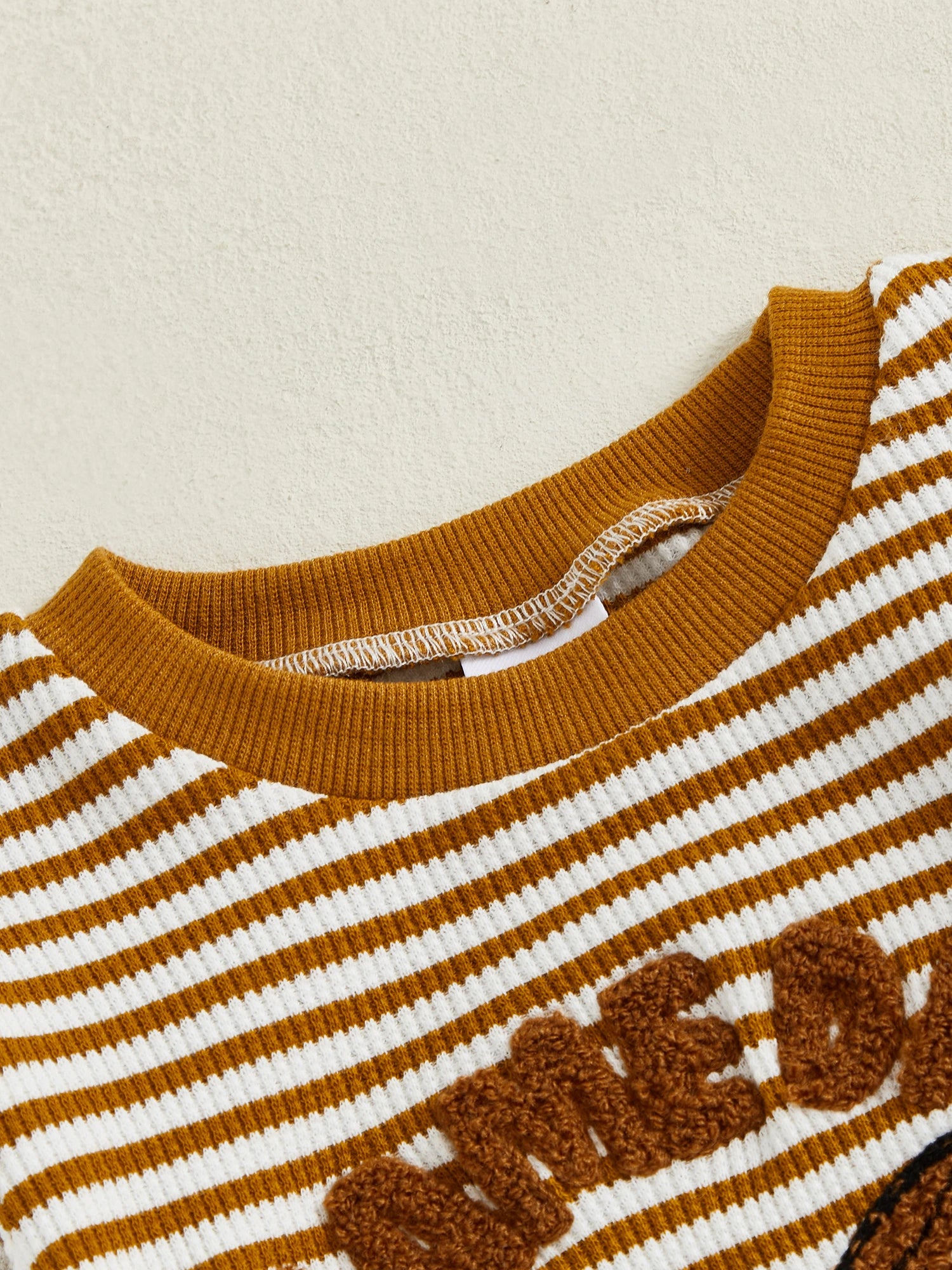 Baby Toddler Girls 2Pcs Game Day Fall Outfits Letter Bow Embroidered Striped Crew Neck Long Sleeve Top with Jogger Pants 2Pcs Set