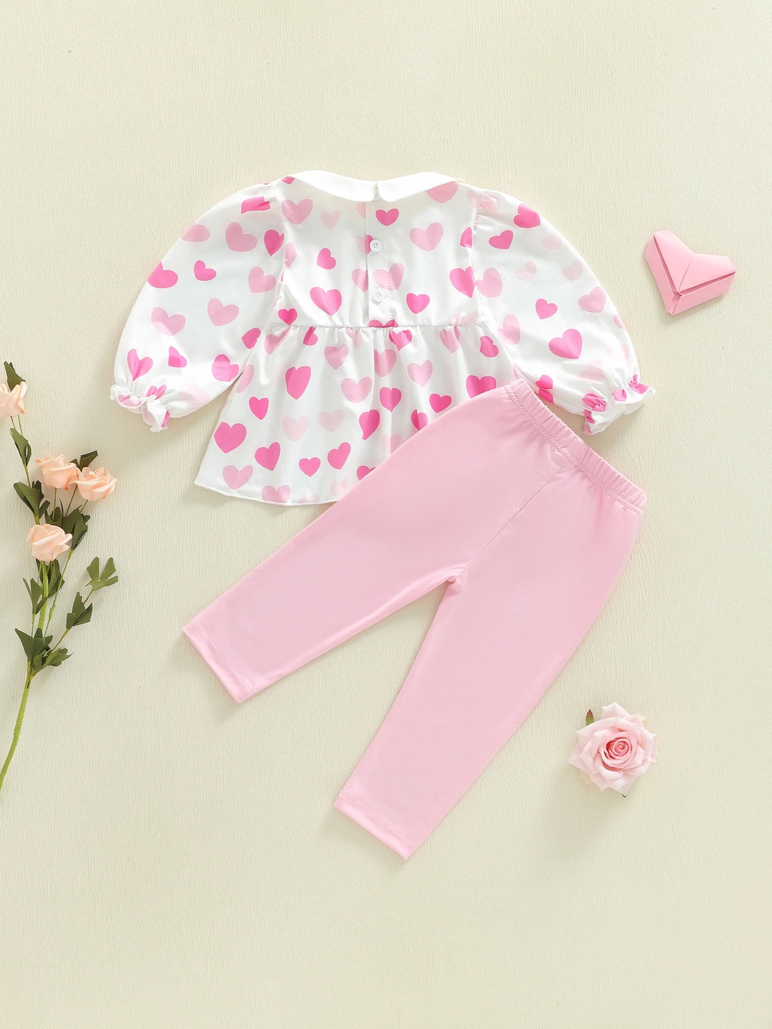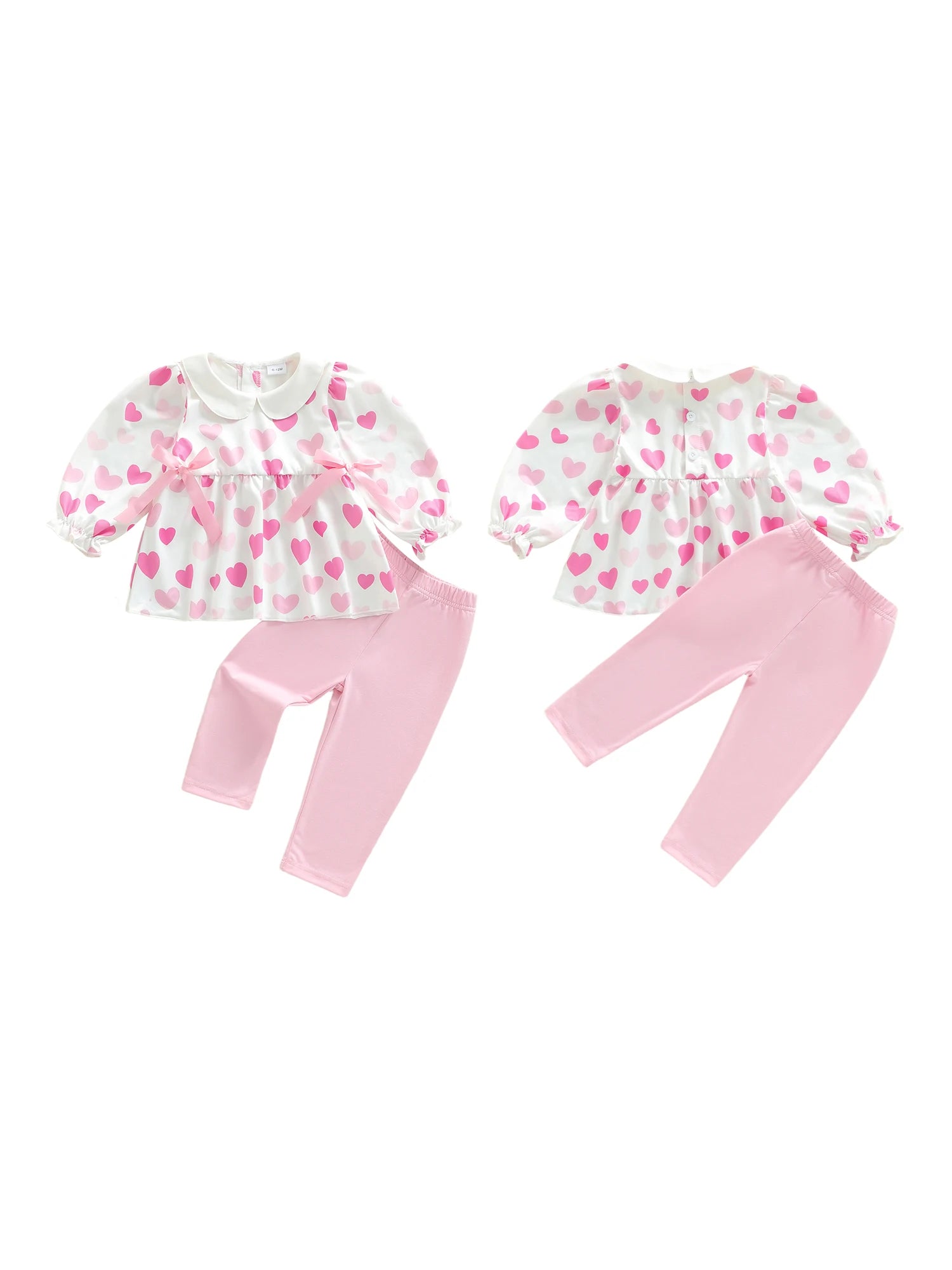 Baby Toddler Girls 2Pcs Pants Set Long Sleeve Heart Print Top with Pants Valentines Day Clothes Outfit