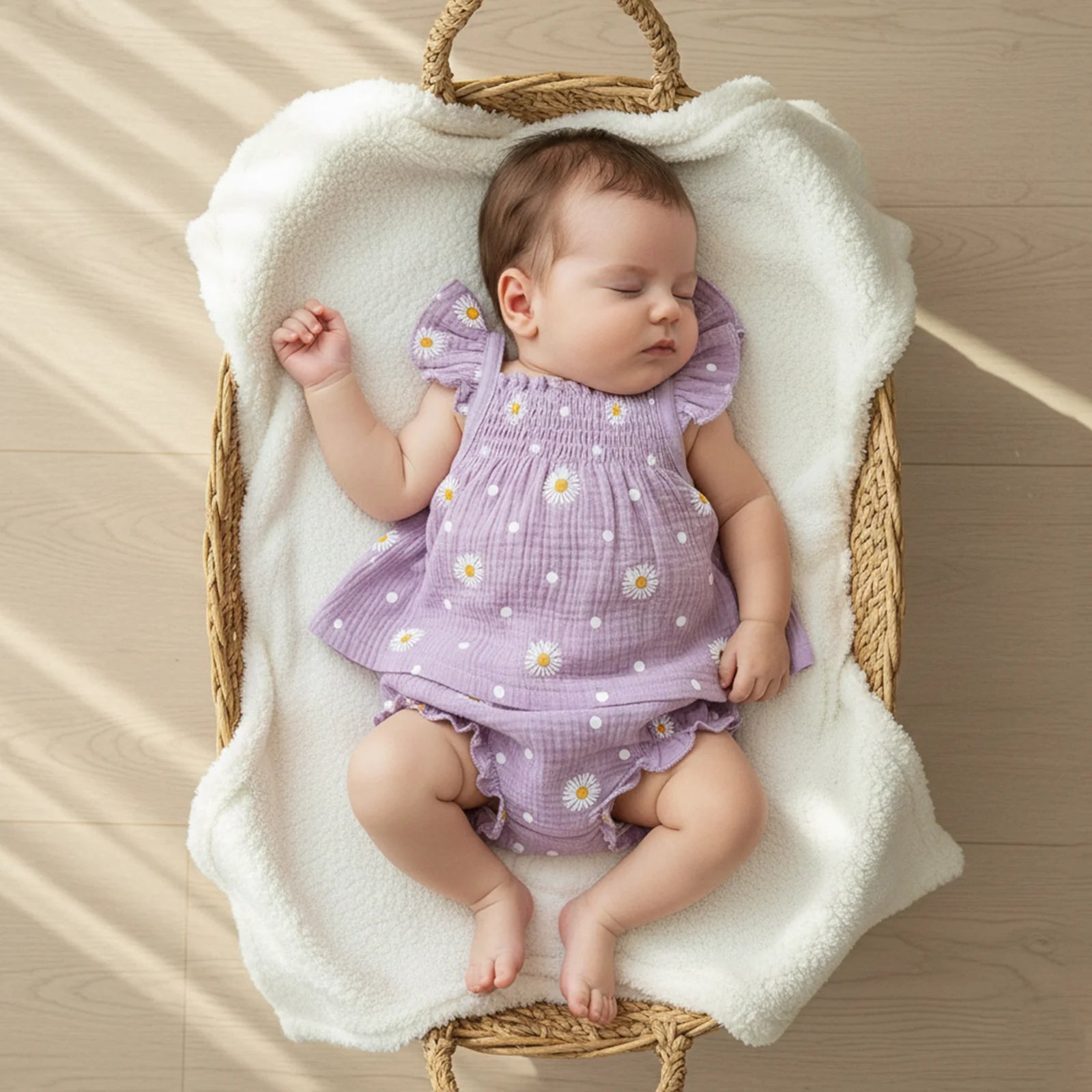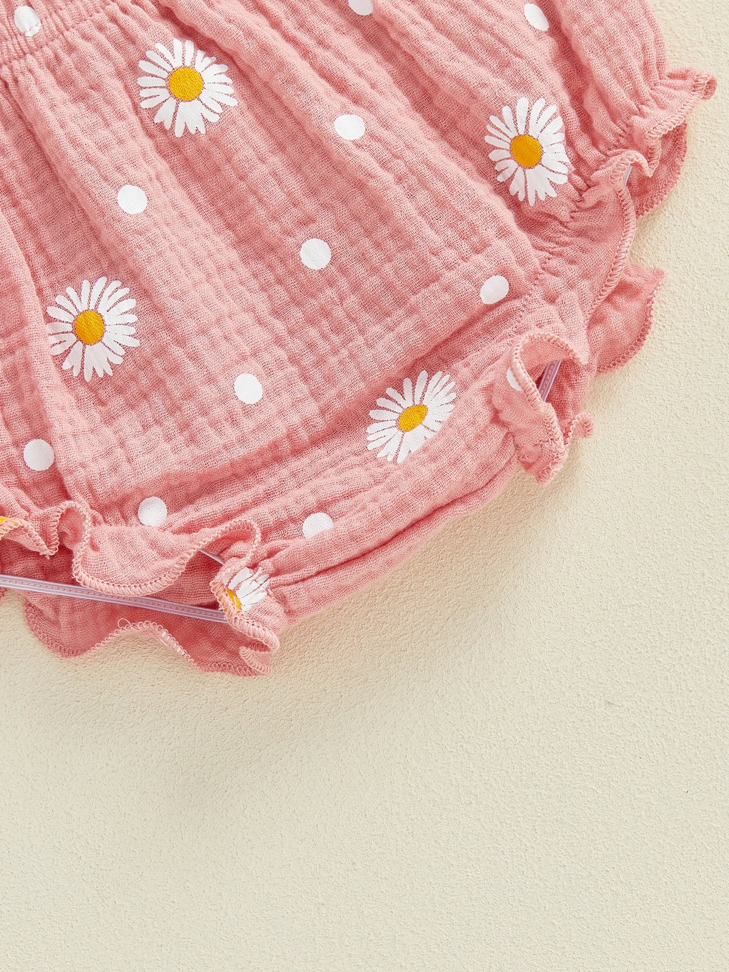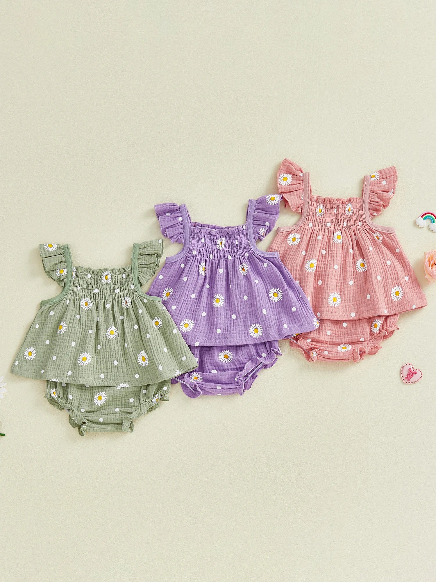 Baby Toddler Girls 2Pcs Summer Outfit Sleeveless Square Collar Daisy Print Ruffled Top and Bloomers Shorts 2 Piece Set