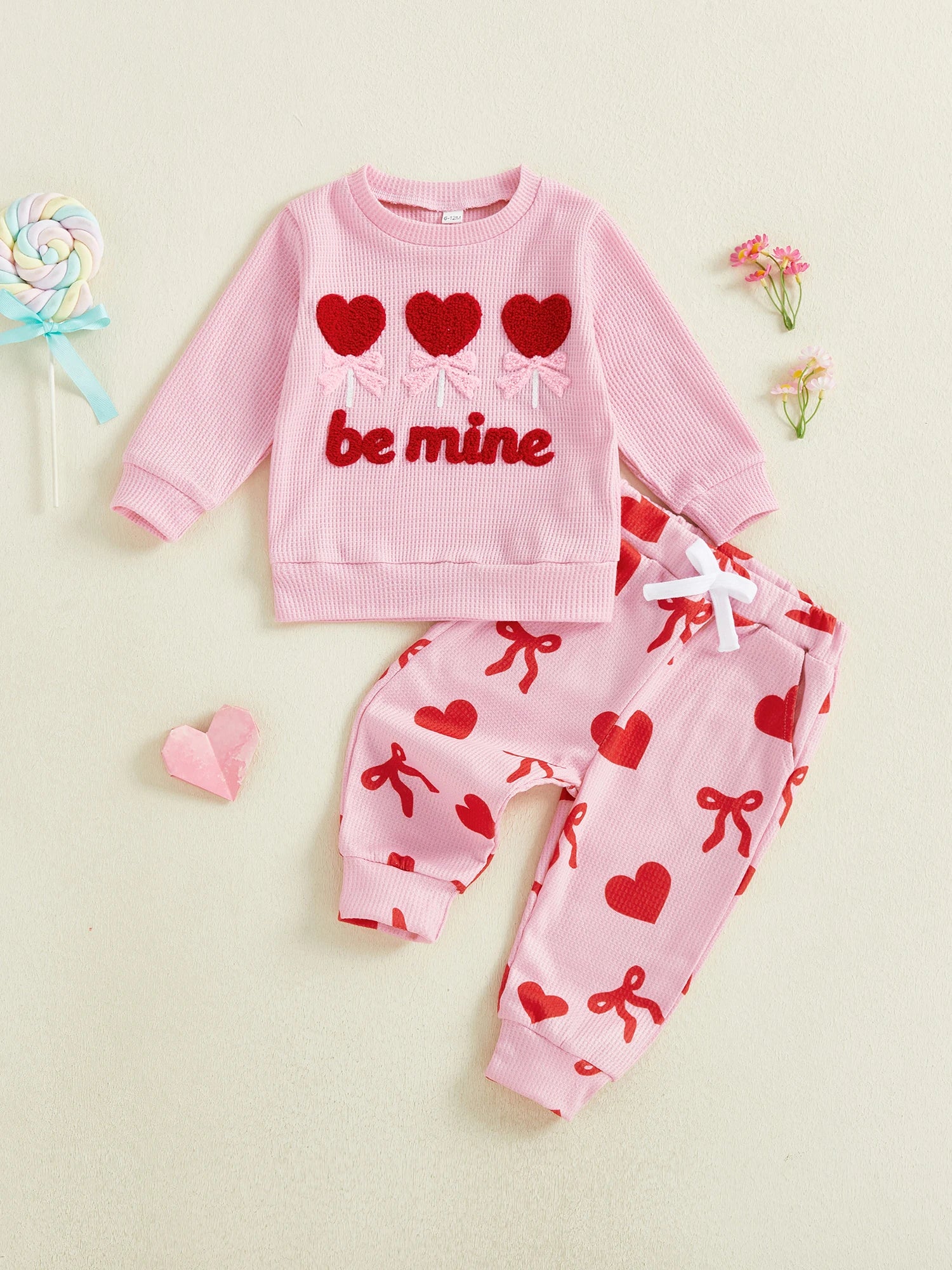 Baby Toddler Girls 2Pcs Valentine's Day Be Mine / Jesus Loves Me Outfit Fashionable Heart Letters Embroidery Long Sleeve Pullover Top with Pants Jogger Set