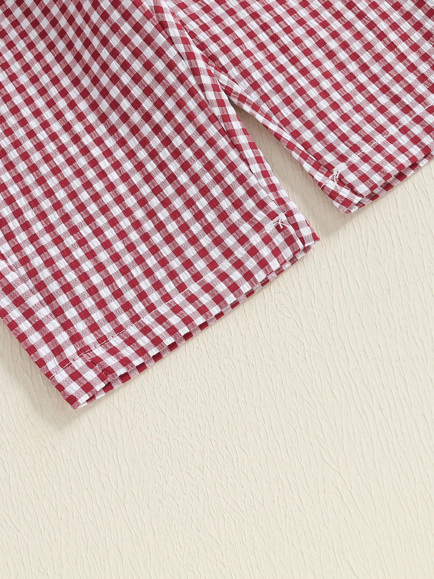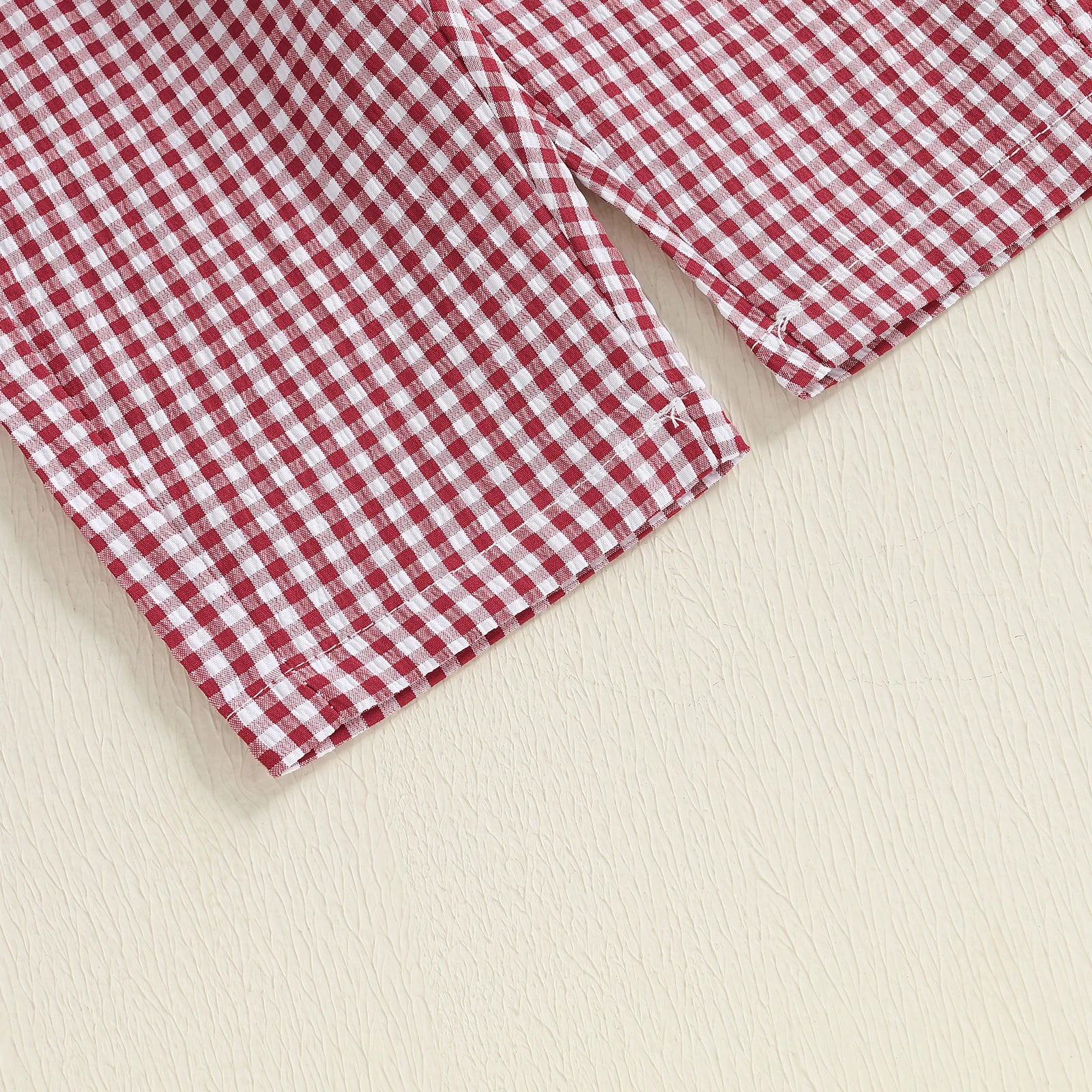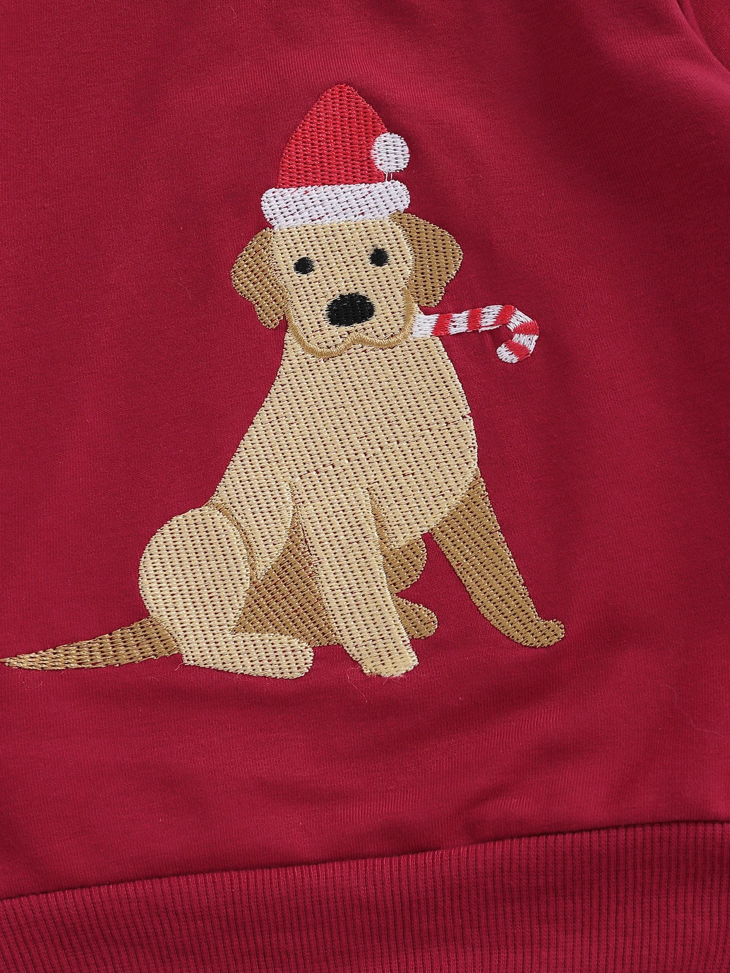 Baby Toddler Girls Boys 2Pcs Christmas Outfit Dog Embroidered Crew Neck Long Sleeve Top and Plaid Pants Set