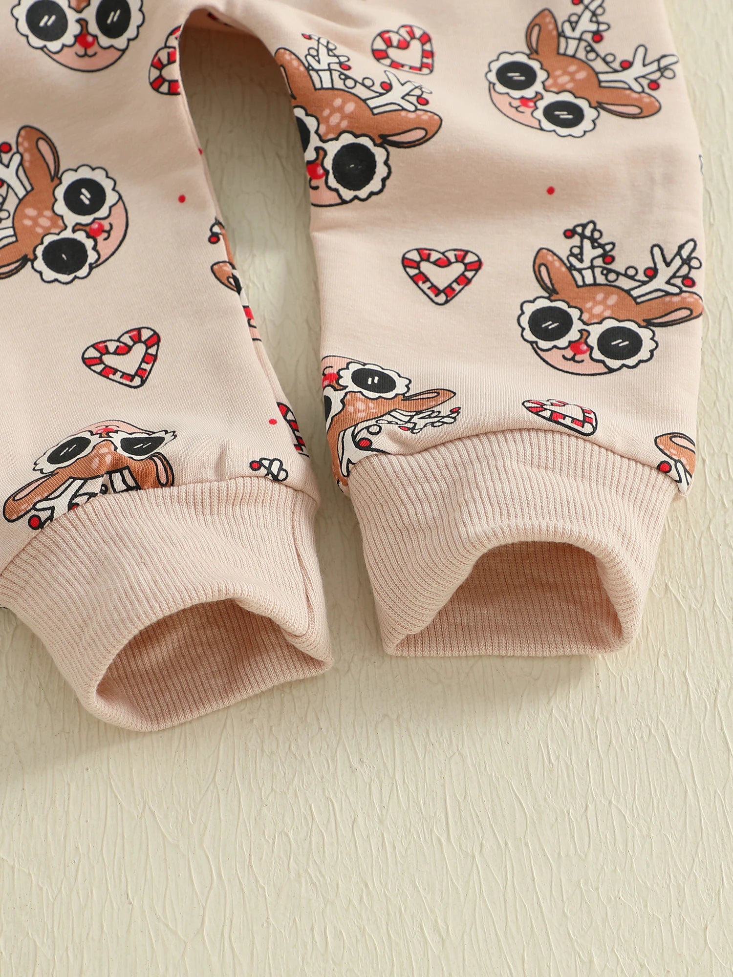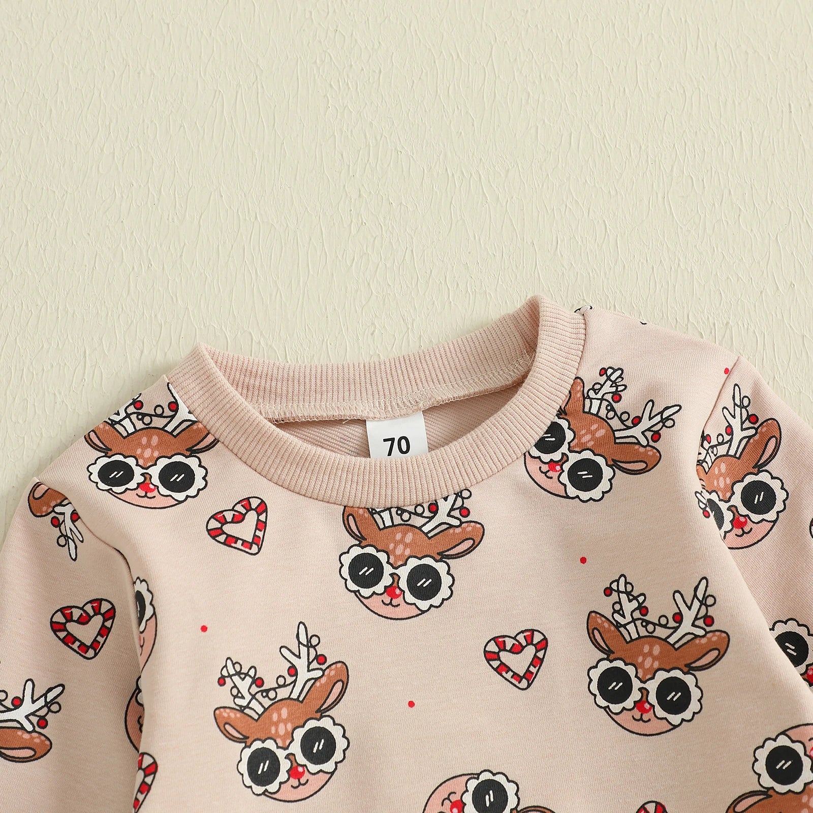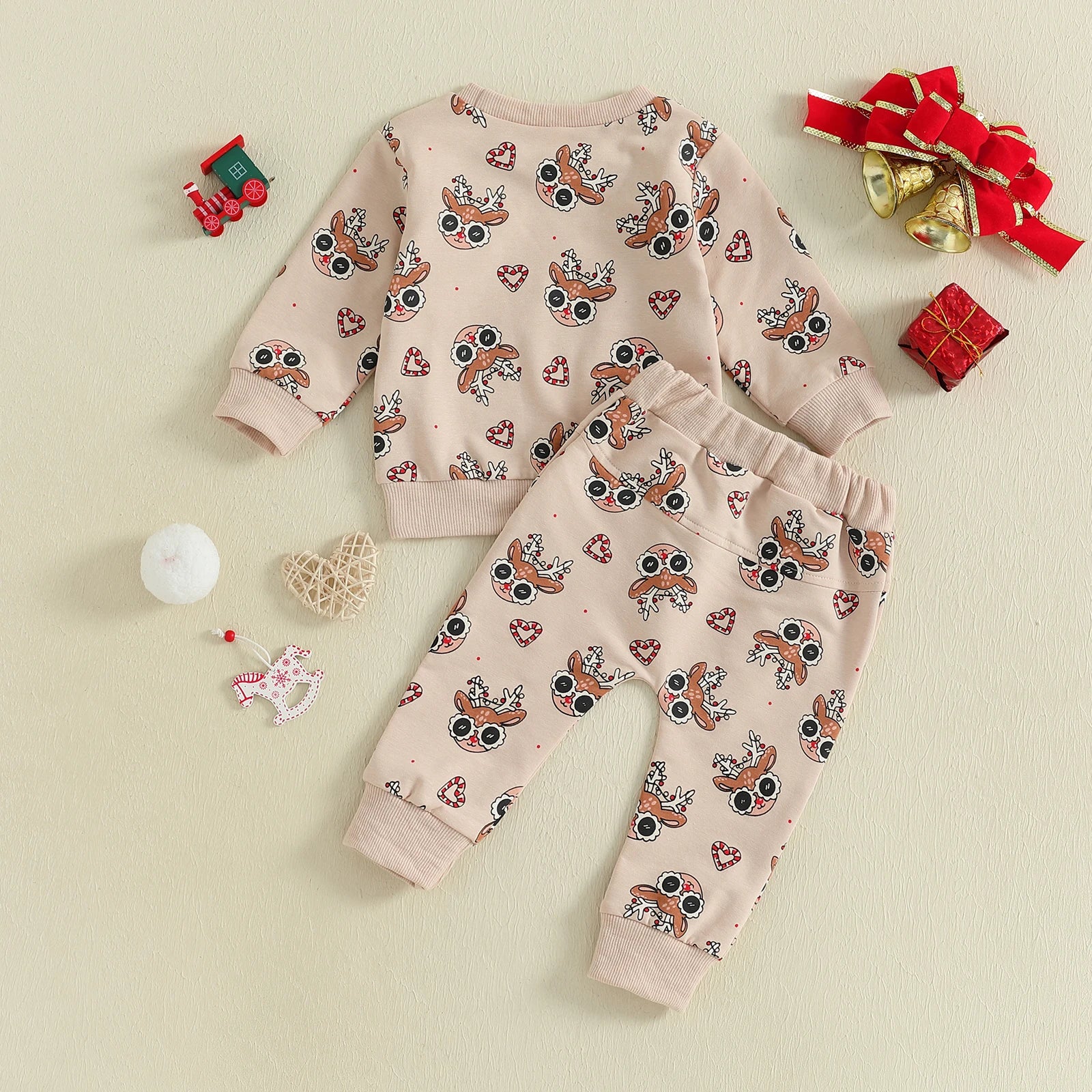 Baby Toddler Girls Boys 2Pcs Clothes Jogger Set Christmas Reindeer Pattern Long Sleeve Pullover Pants Outfit