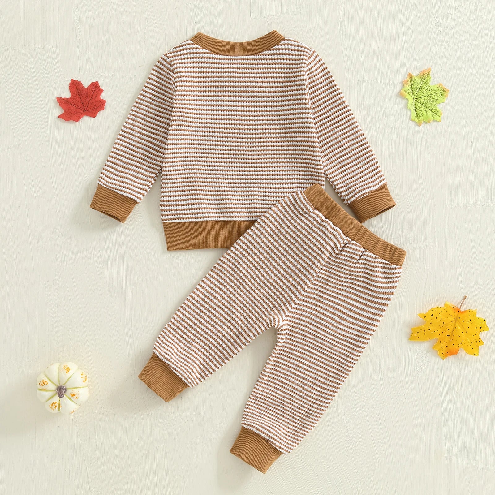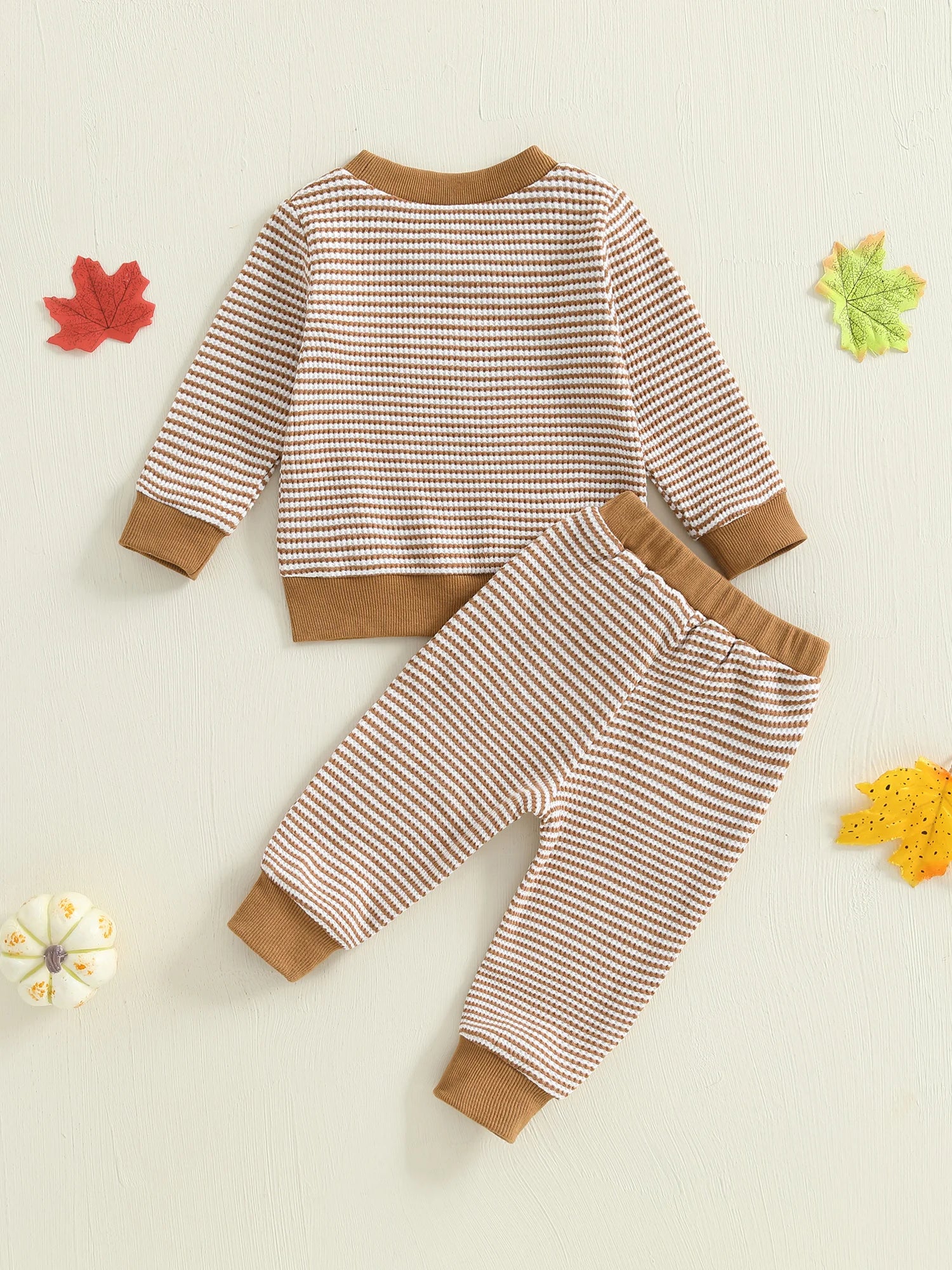Baby Toddler Girls Boys 2Pcs Thanksgiving Outfits Turkey Embroidery Striped Long Sleeve Top and Elastic Pants Jogger Set