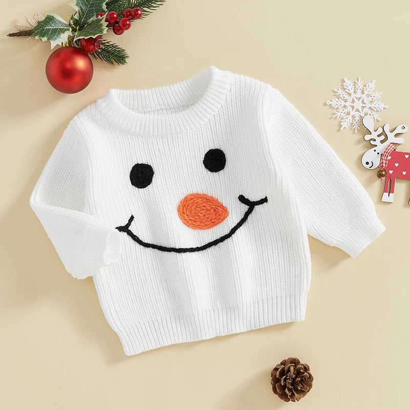 Baby Toddler Girls Boys Christmas Knit Sweater Long Sleeve O Neck Reindeer/Snowman/Joy Santa Hat Embroidery Pullover Knitwear Top