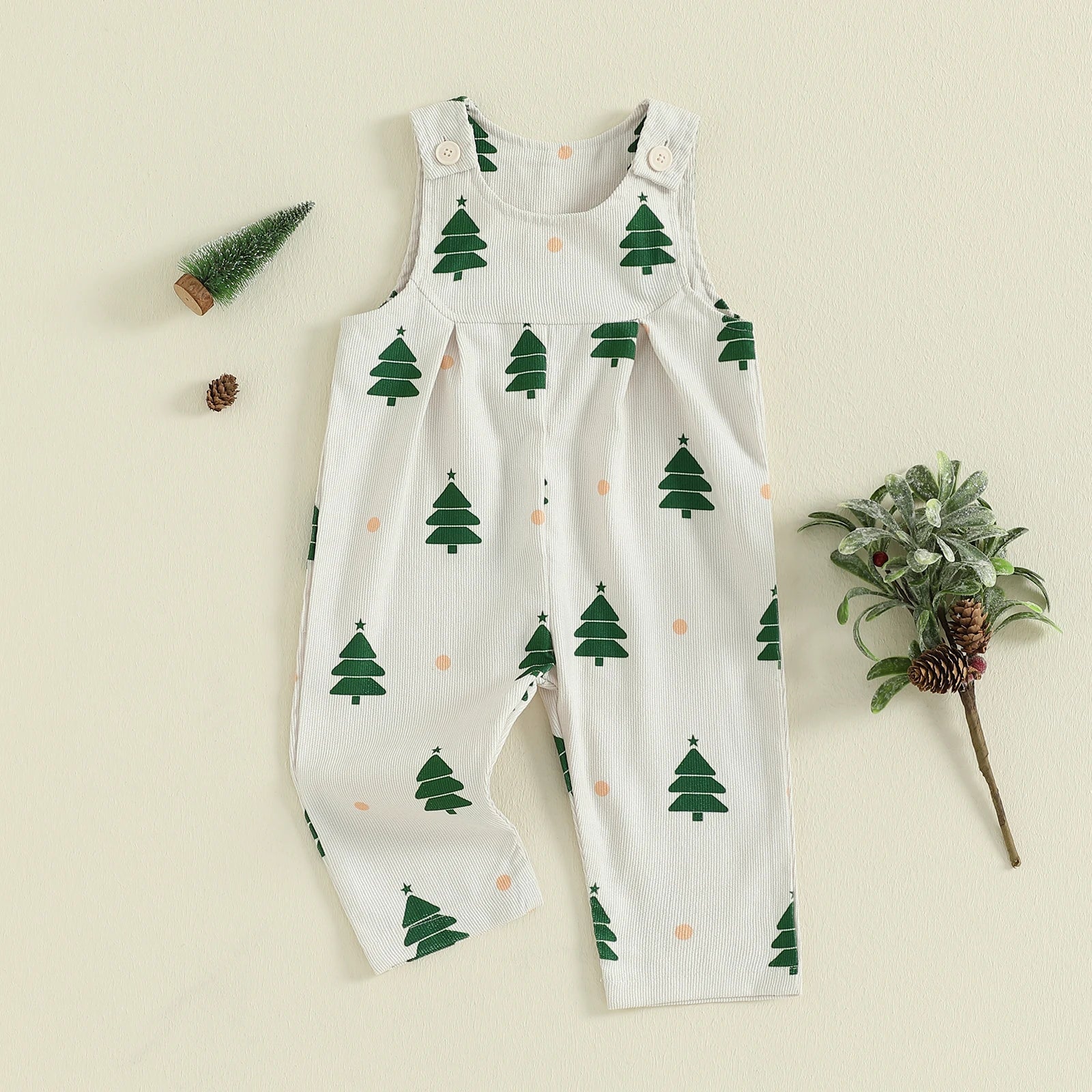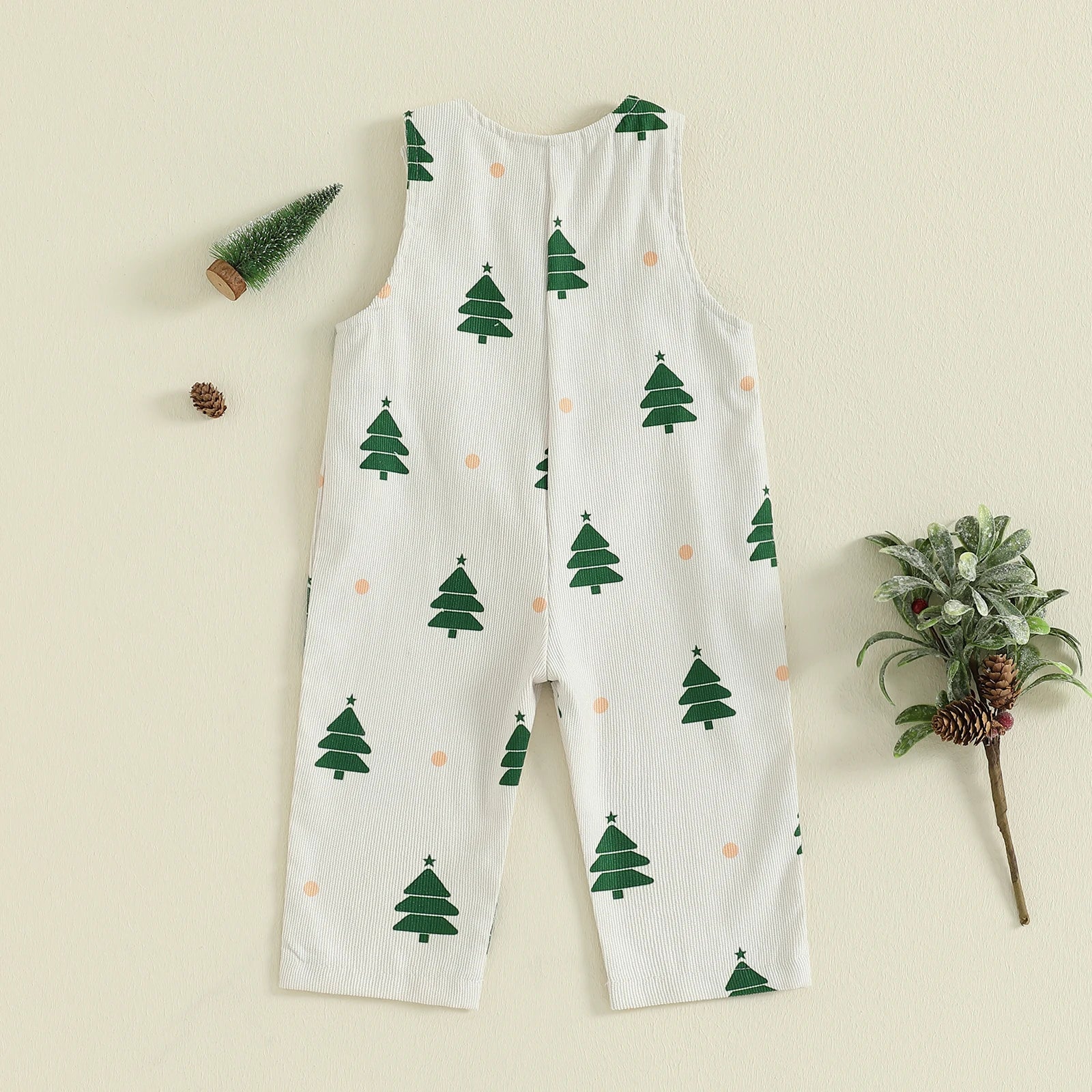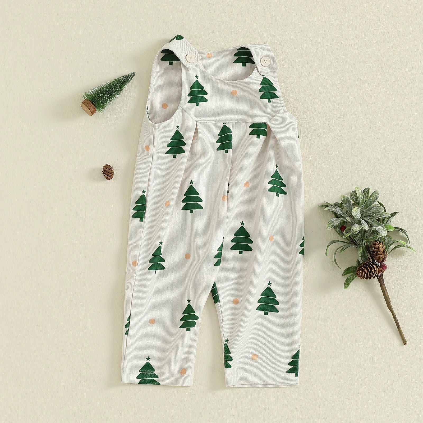 Baby Toddler Girls Boys Christmas Overalls Romper Christmas Tree Print Sleeveless Jumpsuit Suspender Pants