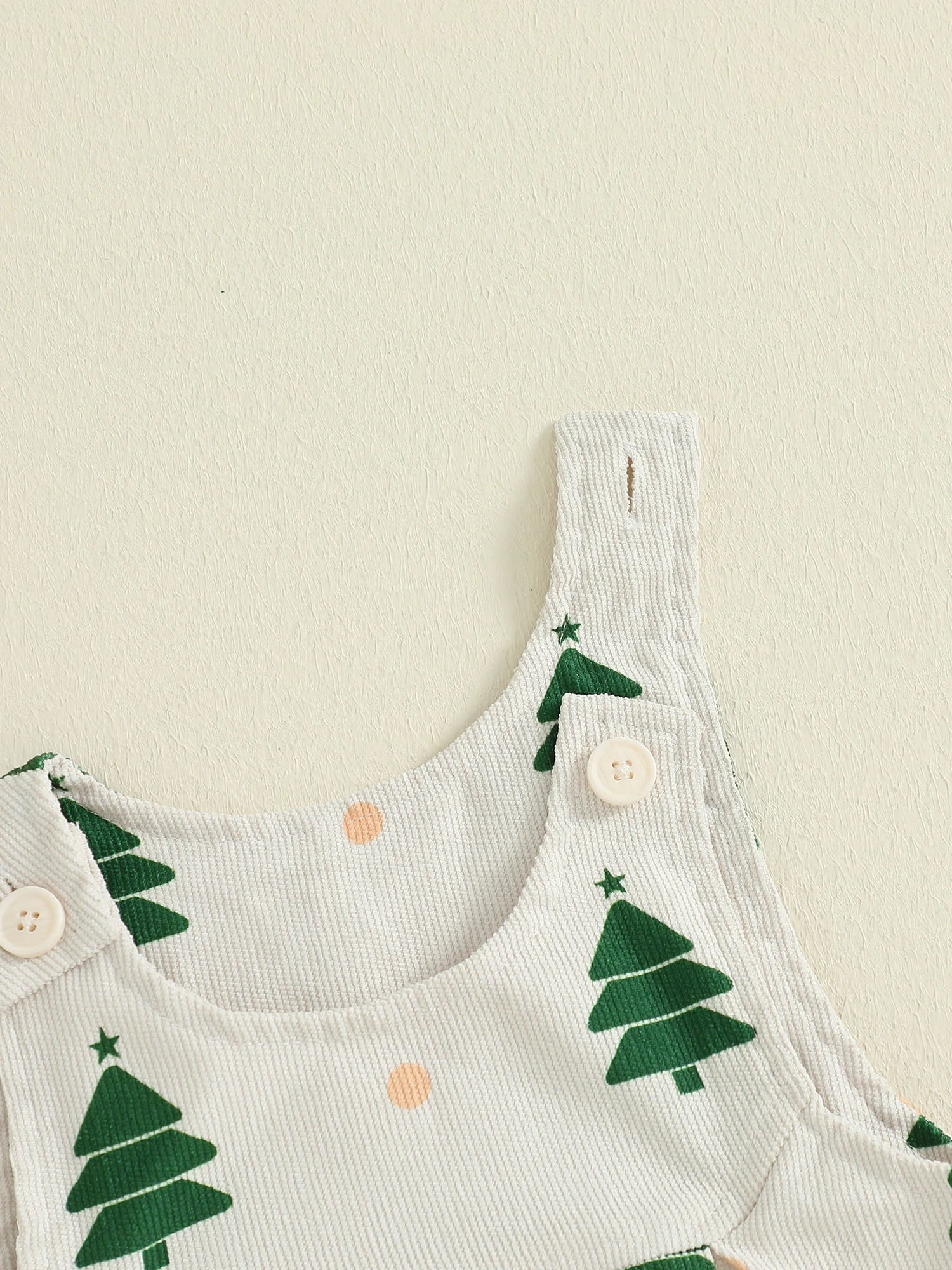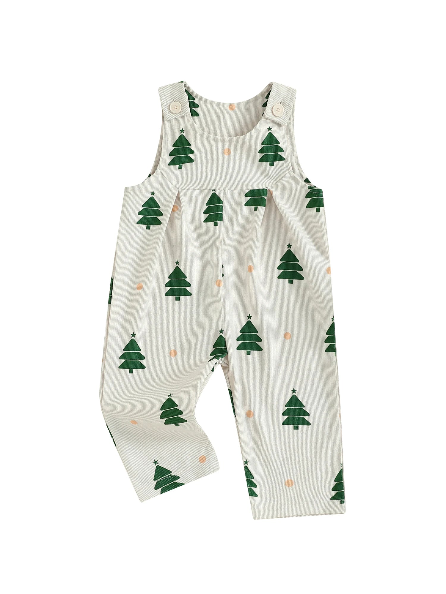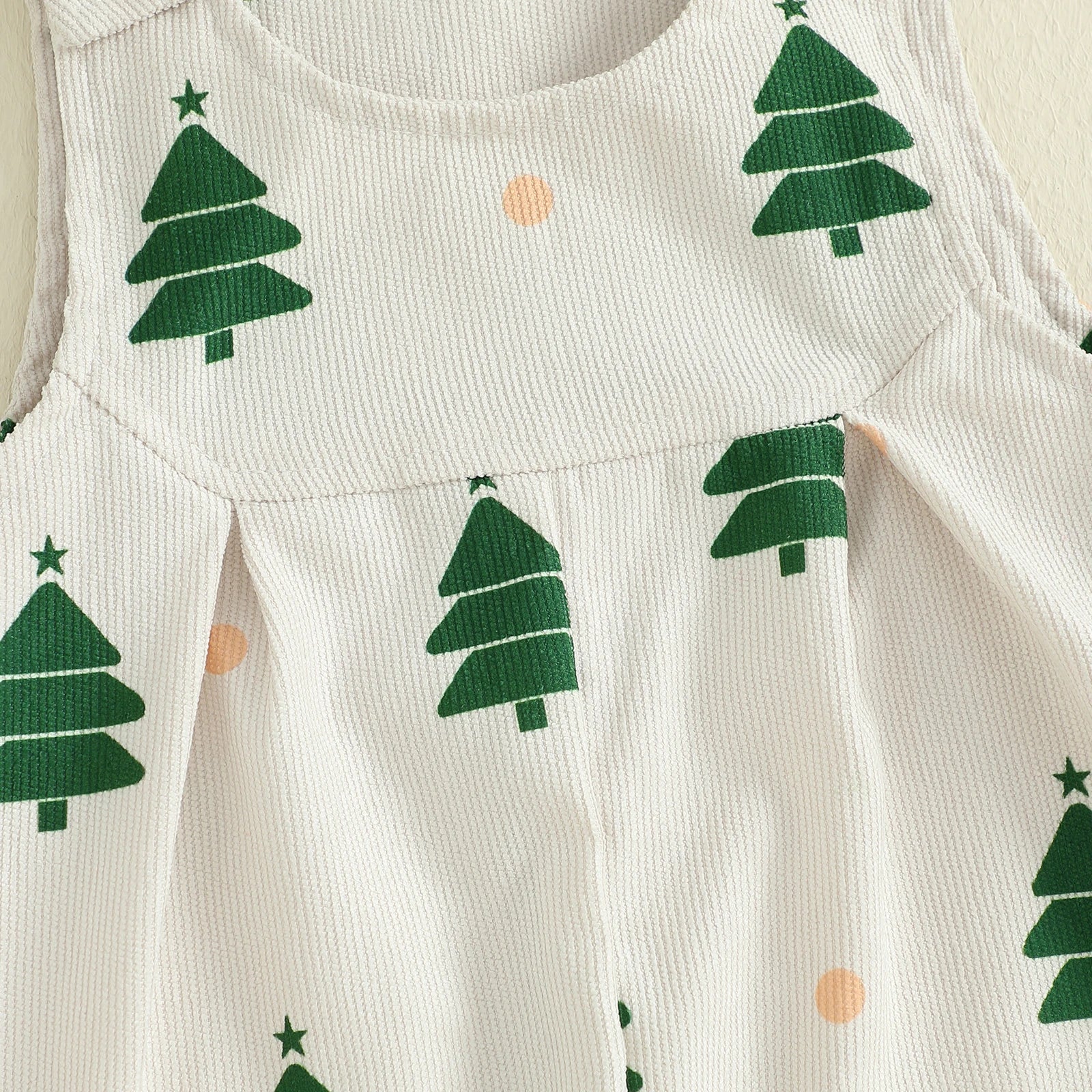 Baby Toddler Girls Boys Christmas Overalls Romper Christmas Tree Print Sleeveless Jumpsuit Suspender Pants