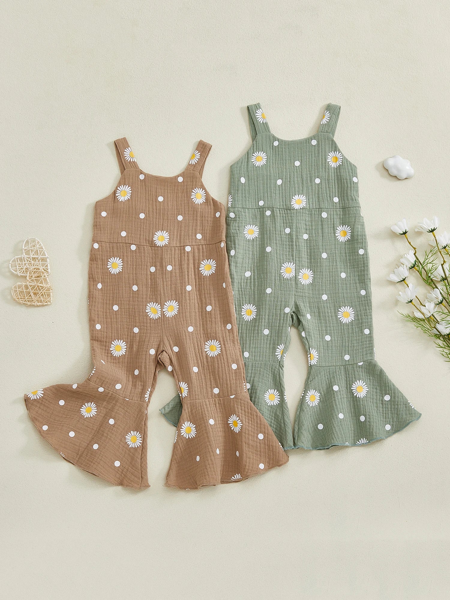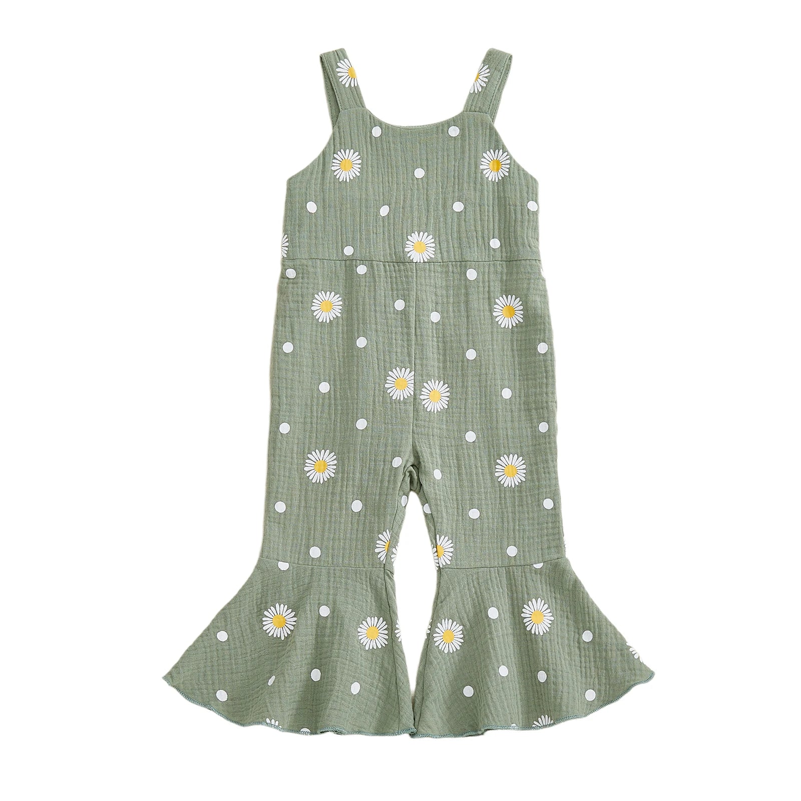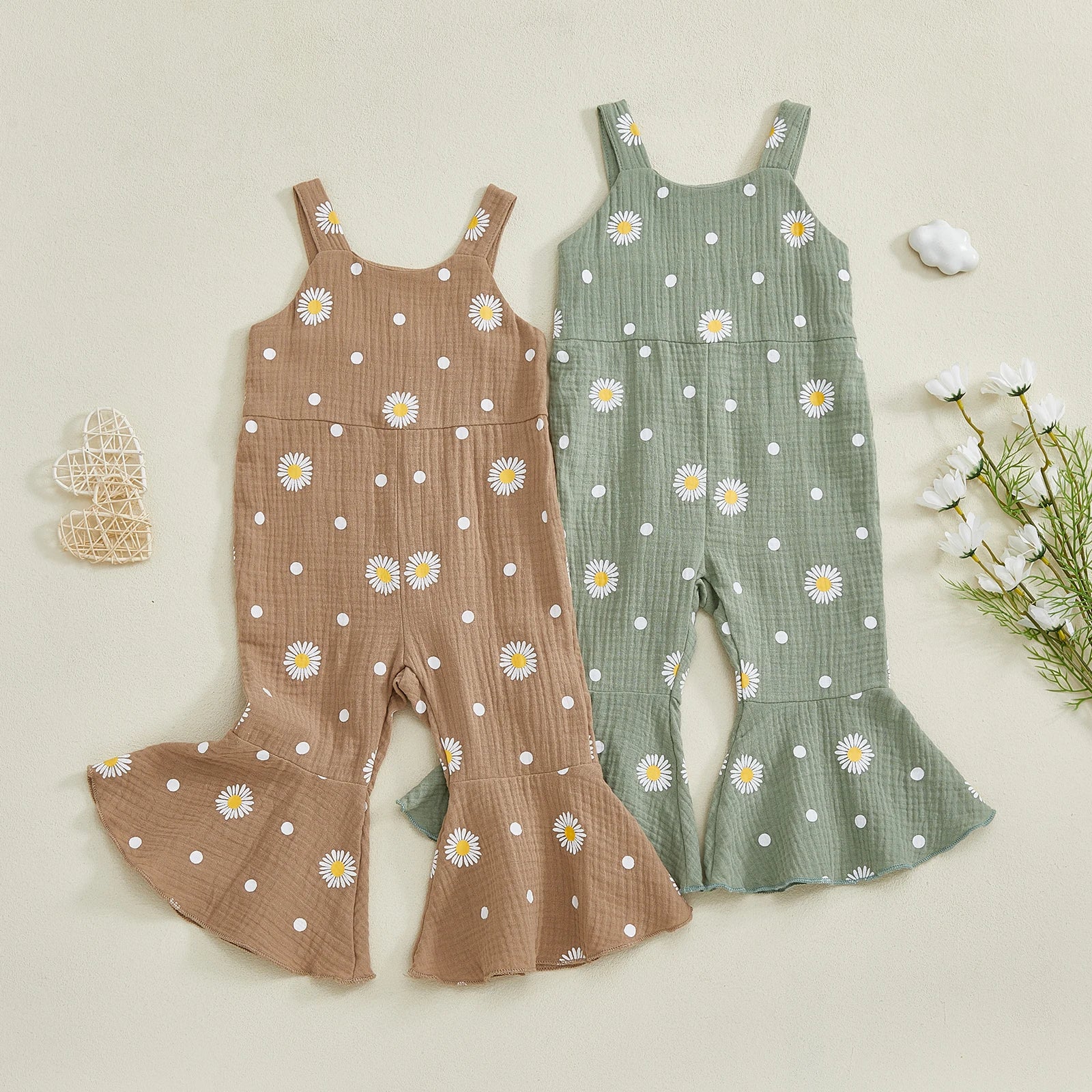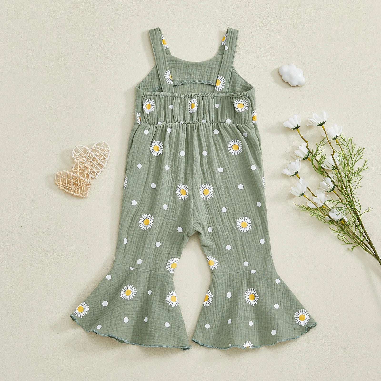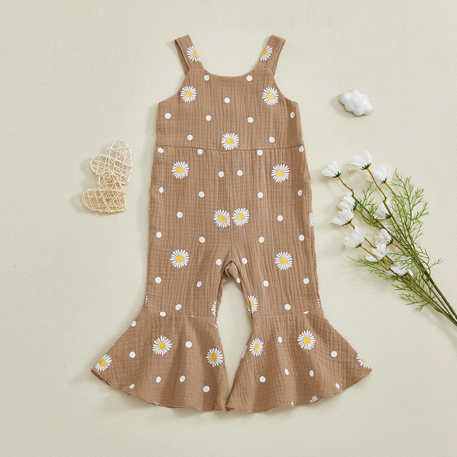 Baby Toddler Girls Summer Overalls Infants Sleeveless Daisy Floral Print Suspender Flared Pants