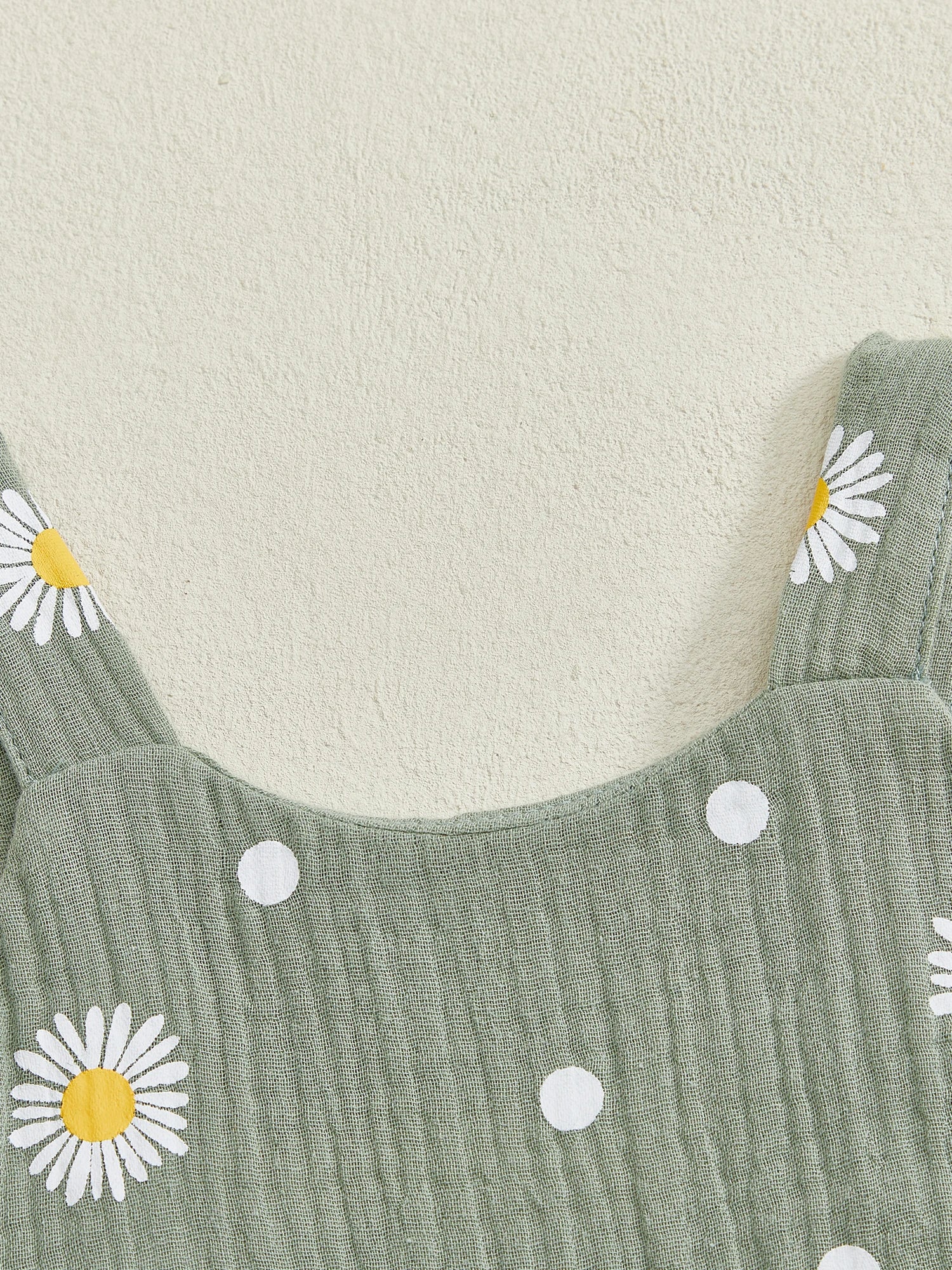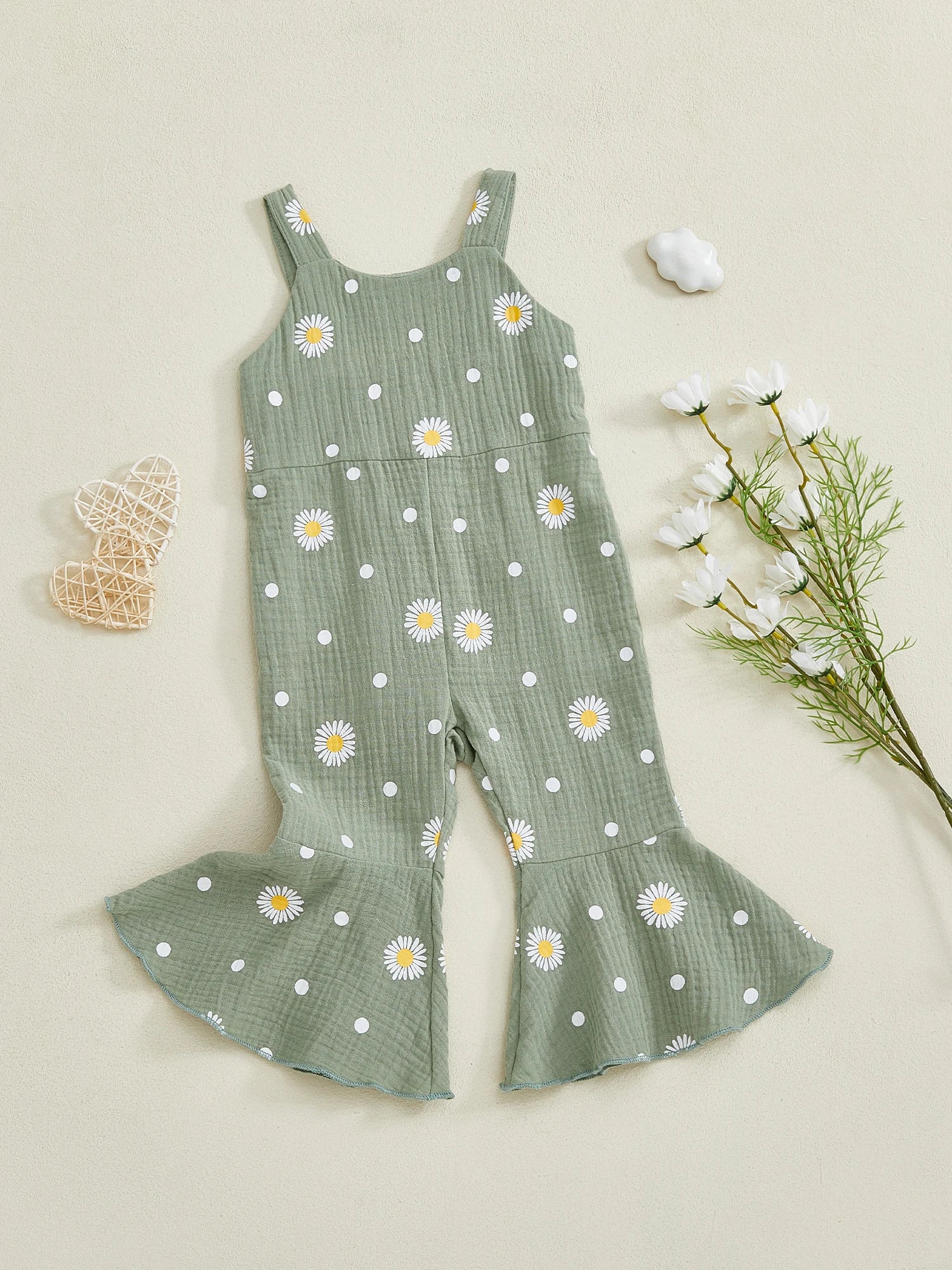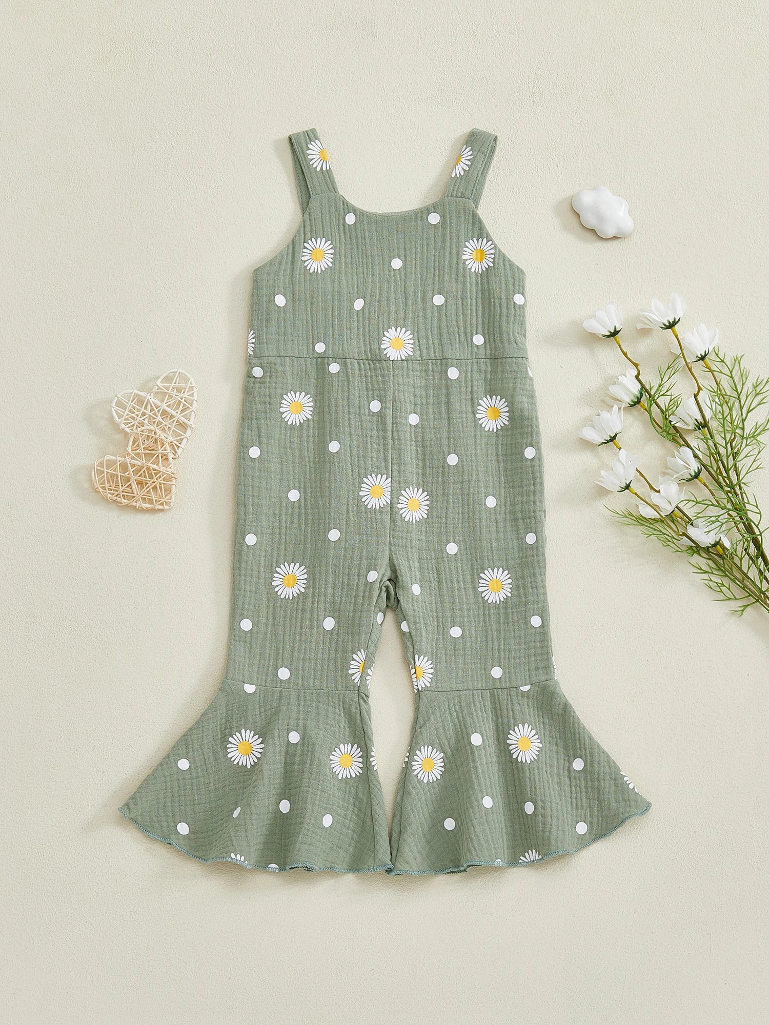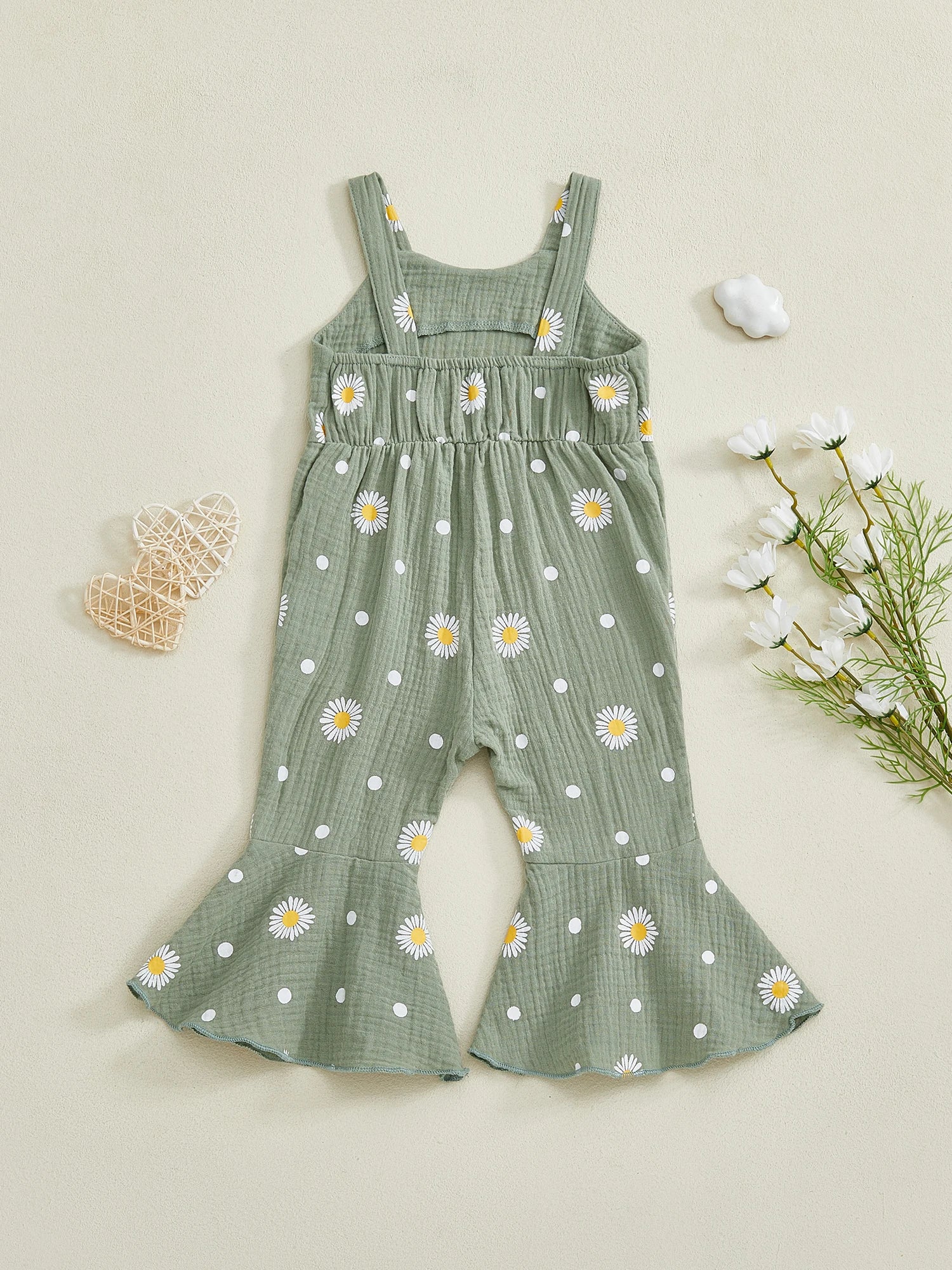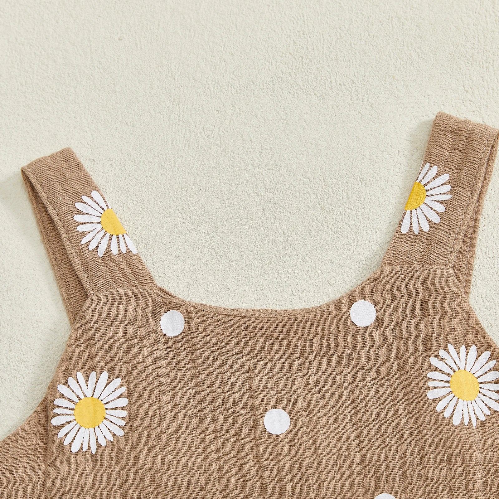 Baby Toddler Girls Summer Overalls Infants Sleeveless Daisy Floral Print Suspender Flared Pants