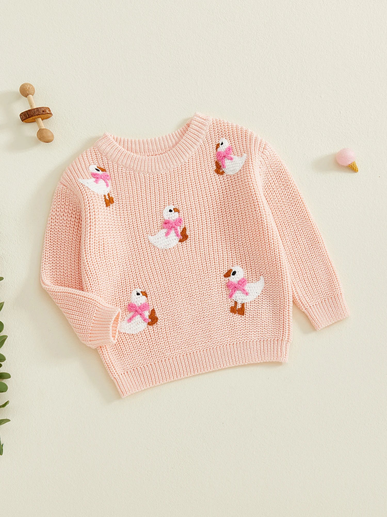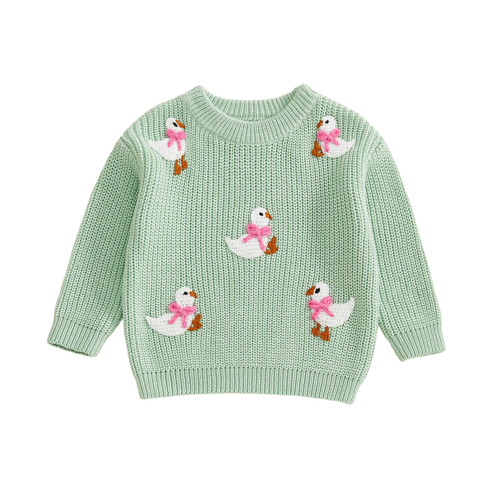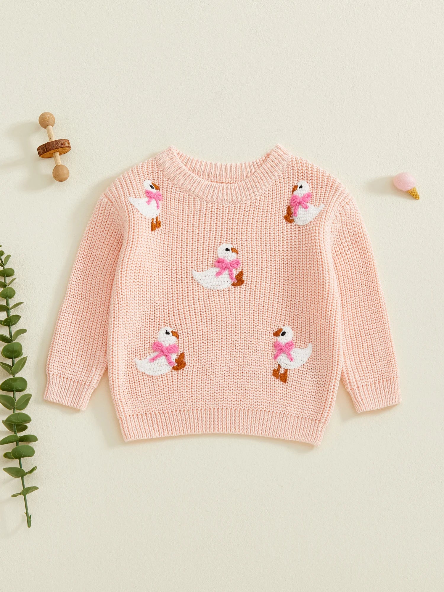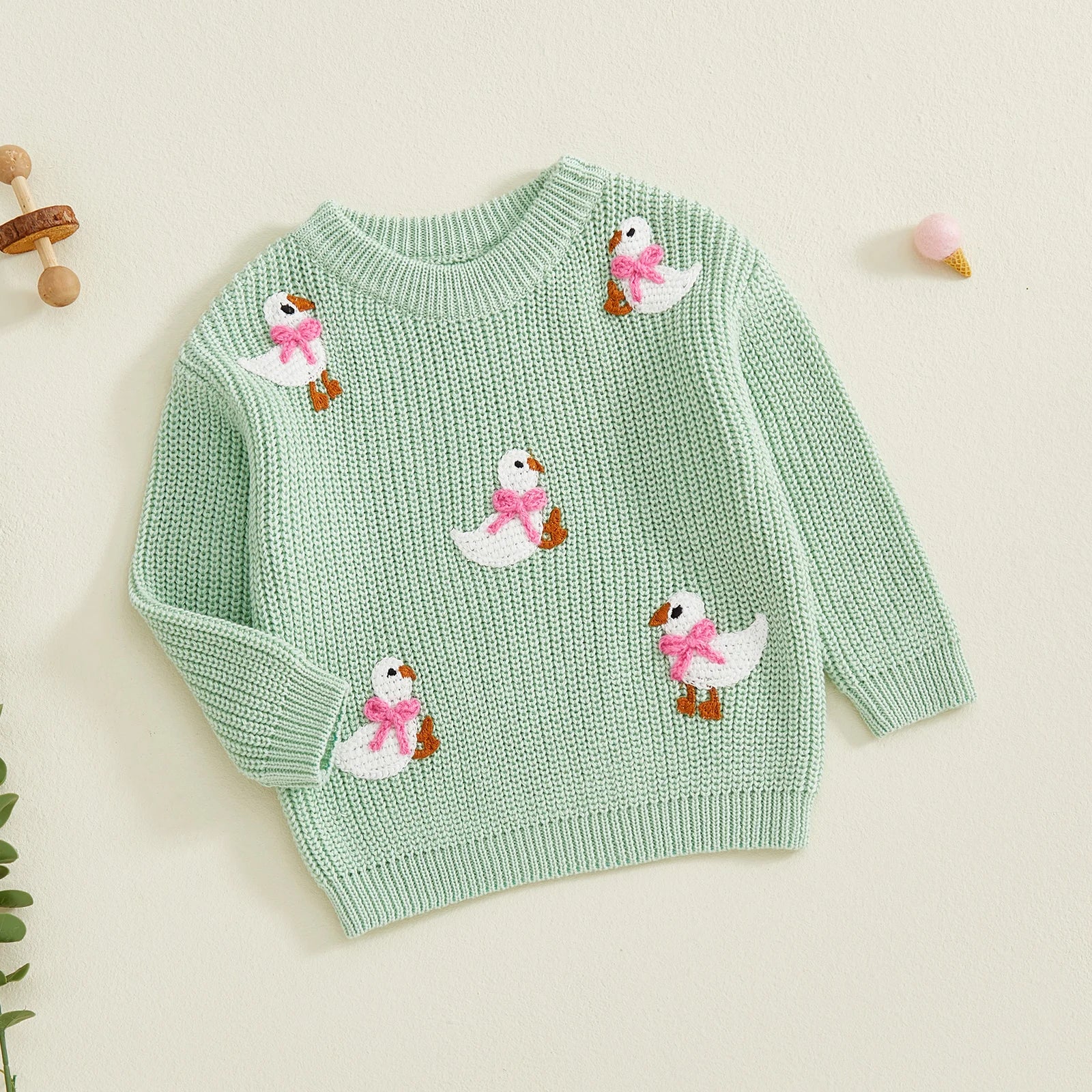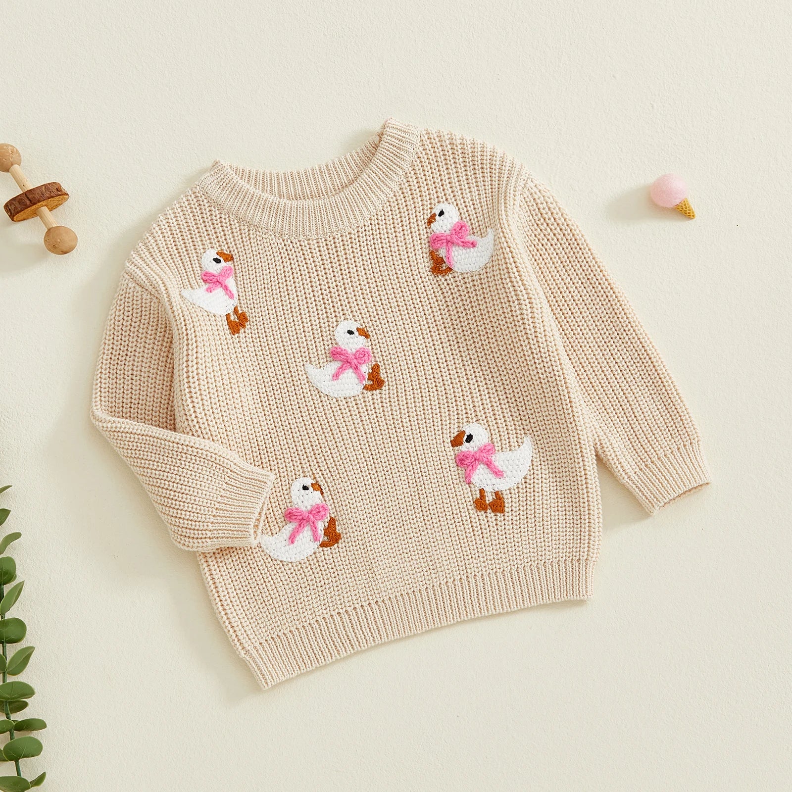 Baby Toddler Girls Sweater Long Sleeve Crew Neck Cute Duck Soft Warm Winter Sweater Clothes