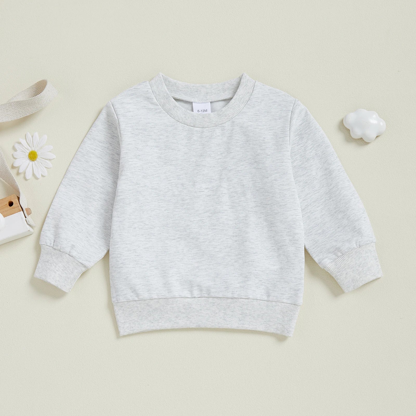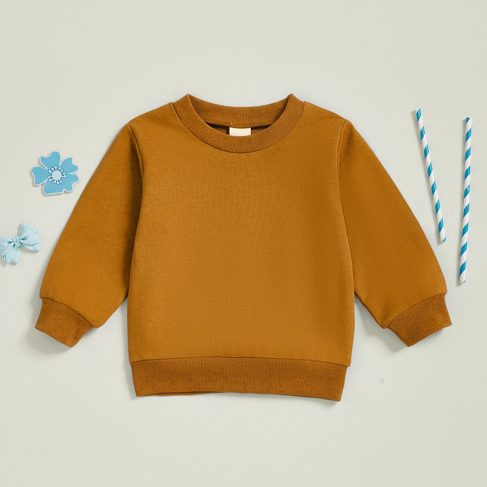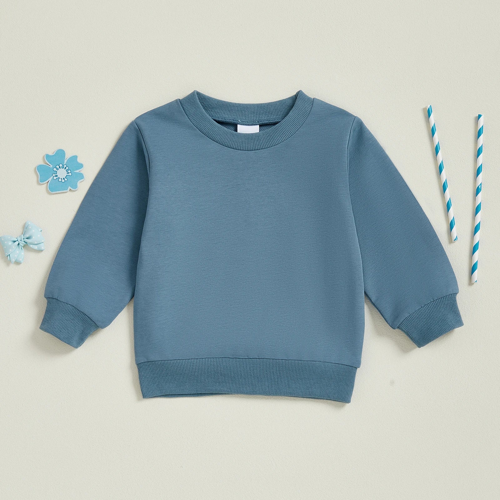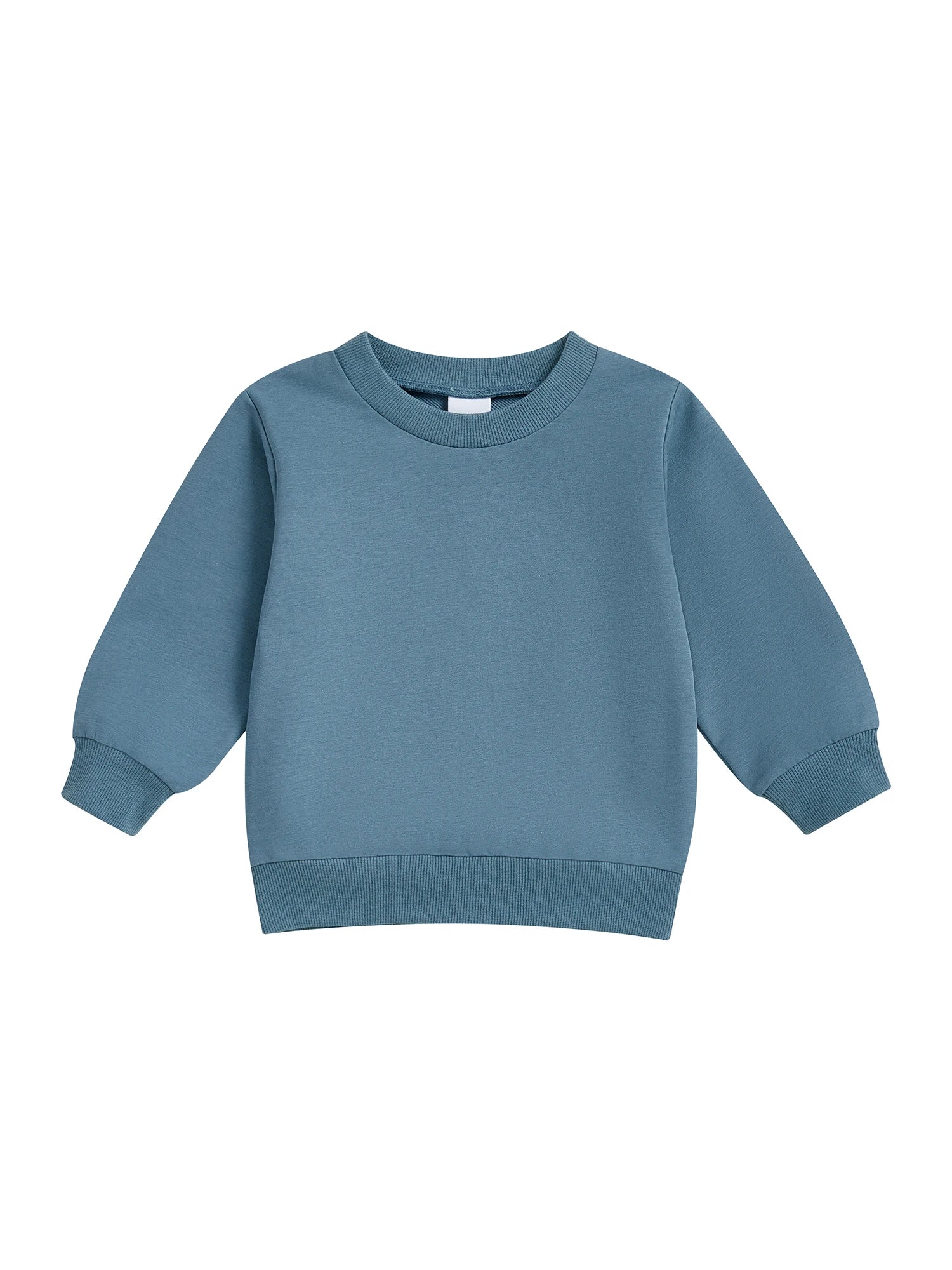 Baby Toddler Kids Boy Girl Solid Color Long Sleeve Round Neck Pullover Loose Top