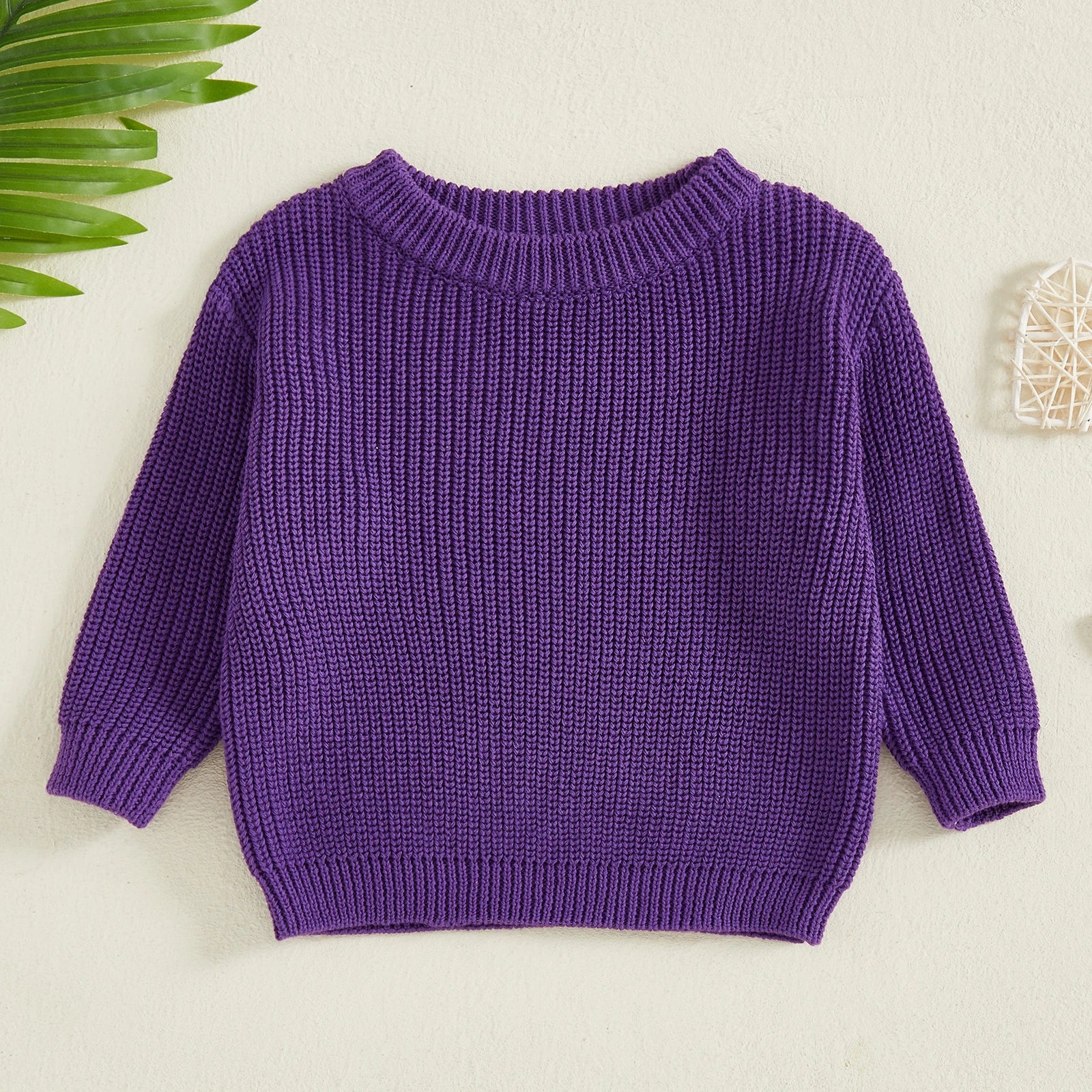 Baby Toddler Kids Girl Boy Knitted Long Sleeve Sweater Solid Loose Pullover Casual Tops Children Knitwear Clothes