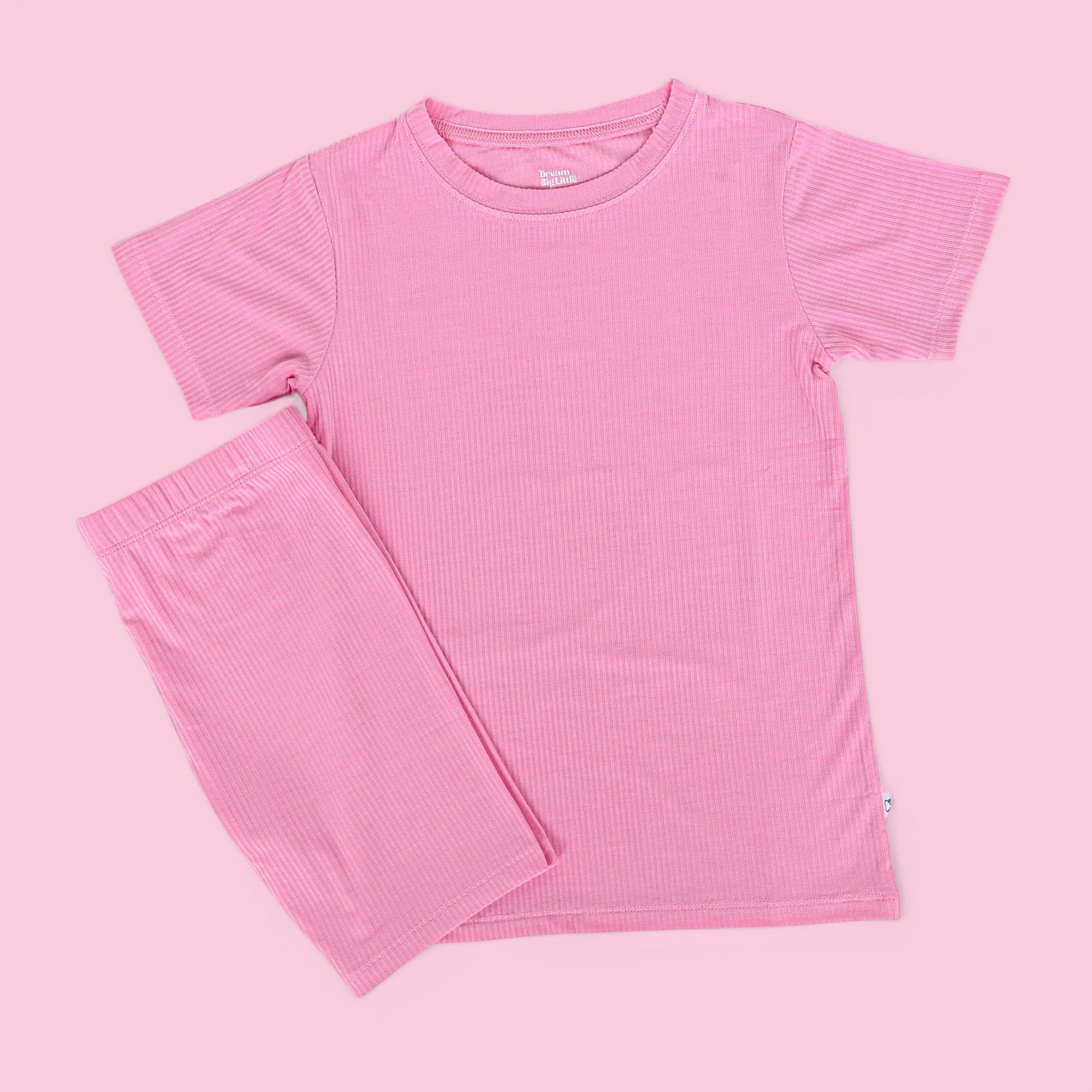 Embrace the light, fresh, and playful vibe of spring with our Bella Pink Dream Short Set. This soft and inviting shade of Bella Pink, a gentle and warm blush with a hint of peach, captures the essence of a blooming garden on a perfect spring day. Designed with your child’s comfort in mind, the set is crafted from breathable bamboo viscose, ensuring a silky-smooth feel against the skin, ideal for those cozy nights and sunny mornings.