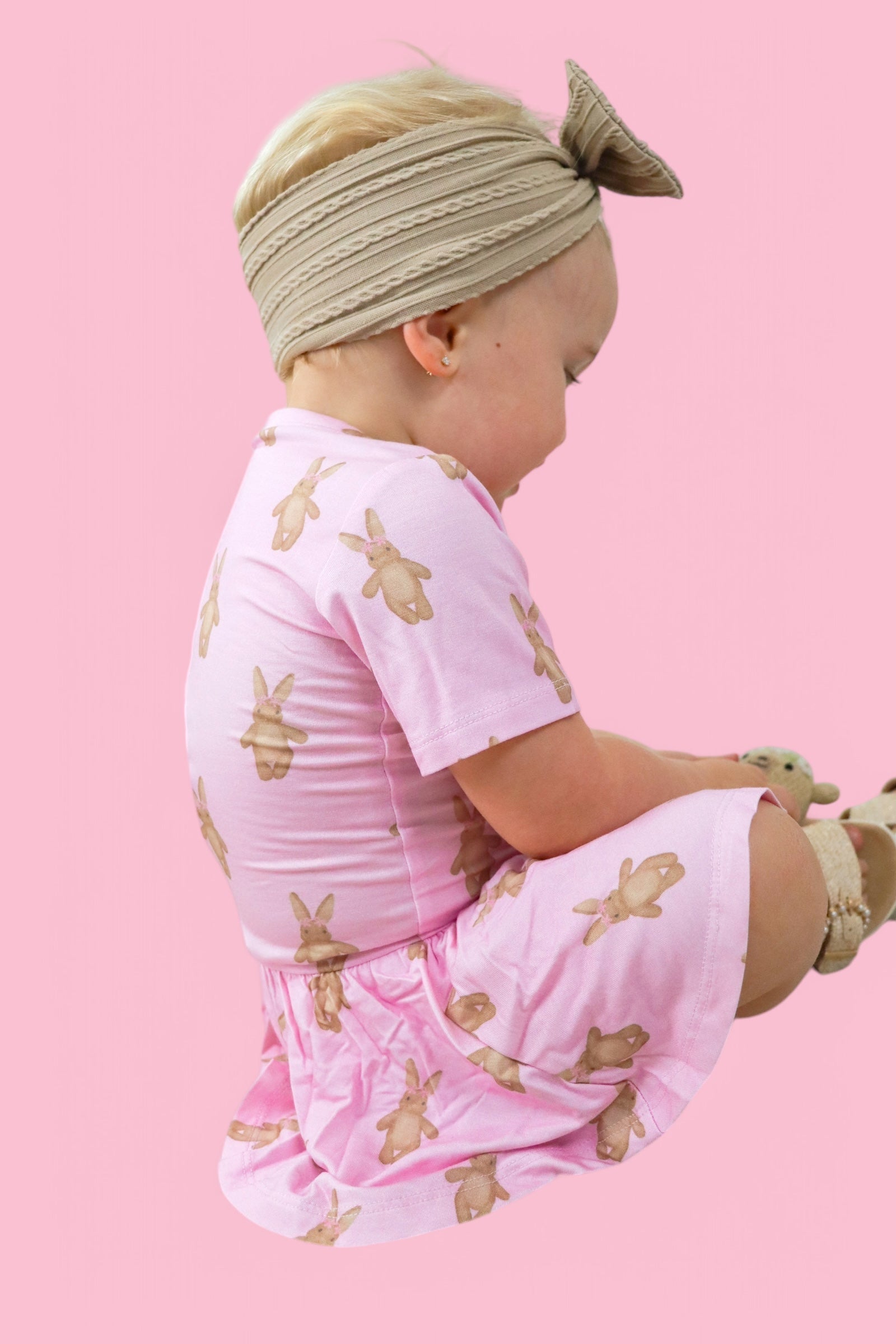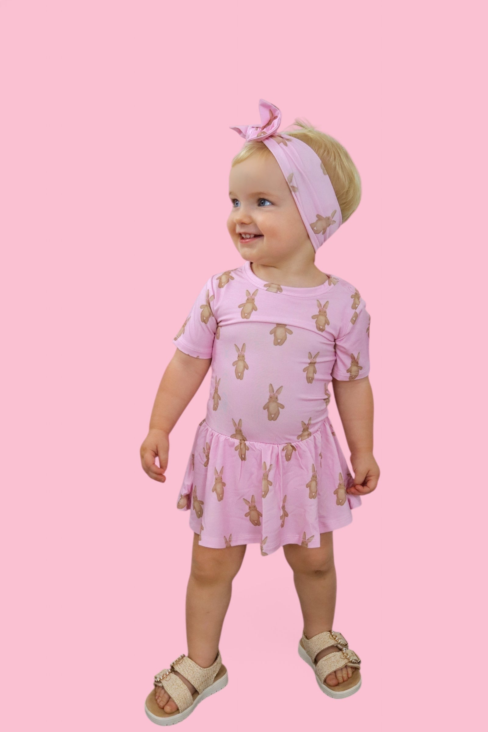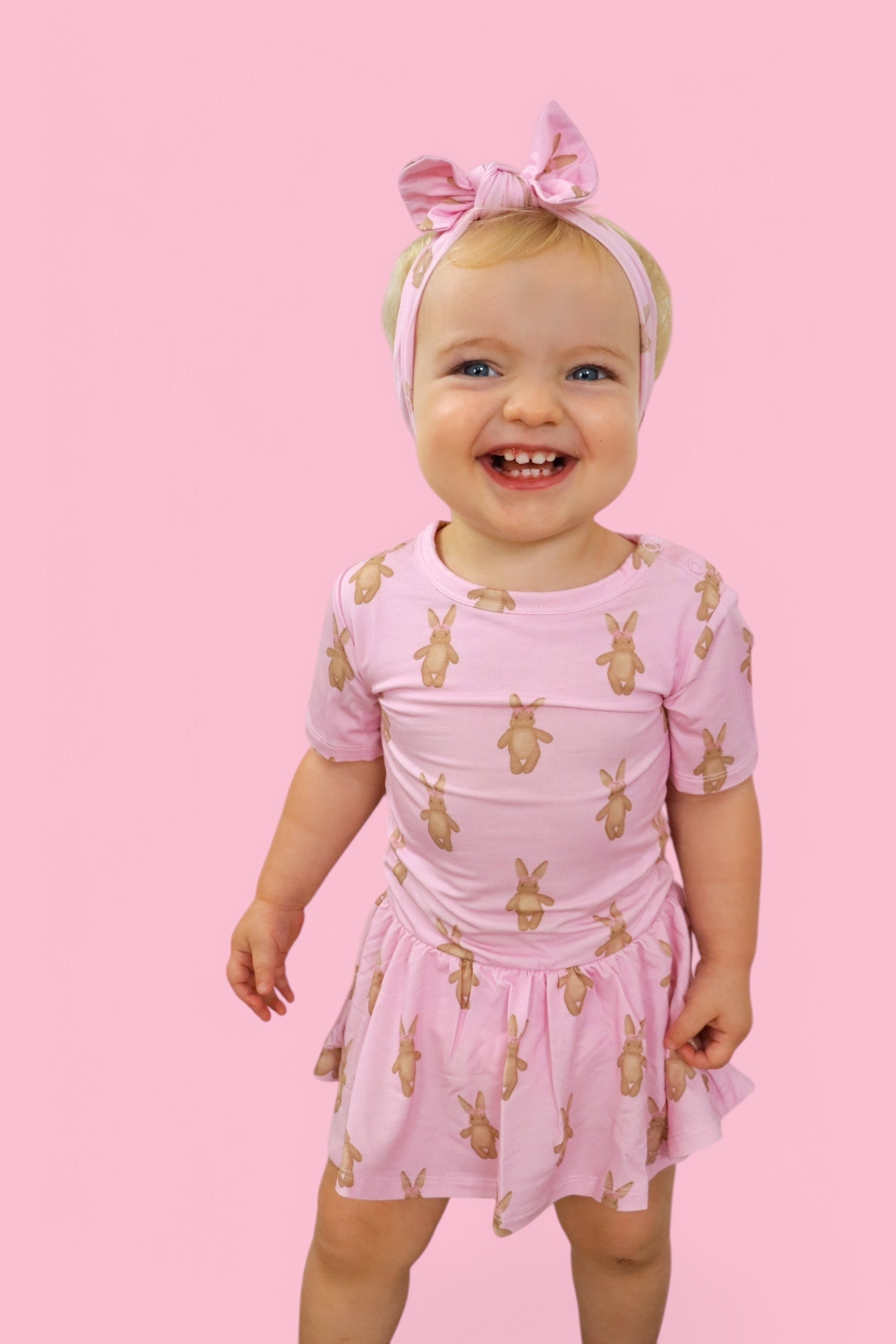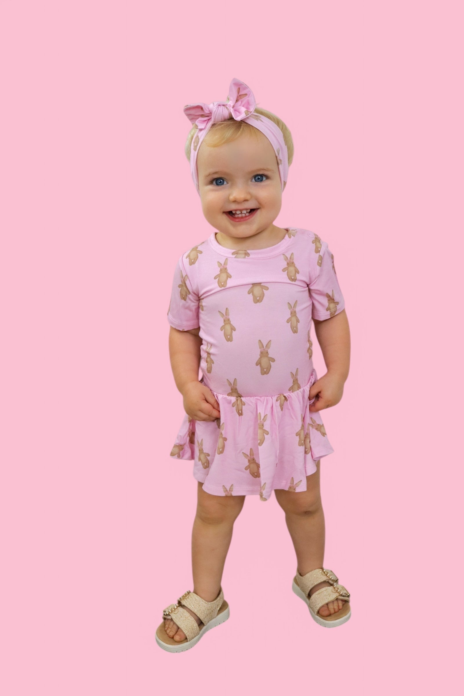 Hippity hop, Easter’s on its way—and so is the sweetest outfit for your little bunny! The Blushin' Bunnies Dream Bodysuit Dress is the perfect way to celebrate springtime cuddles and Easter magic. With an enchanting pattern of rosy-cheeked bunnies on a soft pastel pink background, this dress is as sweet as a basket full of treats!