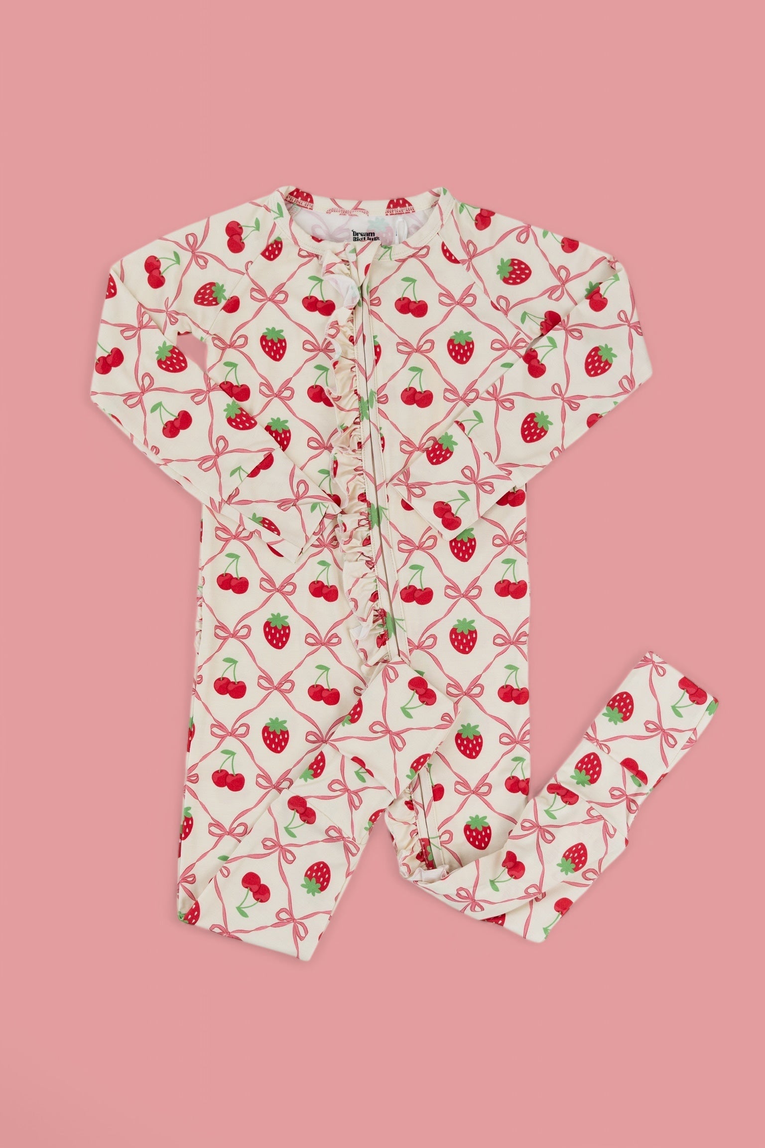 CHERRY BOW BERRY DREAM RUFFLE ZIPPER ROMPER