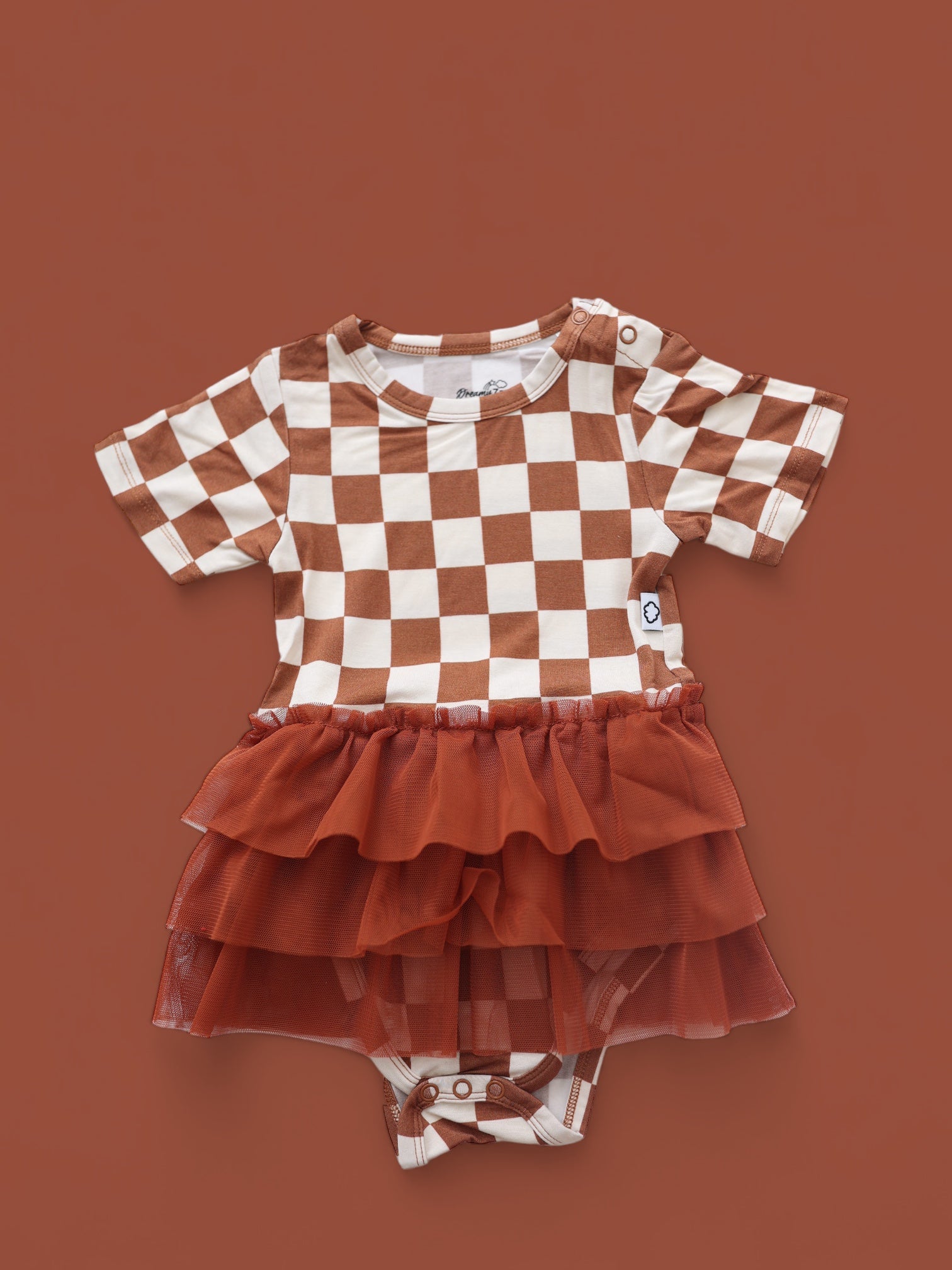 COPPER CHECKERS DREAM TUTU BODYSUIT DRESS