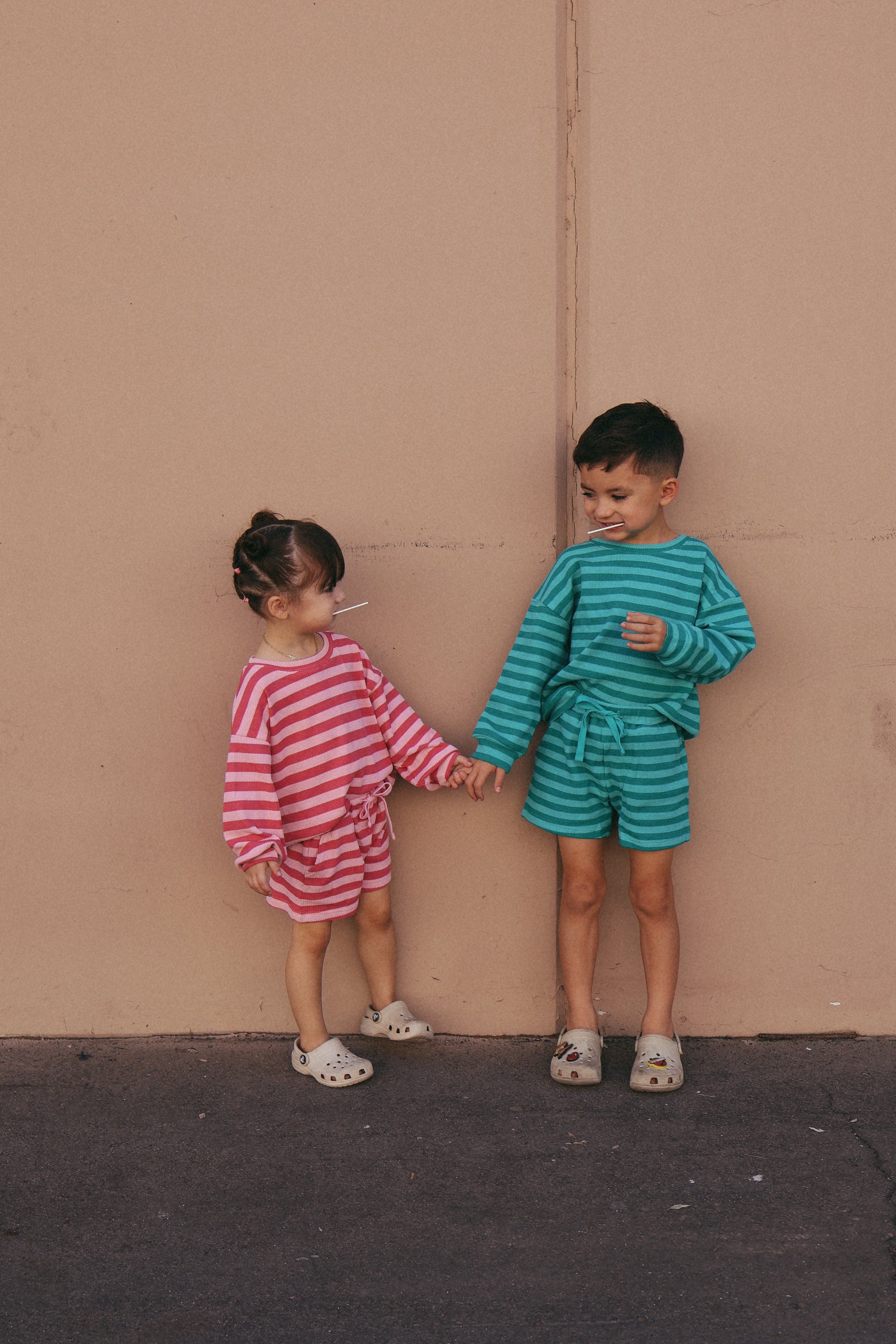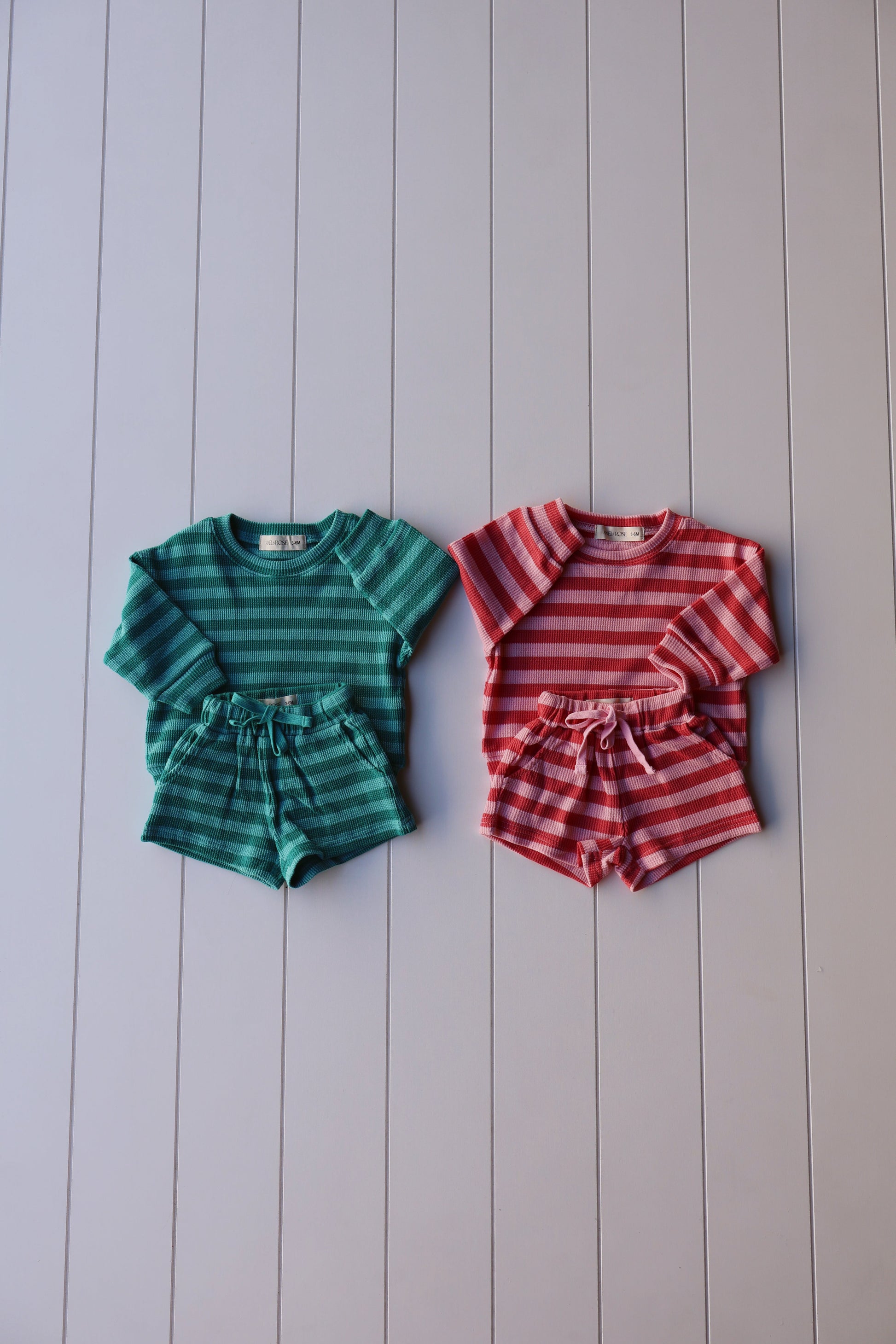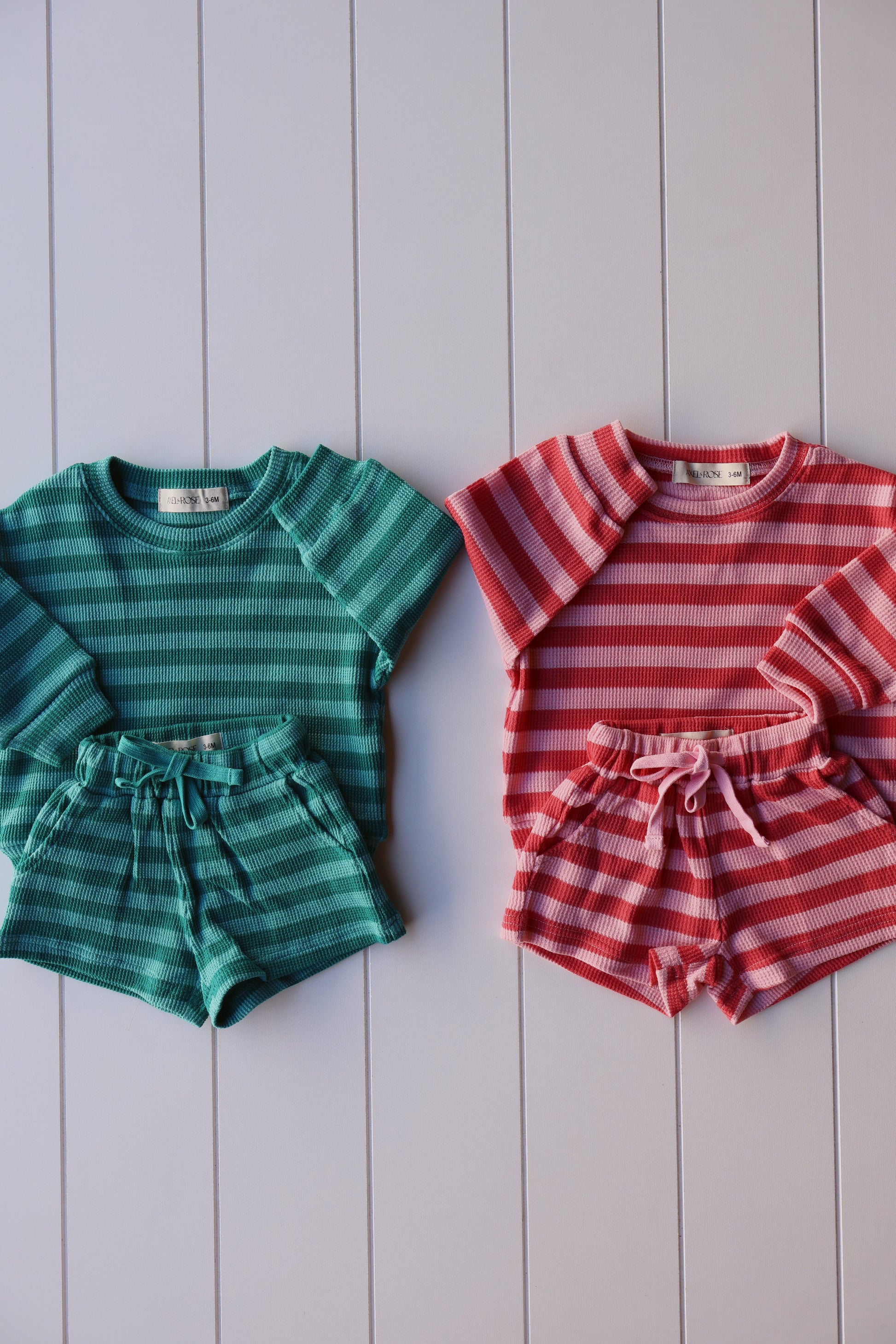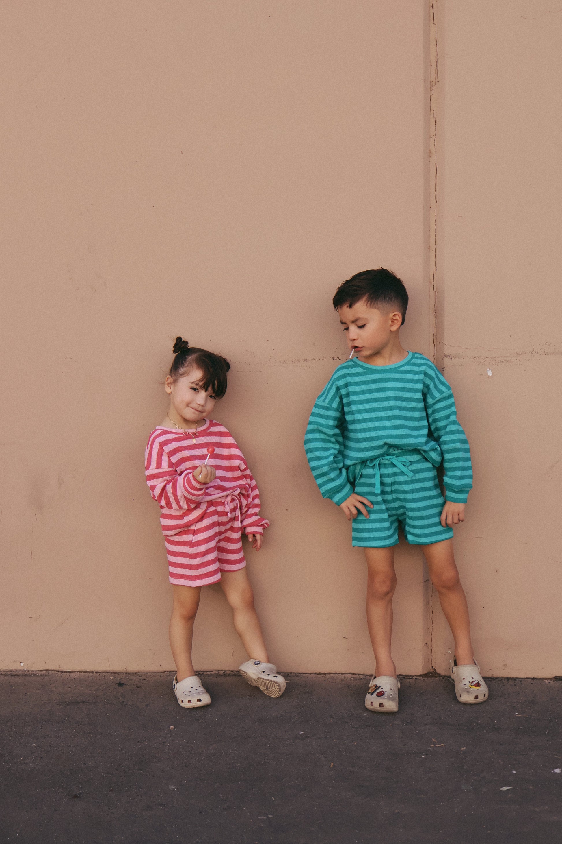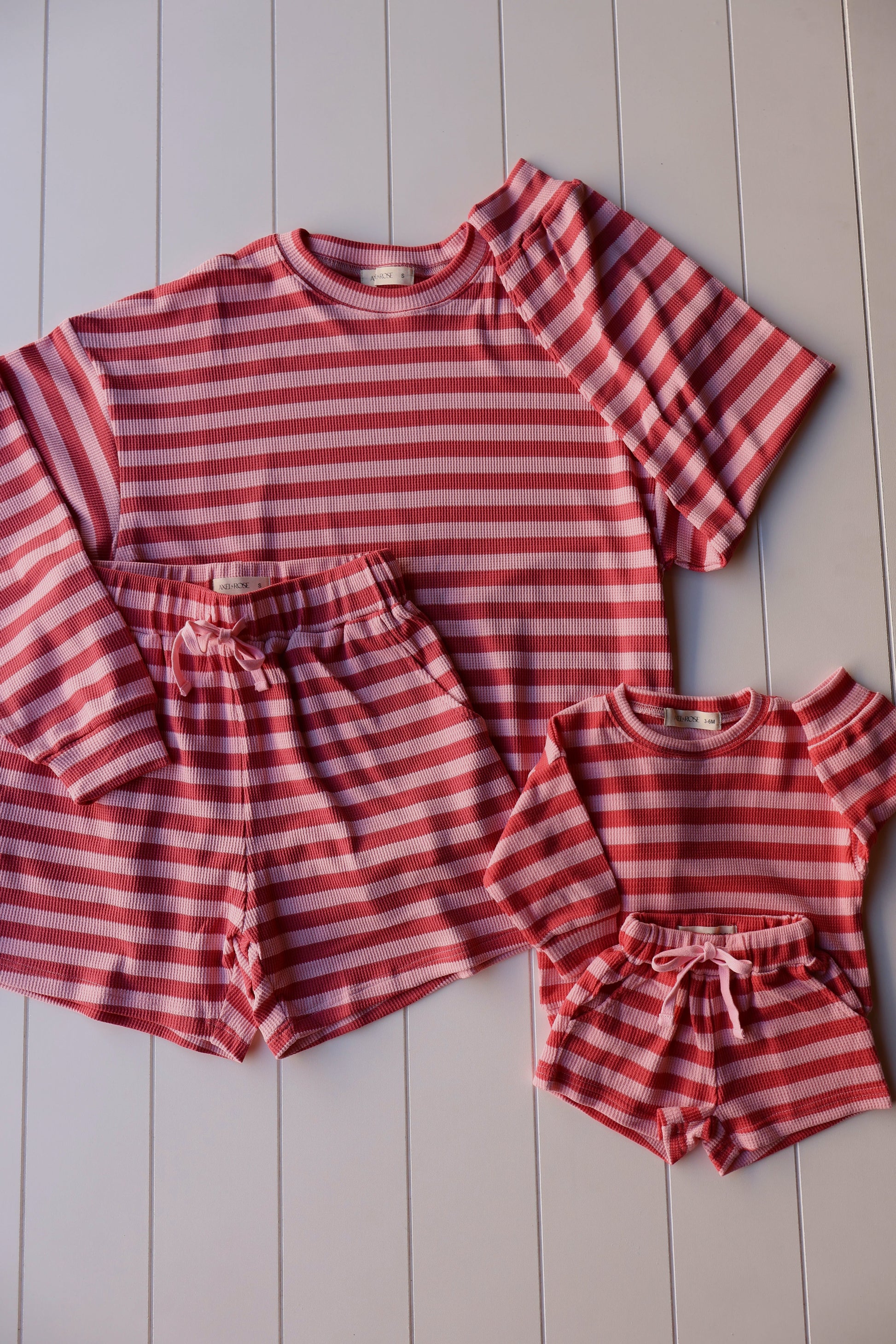 Stay cozy and stylish this fall with our Fall Cotton Candy Waffle Set. This set includes a long sleeve top with shorts, complete with pockets and an adjustable drawstring for the perfect fit. Made with 97% cotton and 3% spandex, it offers comfortable stretch and is true to size with a natural oversized fit. Get a matching set for you and your mom for a fun coordinating look.