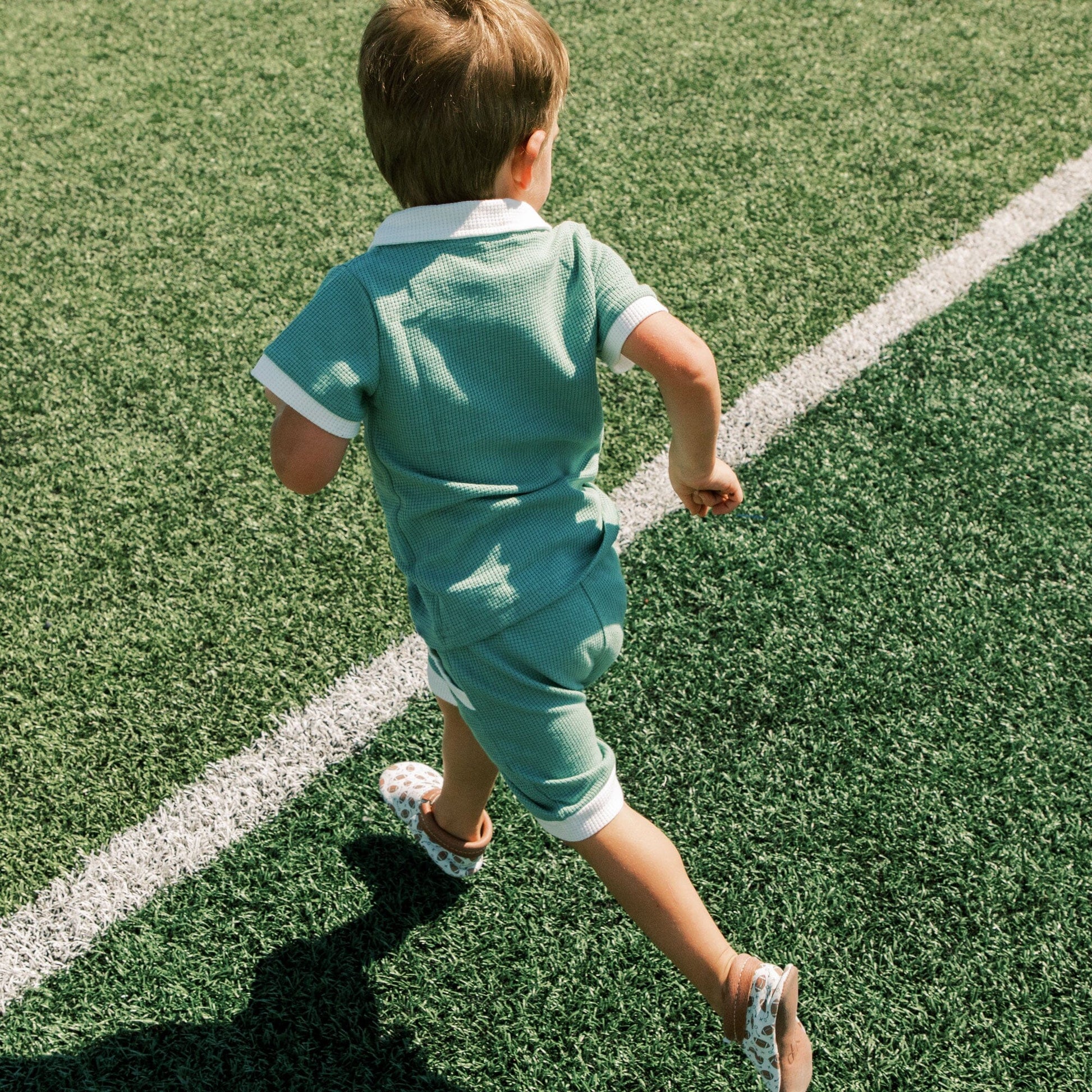 Made by hand from premium leather, these shoes feature a classic Moccasin design with a fringeless collar. With an elasticized ankle for easy wear, they guarantee gentle support and healthy foot development for your little one.