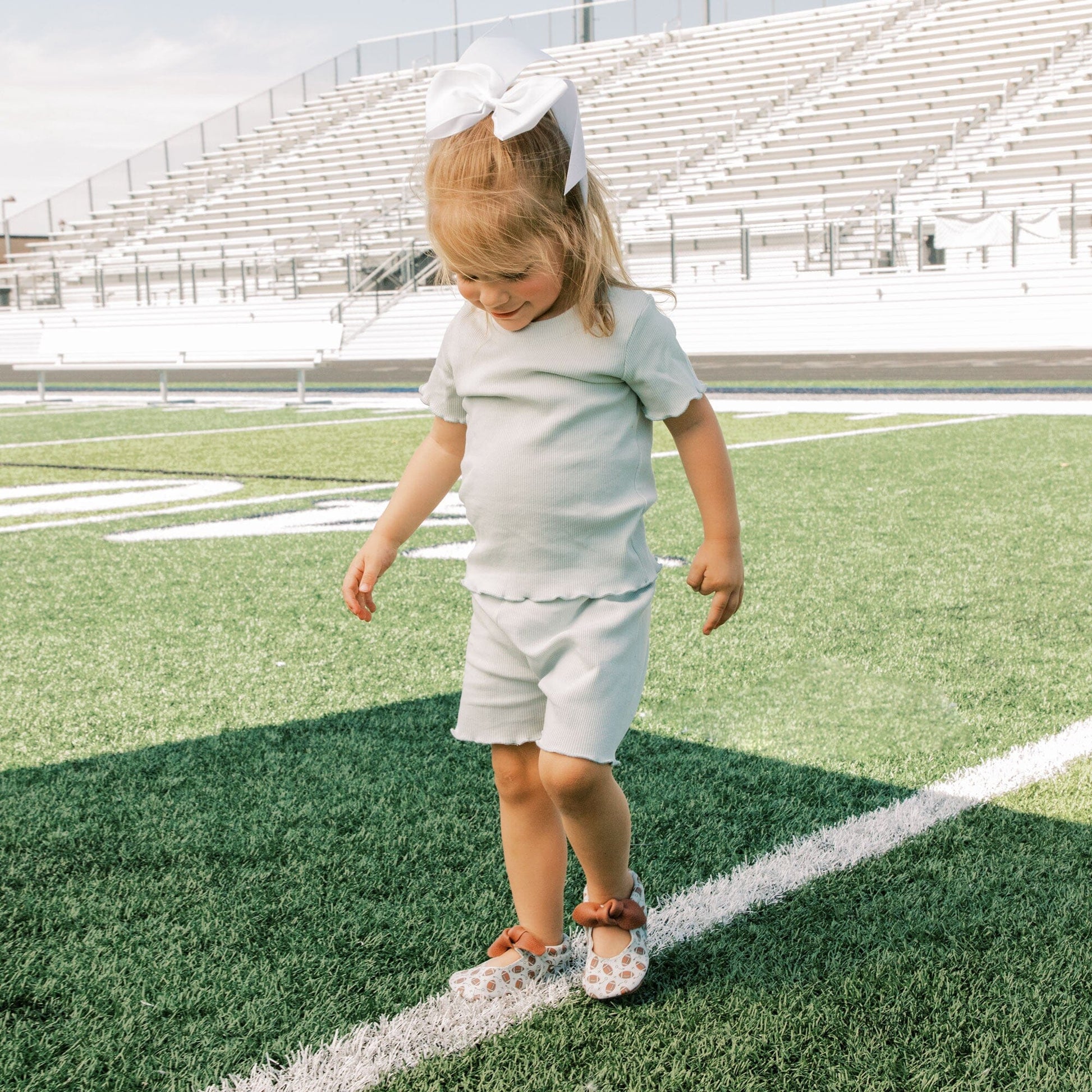 Made by hand from premium leather, these shoes feature a knotted bow detail perfect for both casual outings and special occasions. With an elasticized ankle for easy wear, they guarantee gentle support and healthy foot development for your little one.