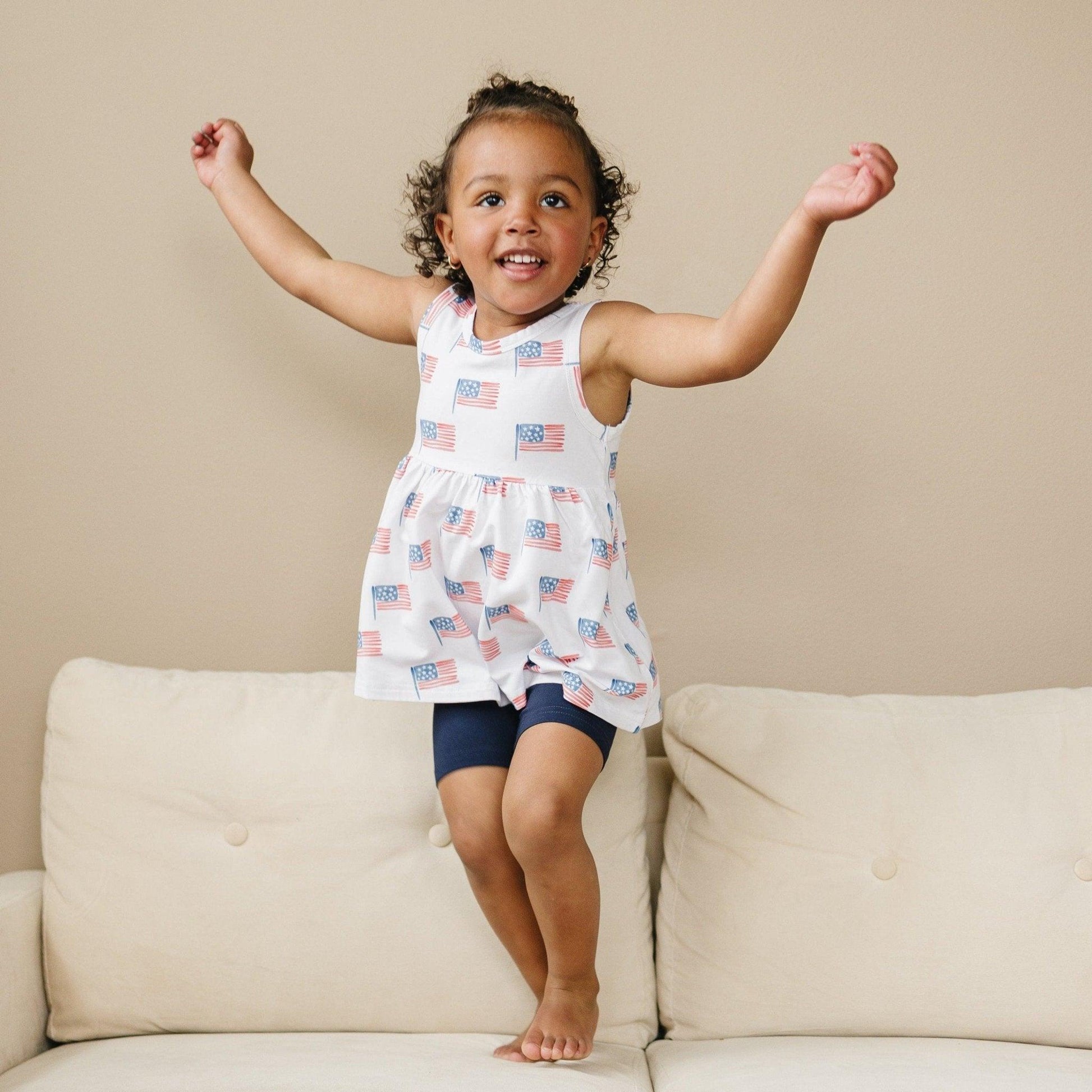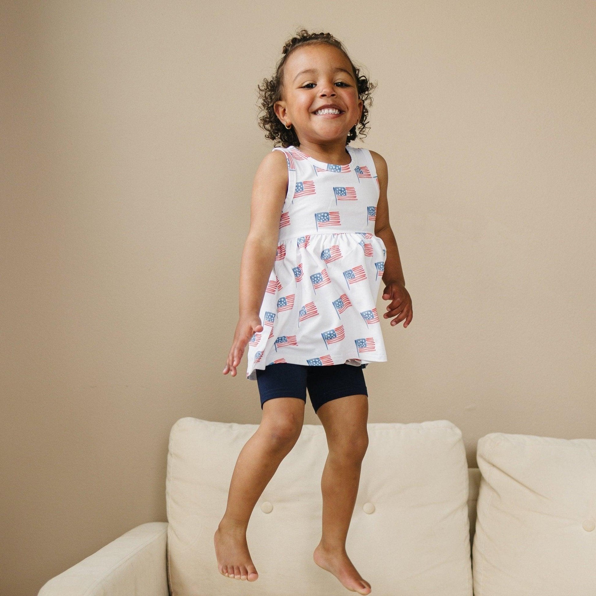 Flag Print Bamboo Peplum Top & Bike Shorts