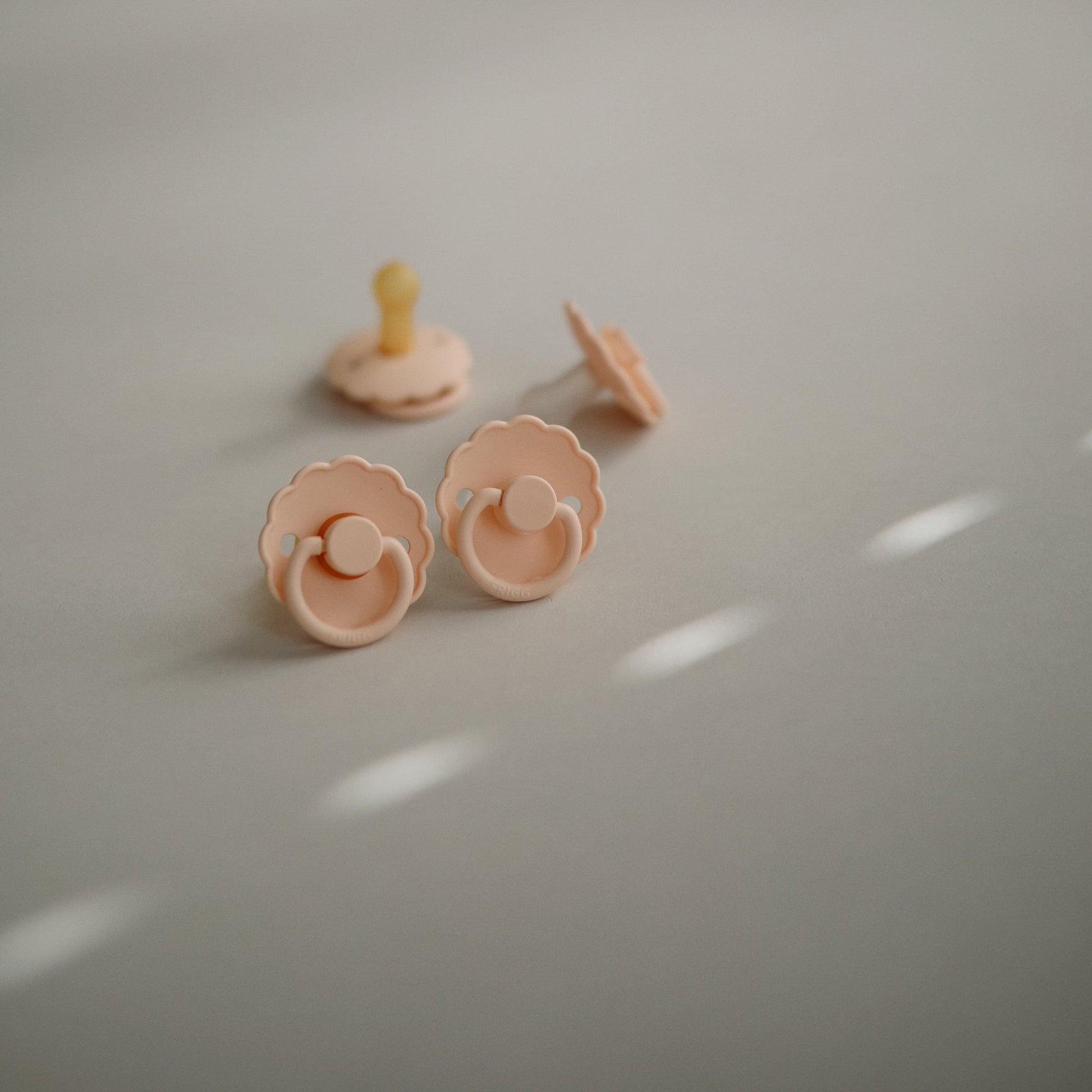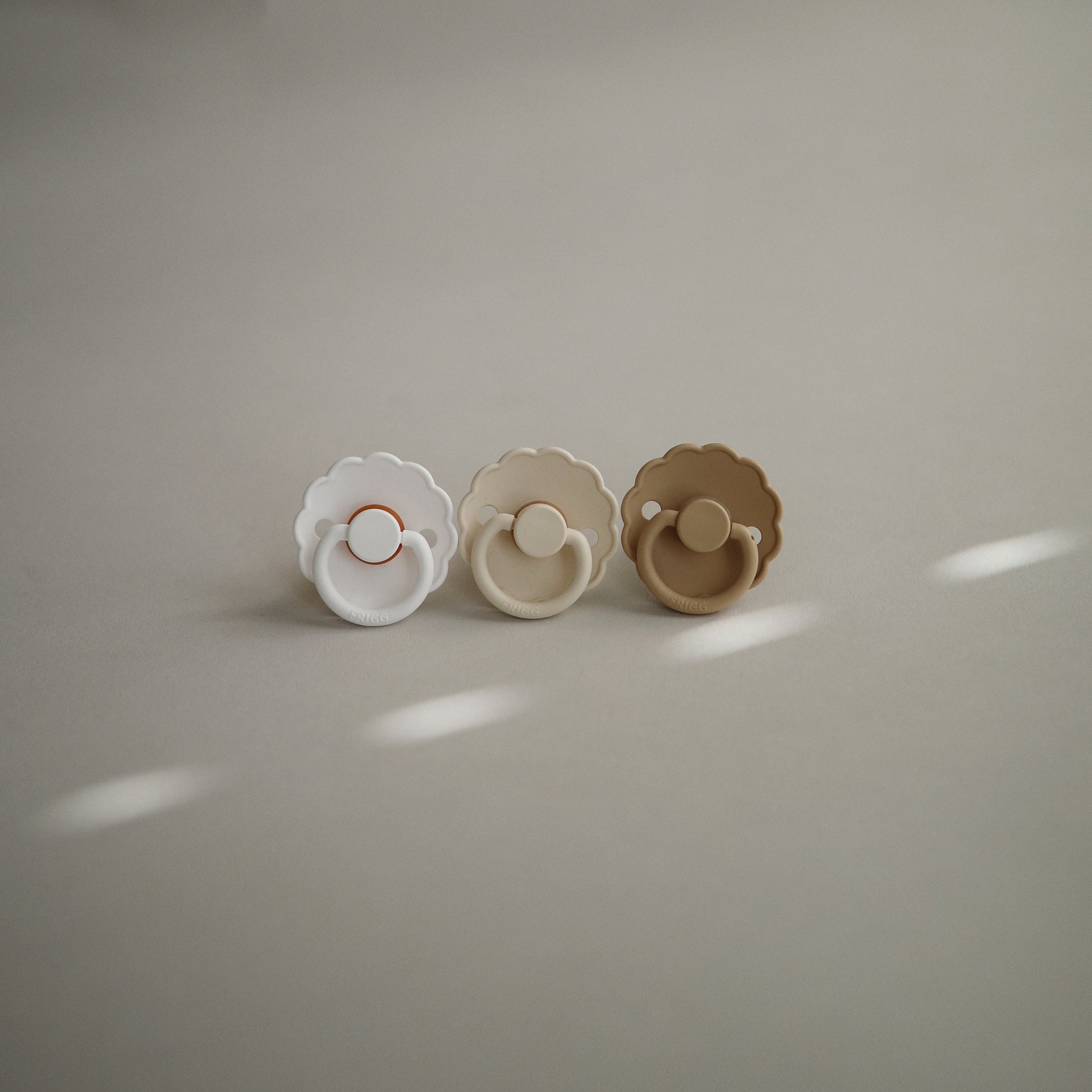 What's Included: 1 set of 2x FRIGG Daisy silicone pacifiers.