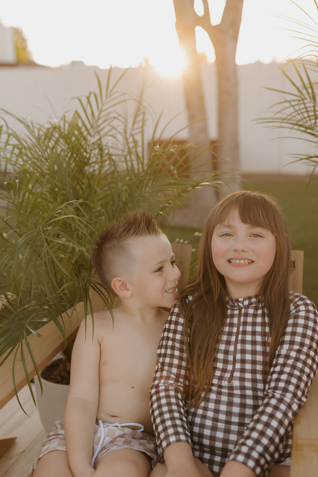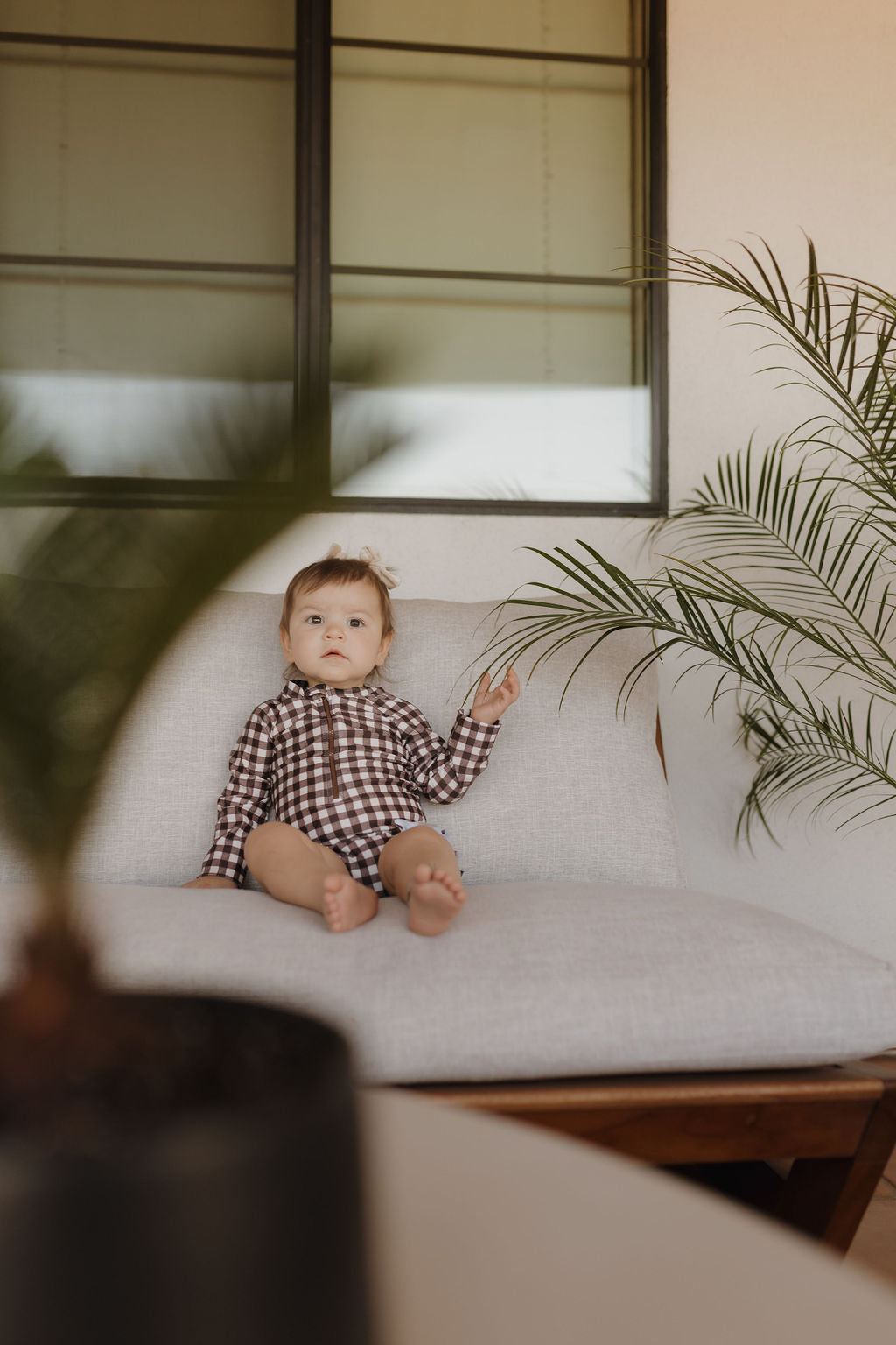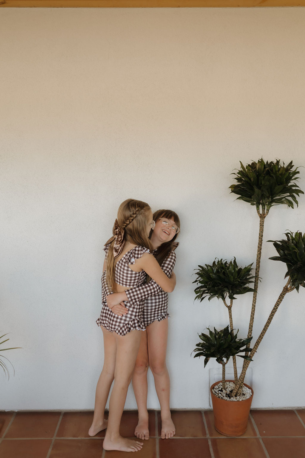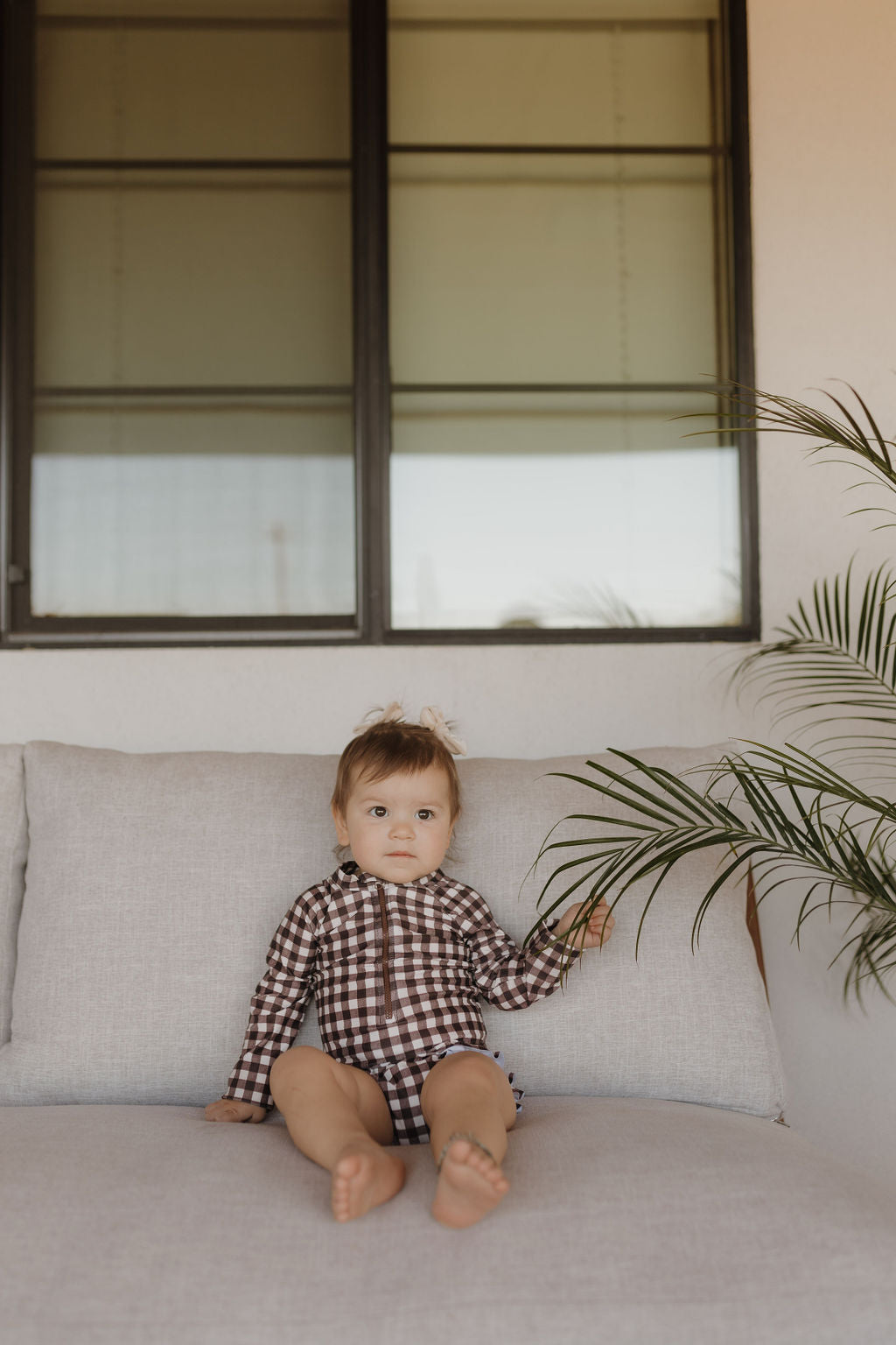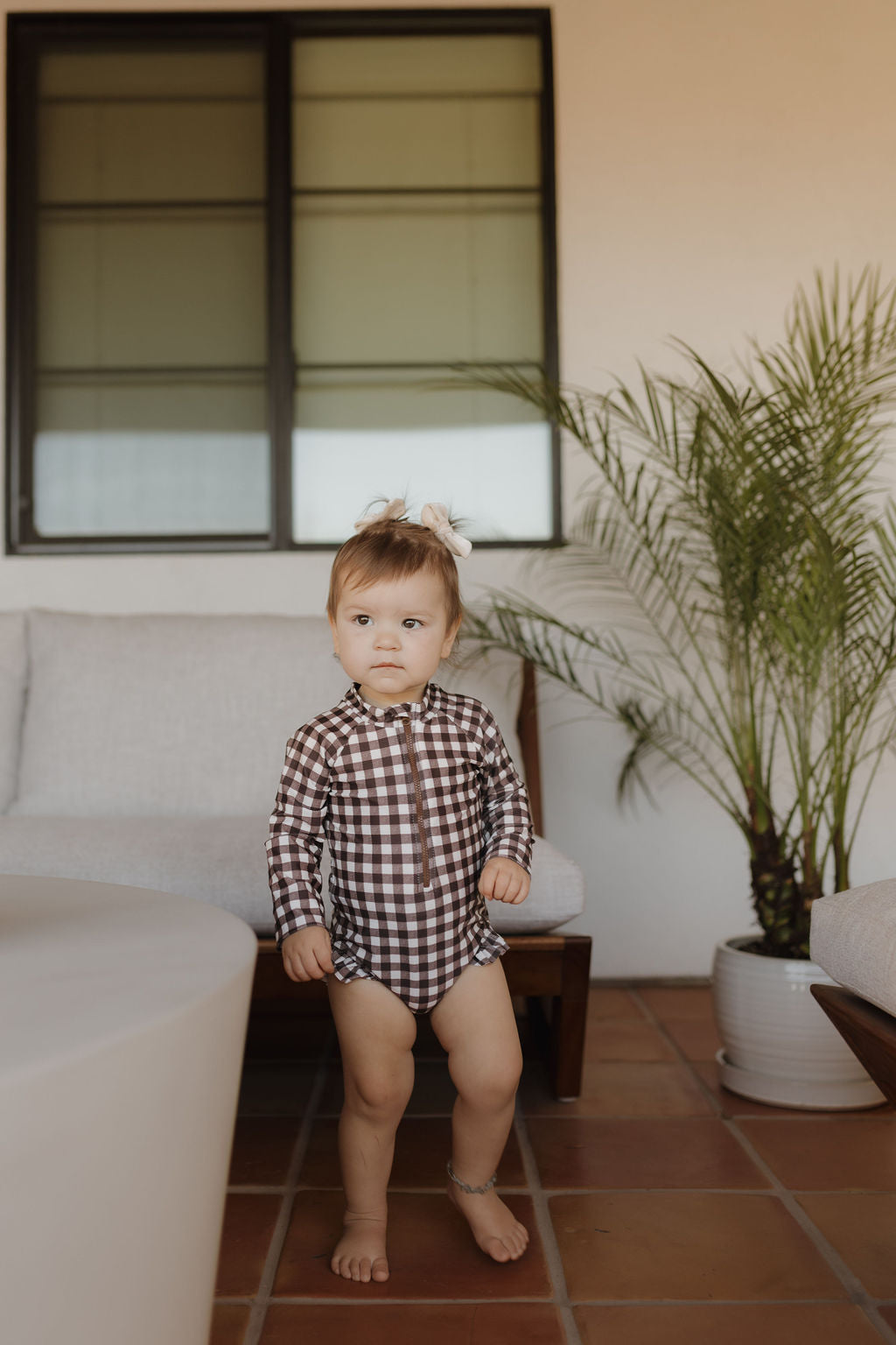 Girls Long Sleeve Swimsuit | Chocolate Gingham