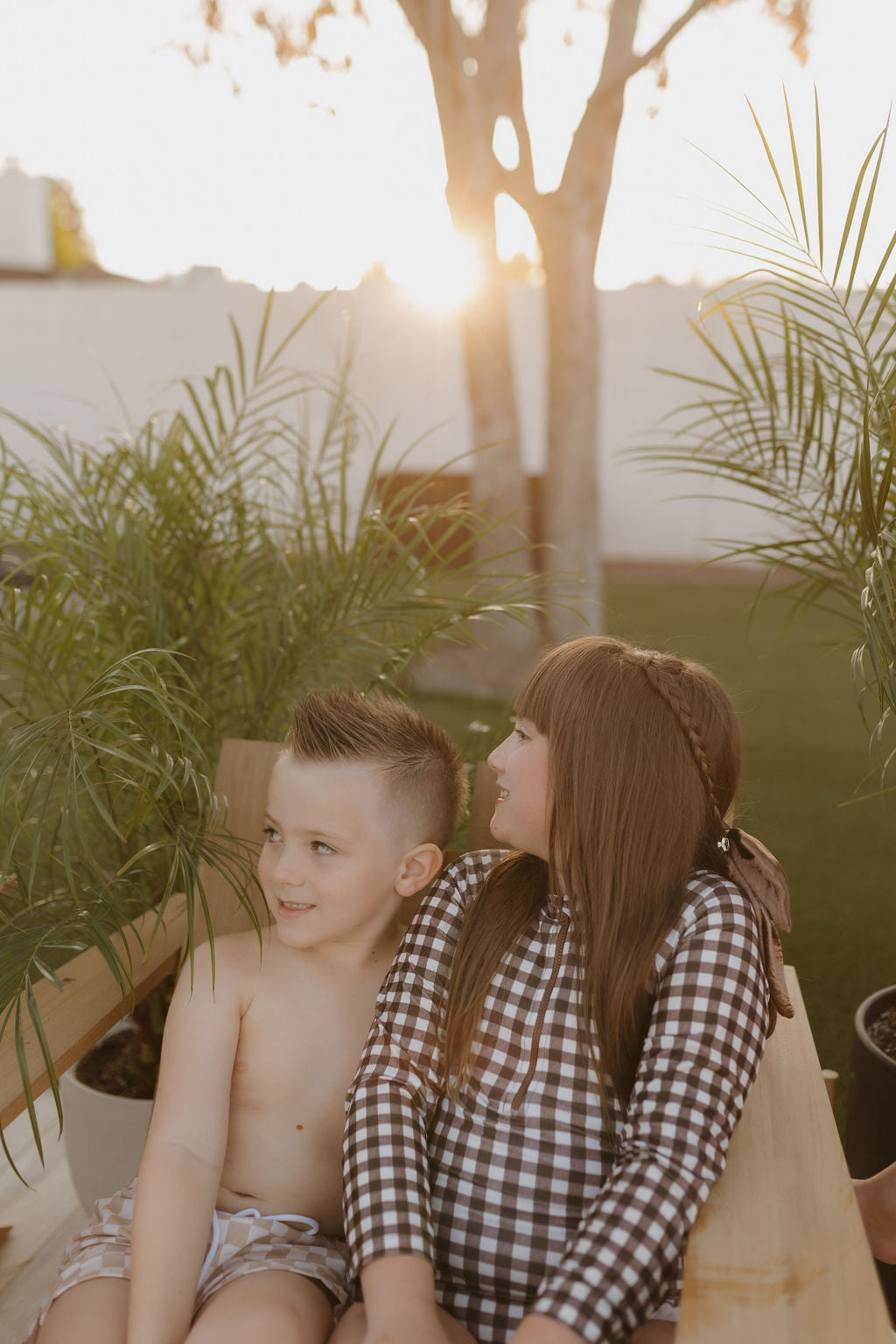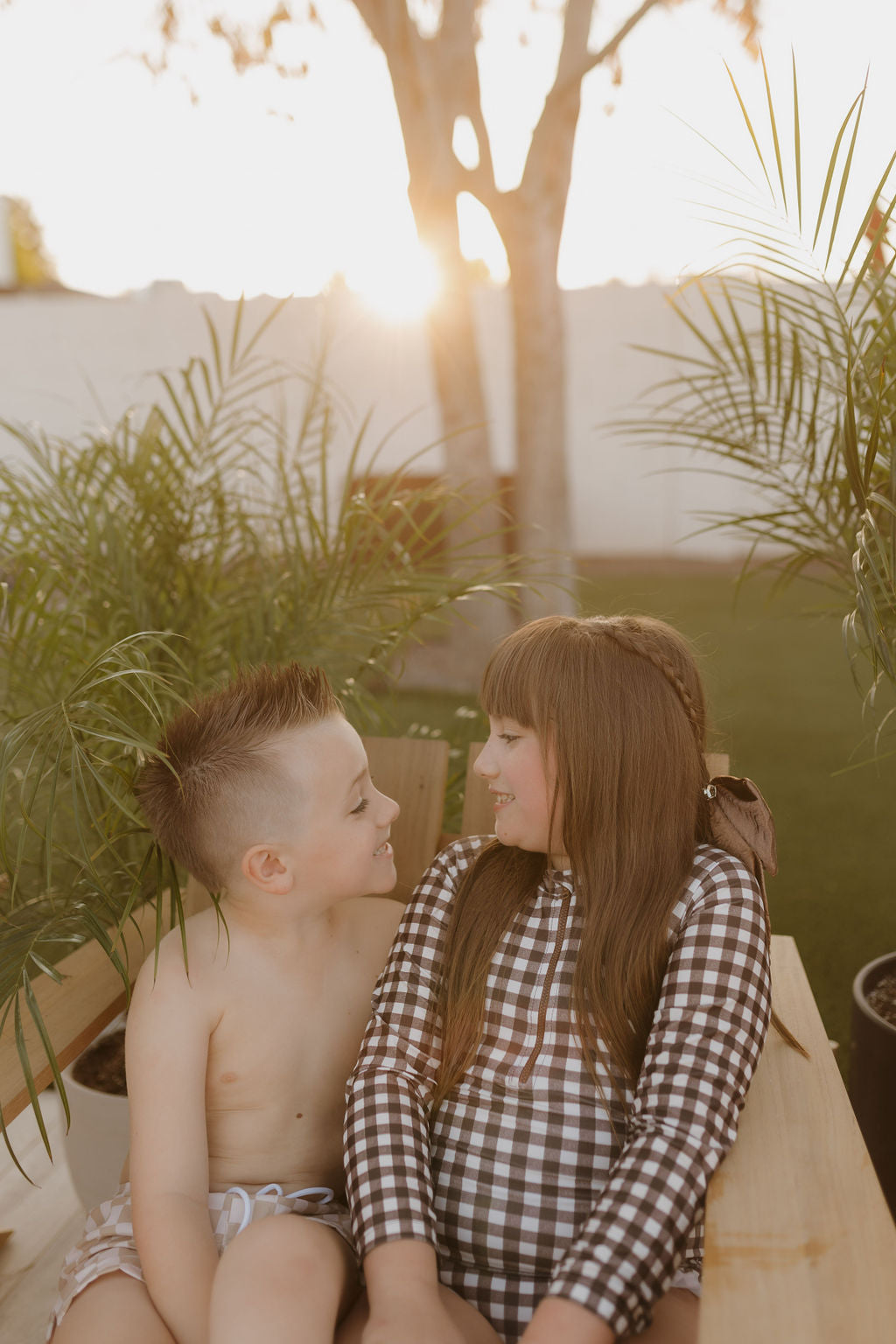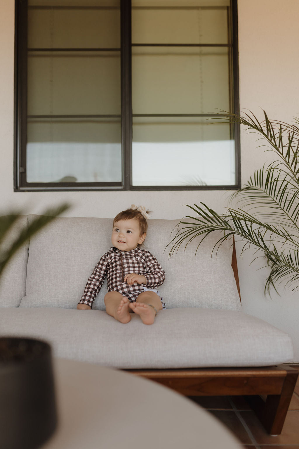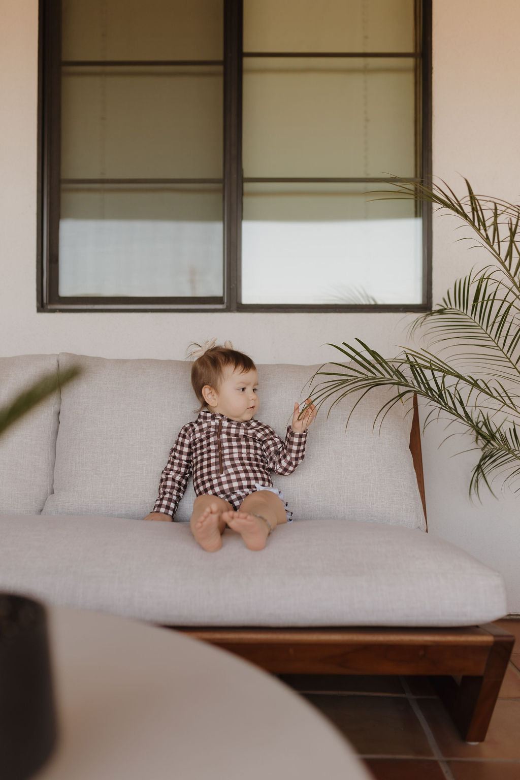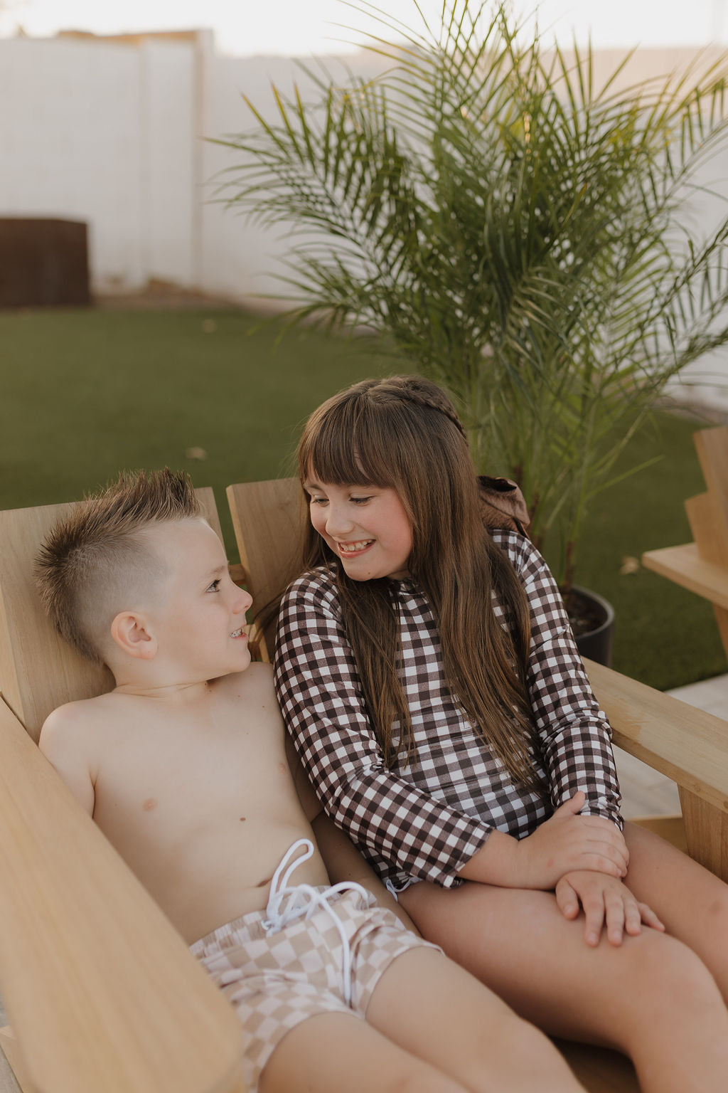Girls Long Sleeve Swimsuit | Chocolate Gingham