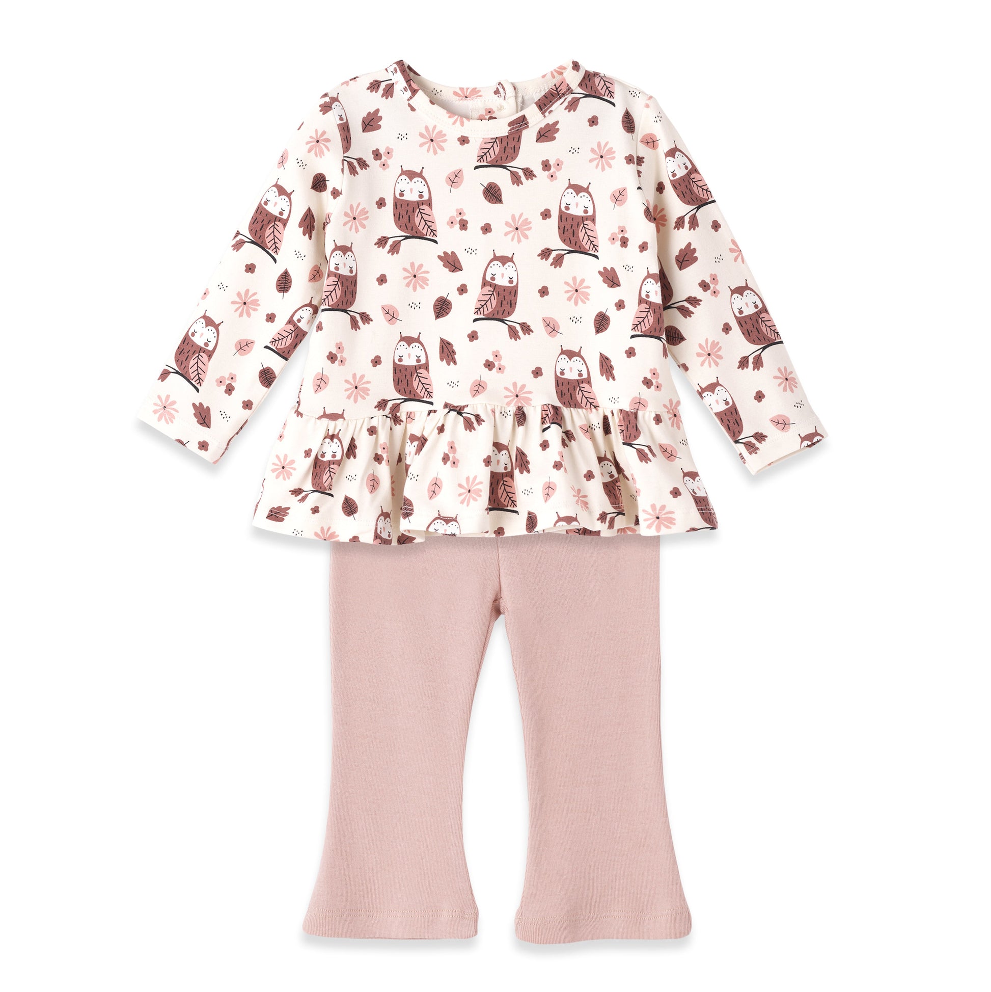 Owl-mazing comfort meets playful style in this set, crafted from breathable bamboo and soft cotton. Eco-friendly, hypoallergenic, and sweat-wicking, it keeps your little one cozy all day. The drop-waist top buttons in the back, while the flared leggings feature an elastic waist for easy dressing. Perfect for playtime or naptime! Machine wash warm, tumble dry low, and let the fun begin!