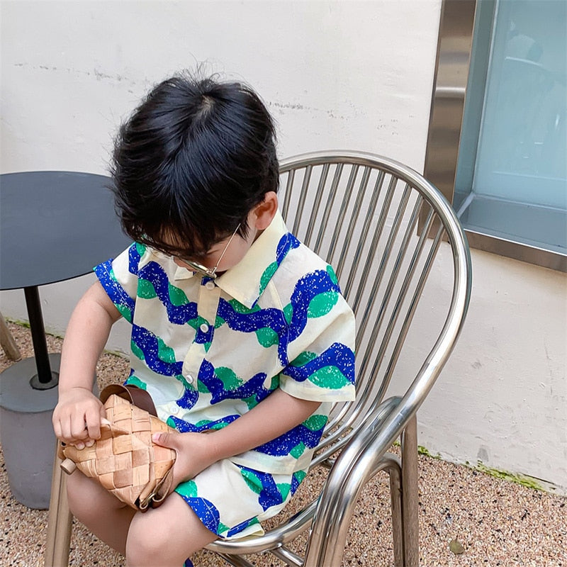 Short-sleeved Collared Shirt Shorts Lounge Set