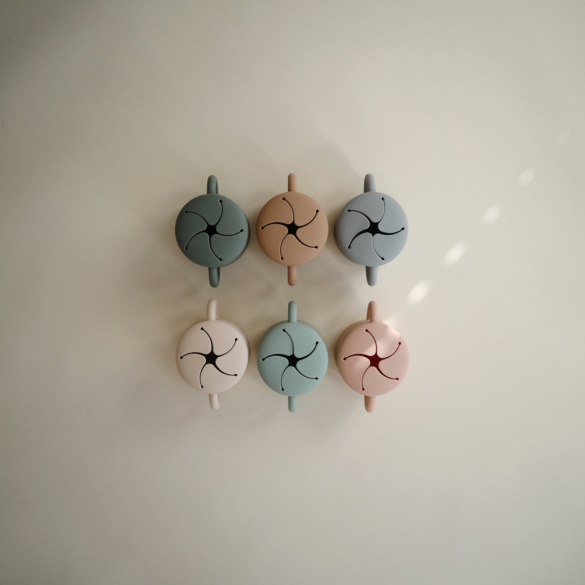 Designed with two small handles for an easy grip for little hands, our silicone snack cup is spill-proof for any baby to take on the go. The soft opening ensures baby's hands can slide easily in and out, while keeping food securely inside. This snack cup is a must-have for toddlers on the move.