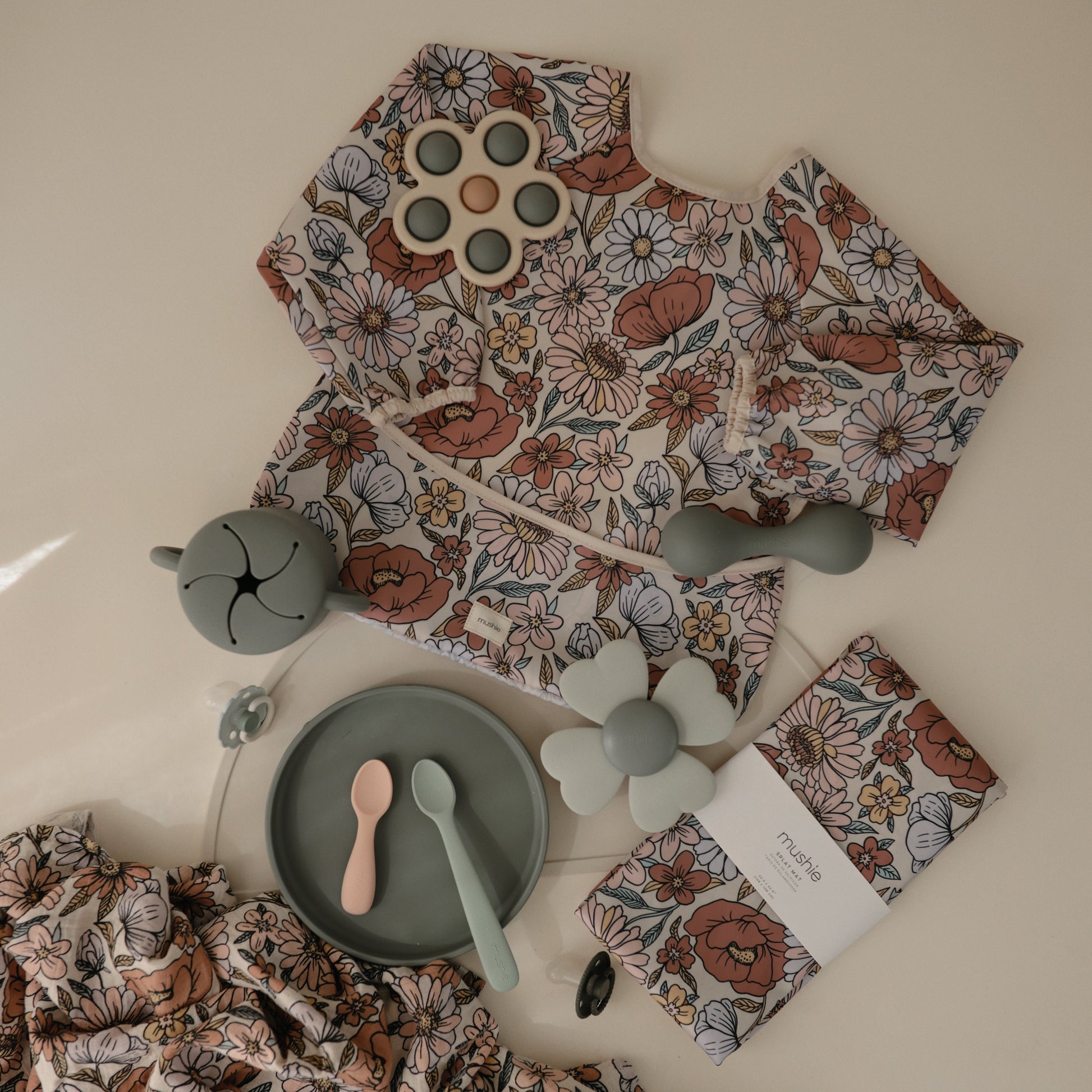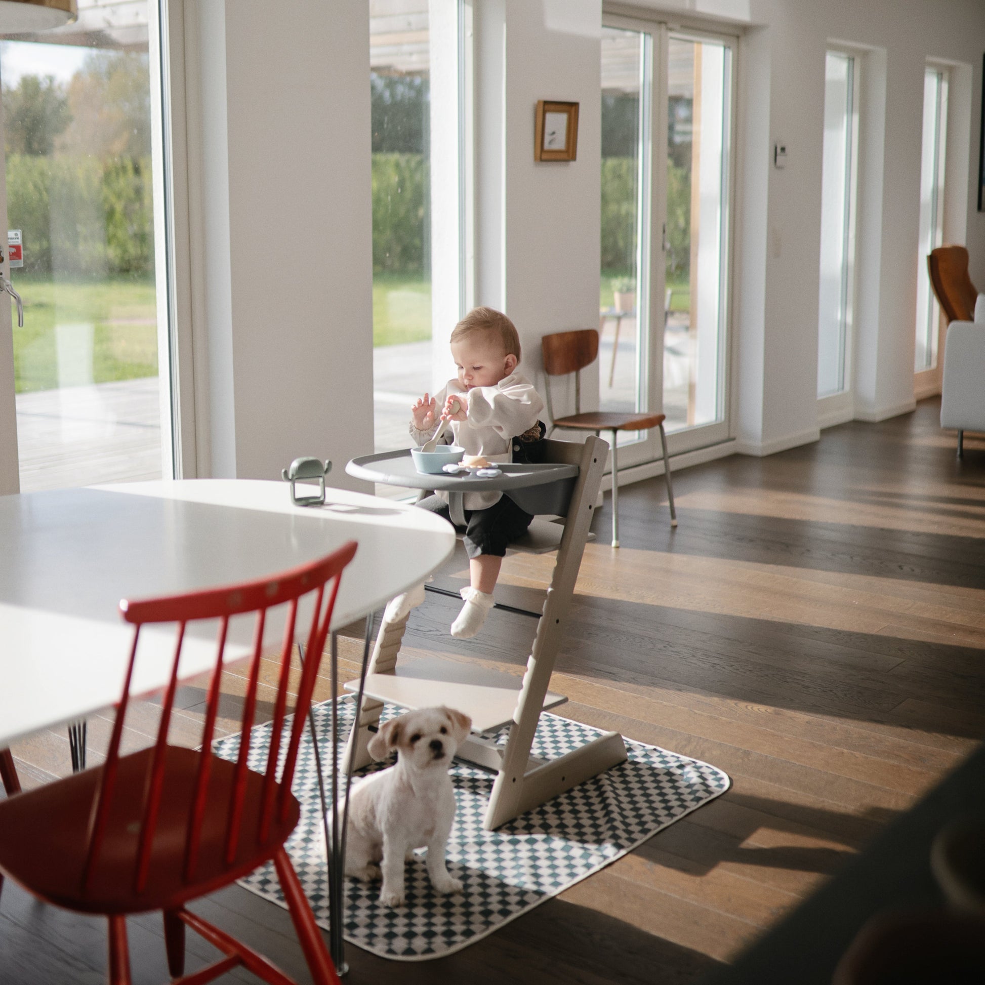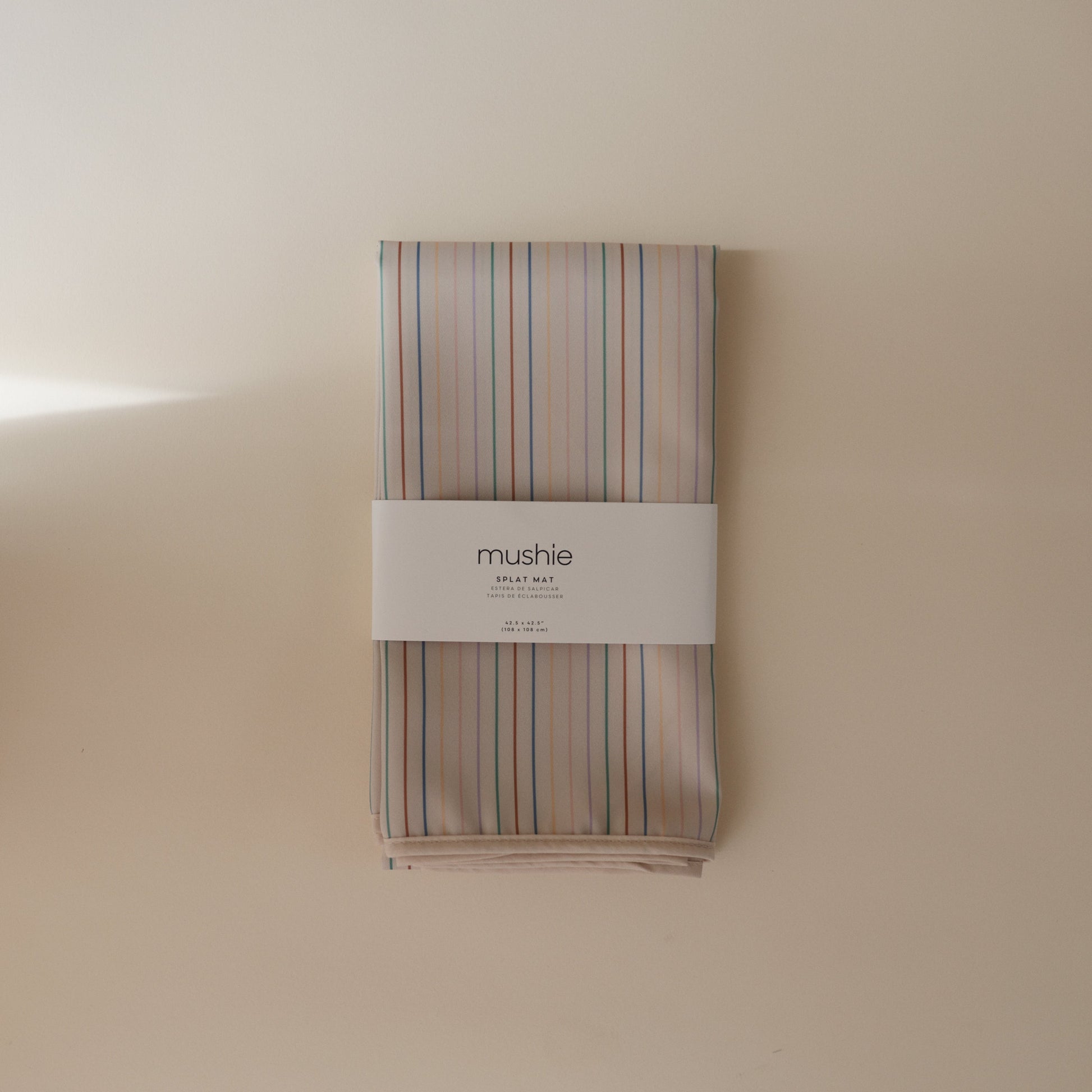 Our splat mat is designed to help keep messes at bay during mealtime or play. Made from our water resistant polyester fabric that can be quickly wiped clean on-the-go and is machine washable for bigger spills. These versatile mats fit under high chairs and help protect tables during arts and crafts. The lightweight and durable construction makes it easy to fold and toss in a diaper bag for impromptu tummy time.