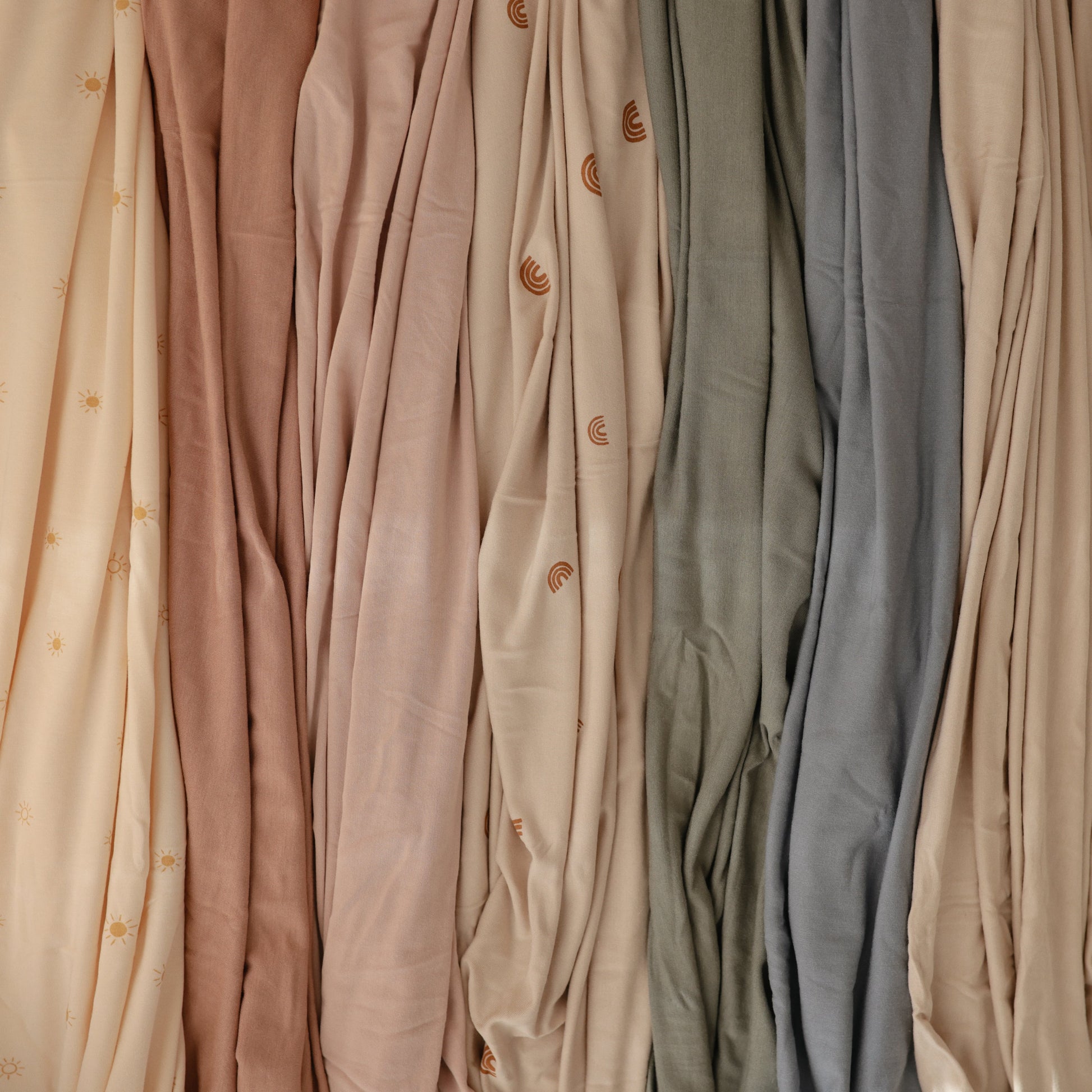 Help baby drift off to sleep with our stretchy swaddle that provides soothing comfort from day to night. The extra soft material ensures a snug fit while staying breathable and cool to the touch. Its versatile and stretchy design allows it to function as a cozy blanket or wrap tight and secure for safe sleep and sweet dreams. Discontinue swaddle use when babies show signs of trying to roll over.