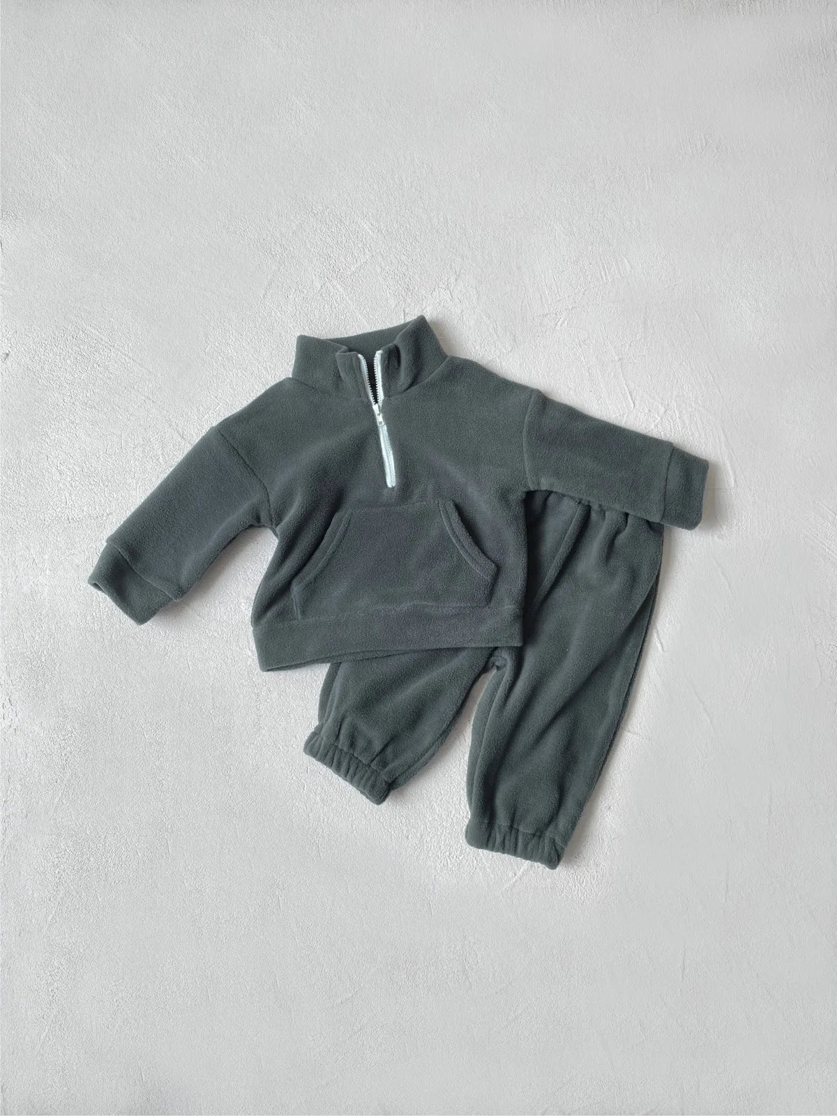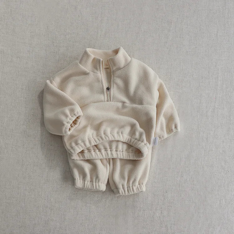 Toddler Kid Boy Girl 2Pcs Winter Clothes Set Fleece Warm Pullover Top Pant Thick Two Piece Jogger Set Loose Outfit