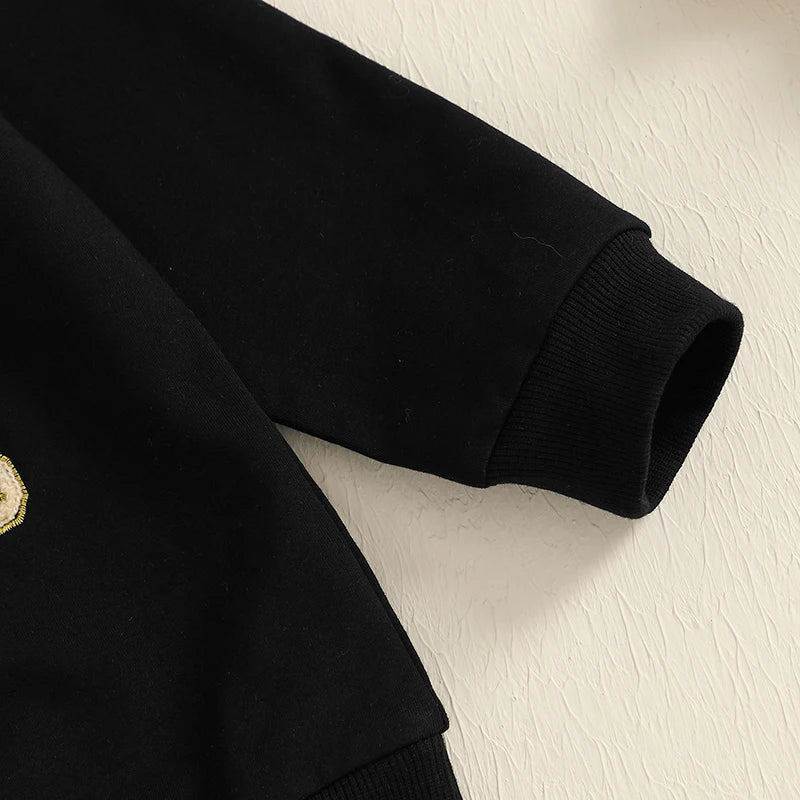 Toddler Kids Girl 2Pcs New Years Cheers Skirt Outfit Letter Embroidery Long Sleeve Top Glitter Star Print Tulle Skirt Clothing Set