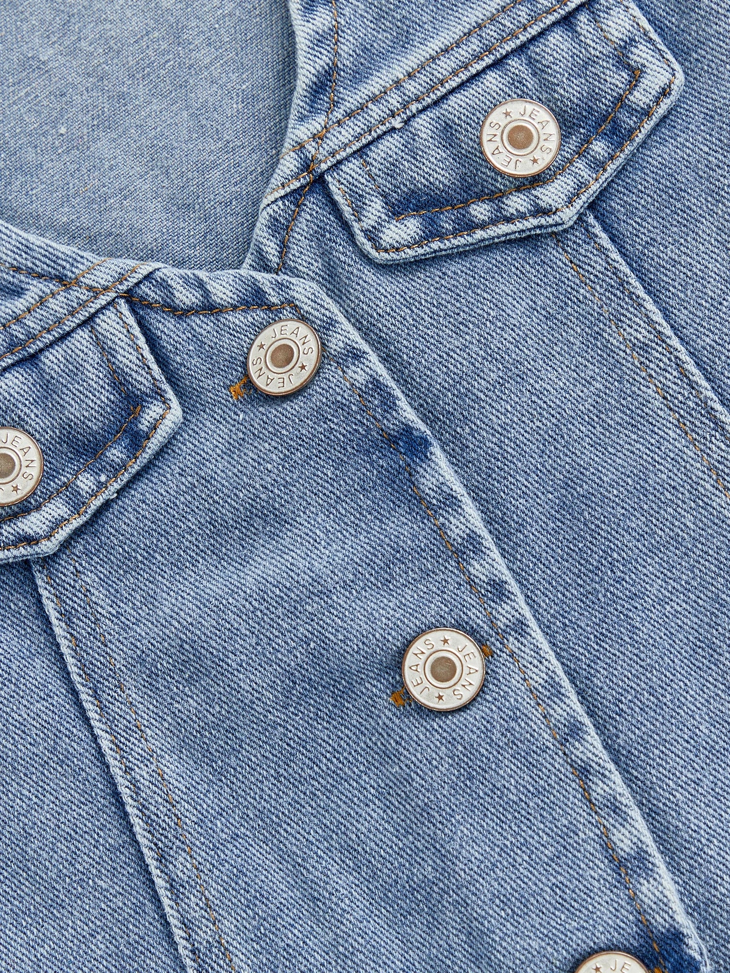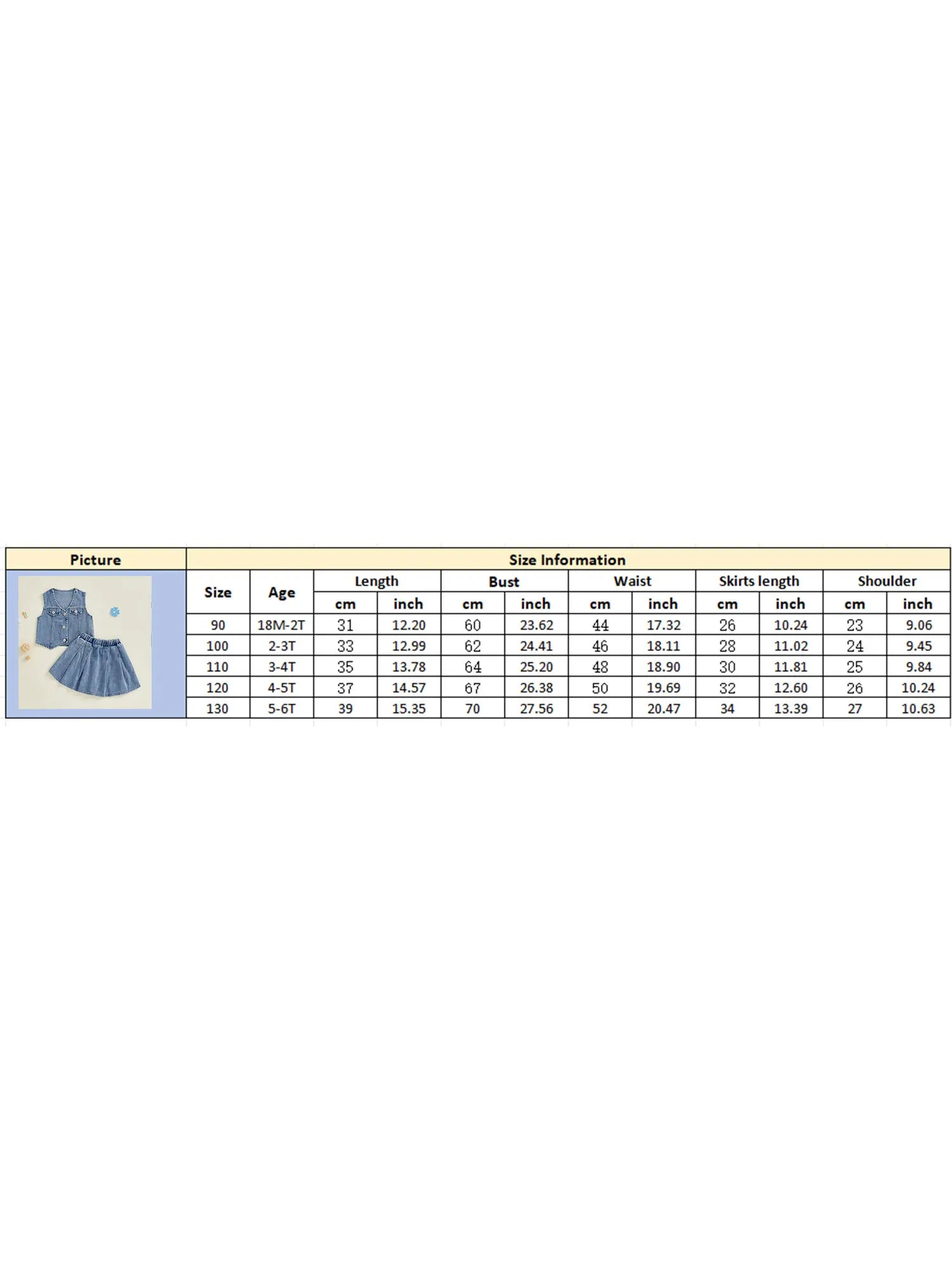 Toddler Kids Girls 2Pcs Denim Set Solid Color V-Neck Button Down Vest and Pleated Skirt 2 Piece Outfit