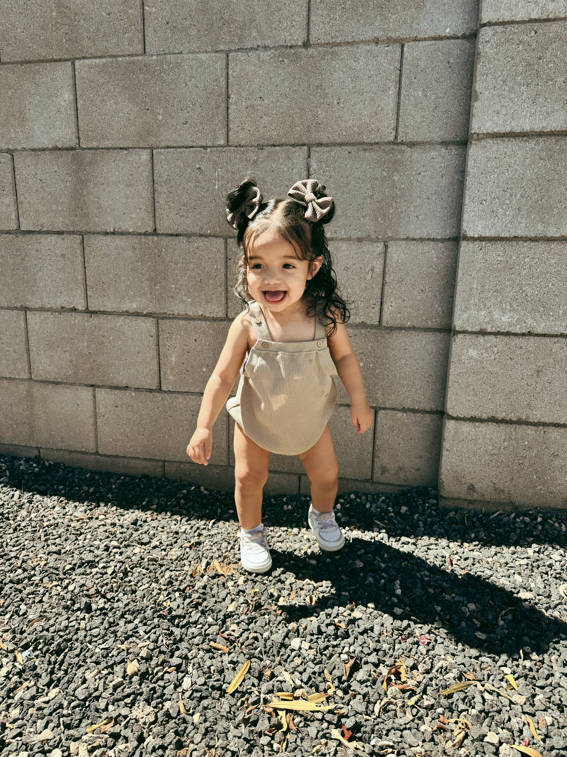 Give your baby the gift of comfort and style this summer with our Baby Waffle Overall Romper – a must-have for every little one's wardrobe!